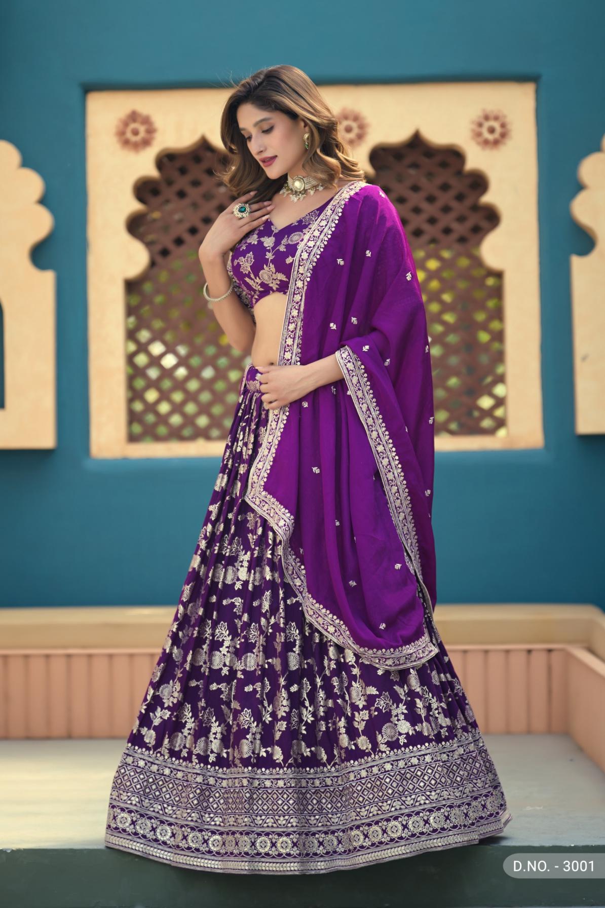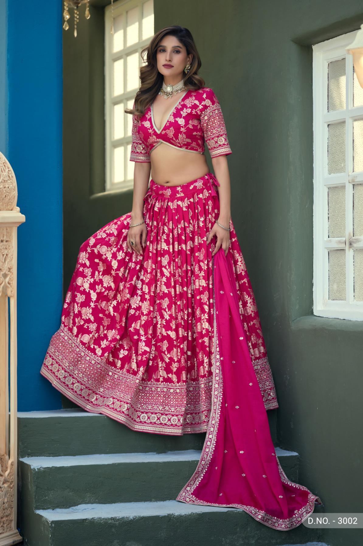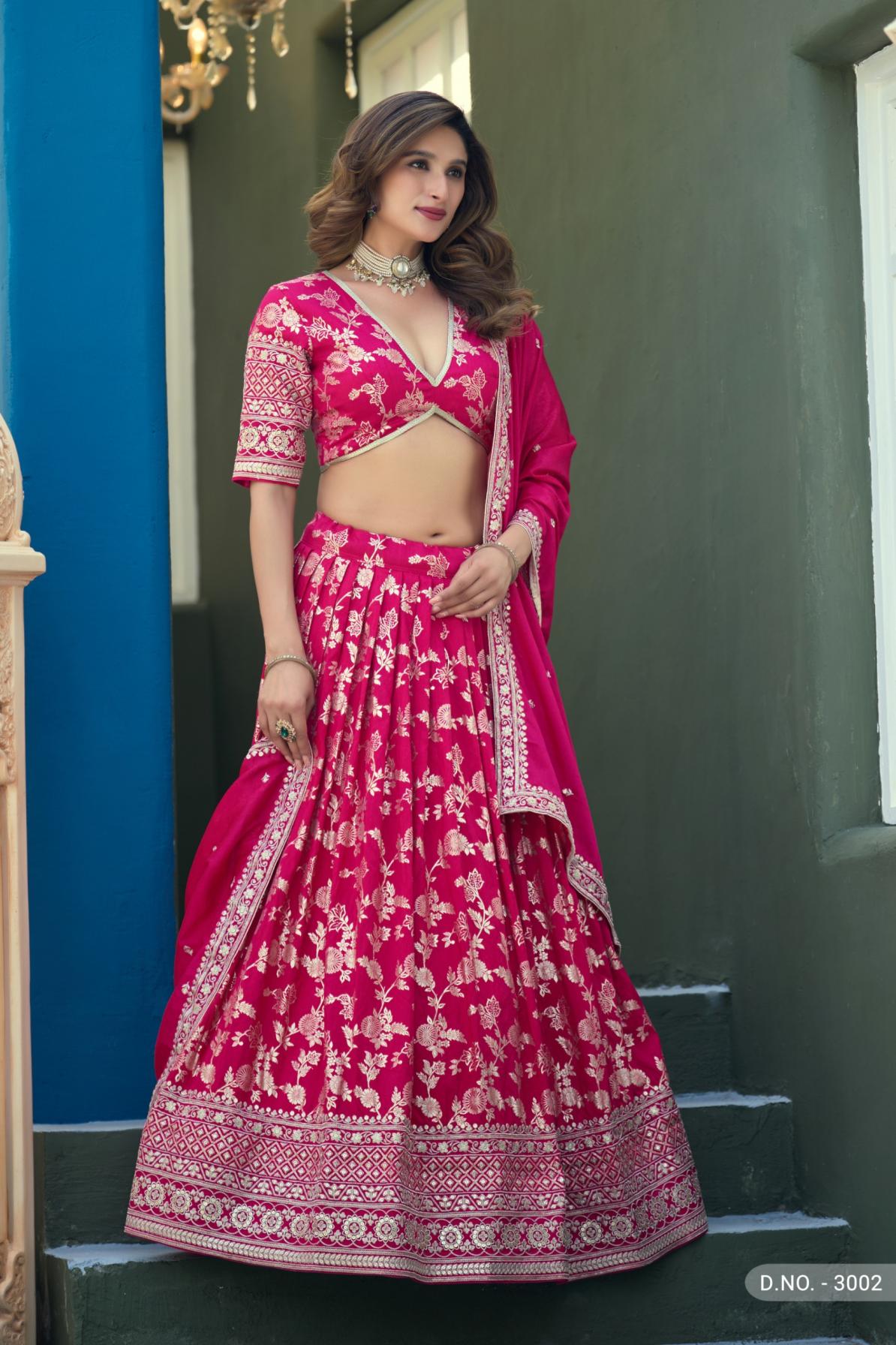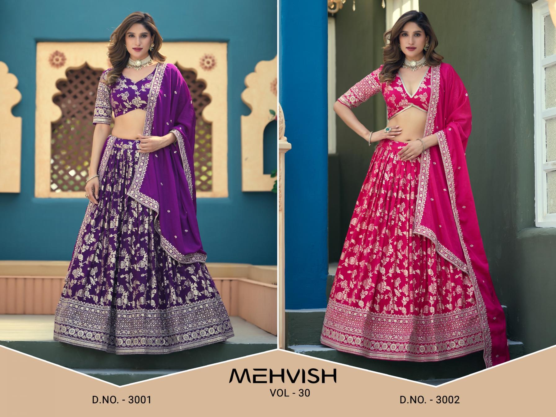 This Exclusive Lehenga Collection Inculcate A Work Of Lady Likeness United And Exquisiteness In You Brand : Mehvish Catalog: Mehvish Vol-30 Series : - 3001 To 3002 Rate : Attached- +5 % Gst Lehenga Fabric : Dolla Silk Jaccaurd Or Border Work Lehenga Unstiched Size Up to 42 inches Blouse: Dolla Silk Jaccaurd Or Border Work(Unstitched) Dupatta : Chinon with Work Occasion : PartyWear, Festival Wear |
