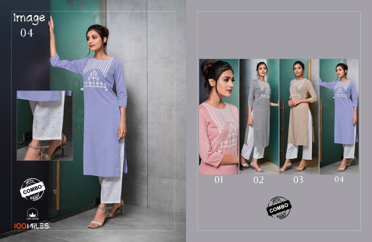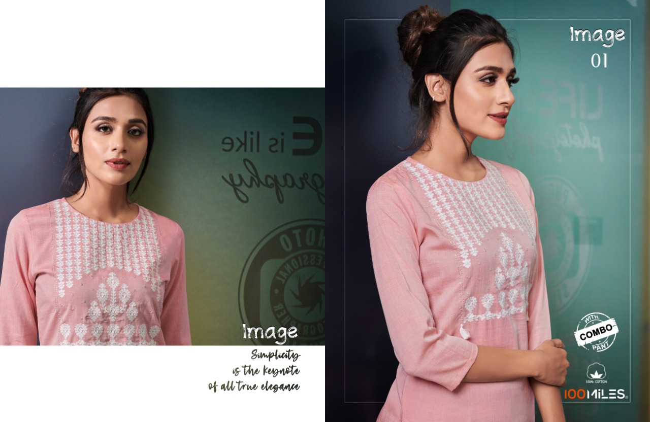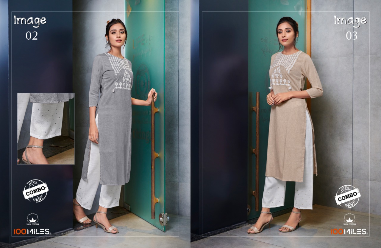100 Miles Image Linen Cotton Embroidery Kurti And Pant Collection
