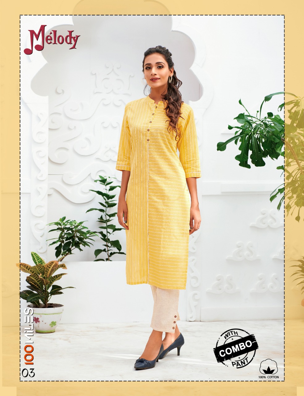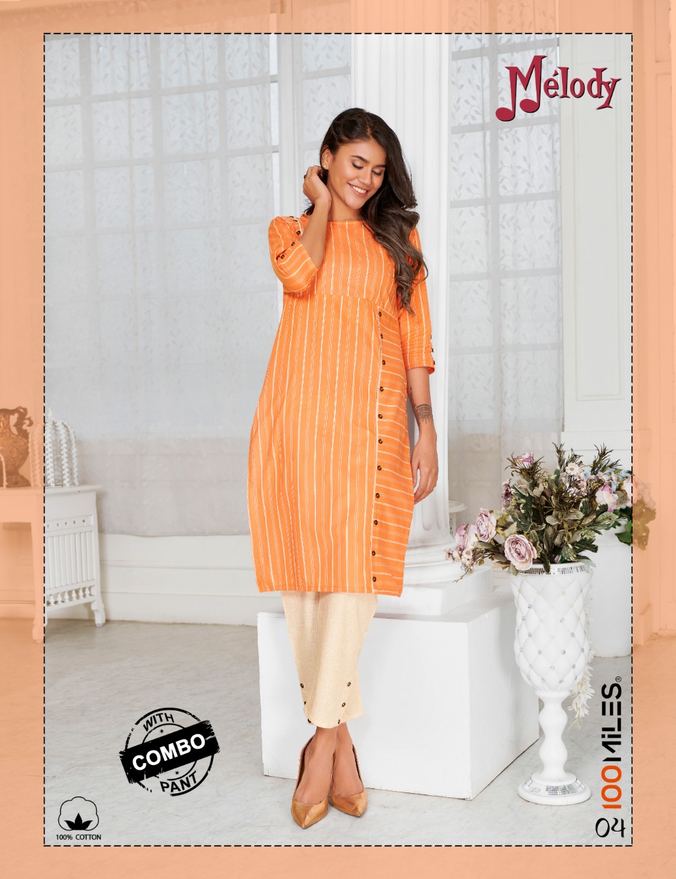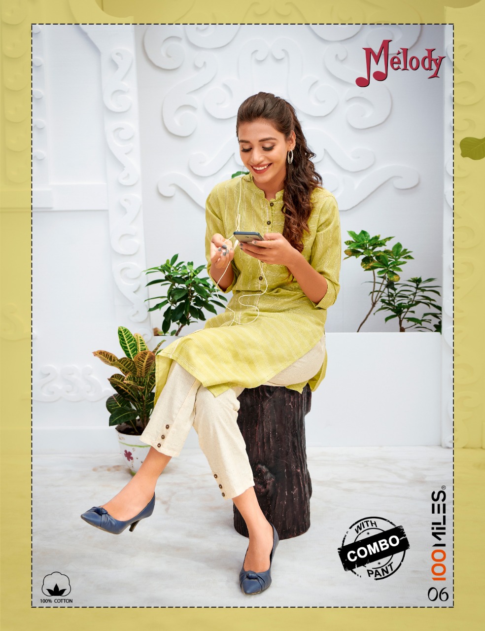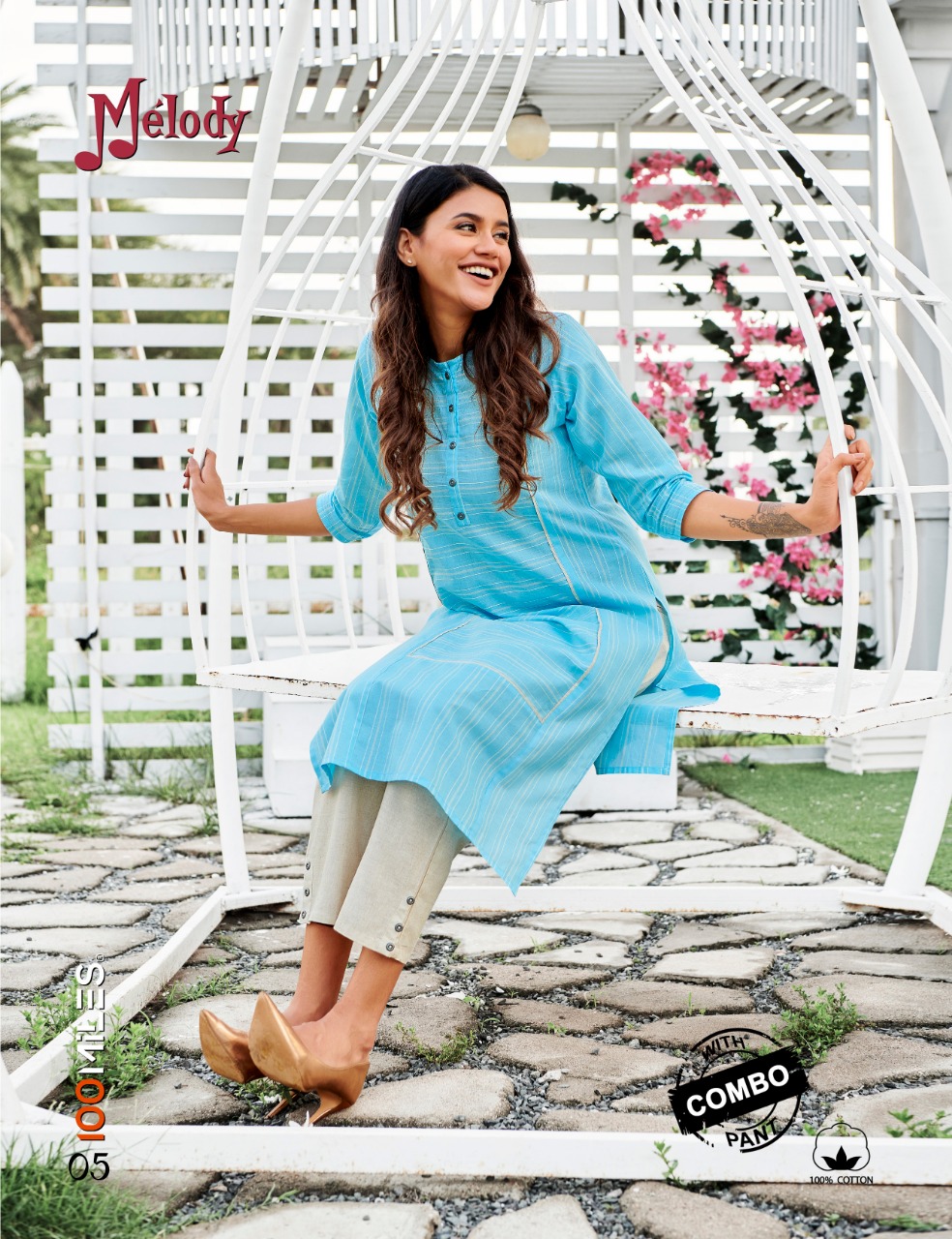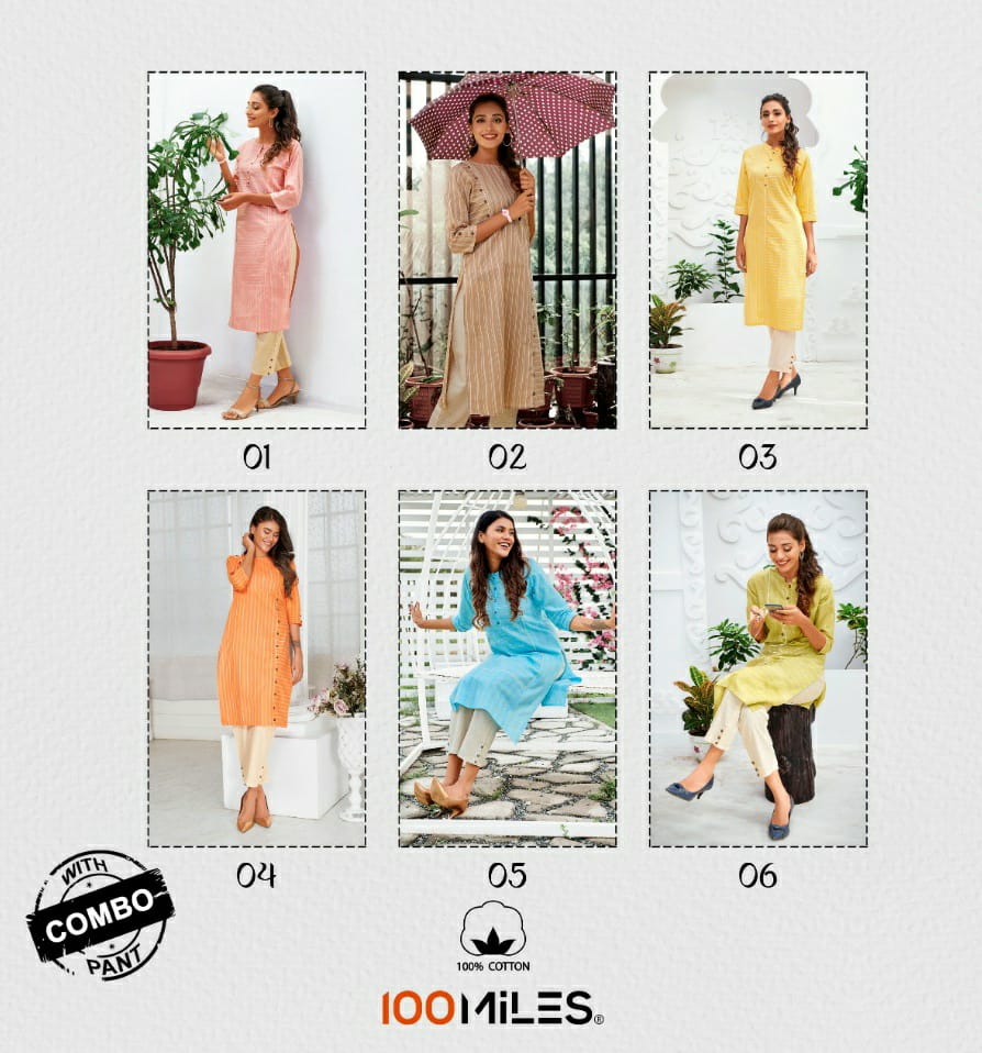 100 Miles Melody Pure Cotton Patterned Kurtis With Combo Pants Exporter In Surat