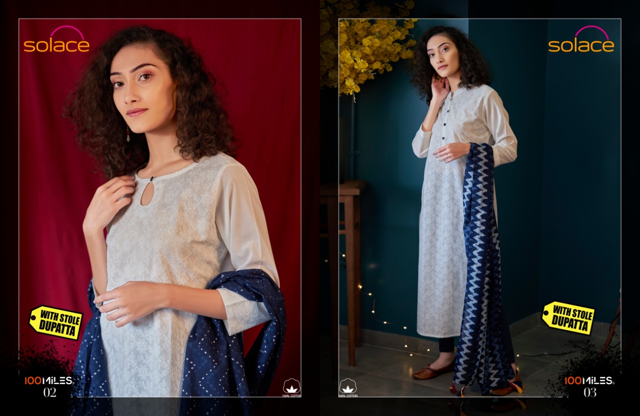 100 Miles Present Solace Cotton Kurti With Stole Dupatta Concept
