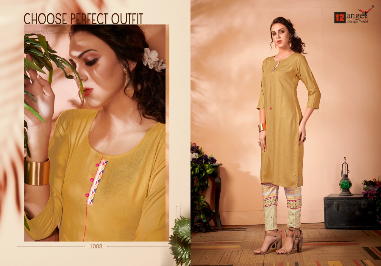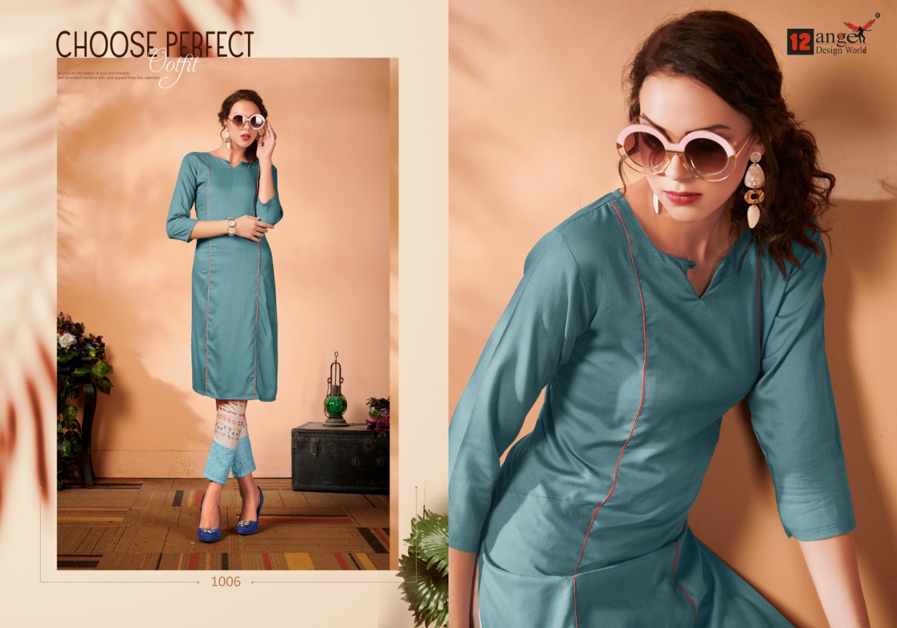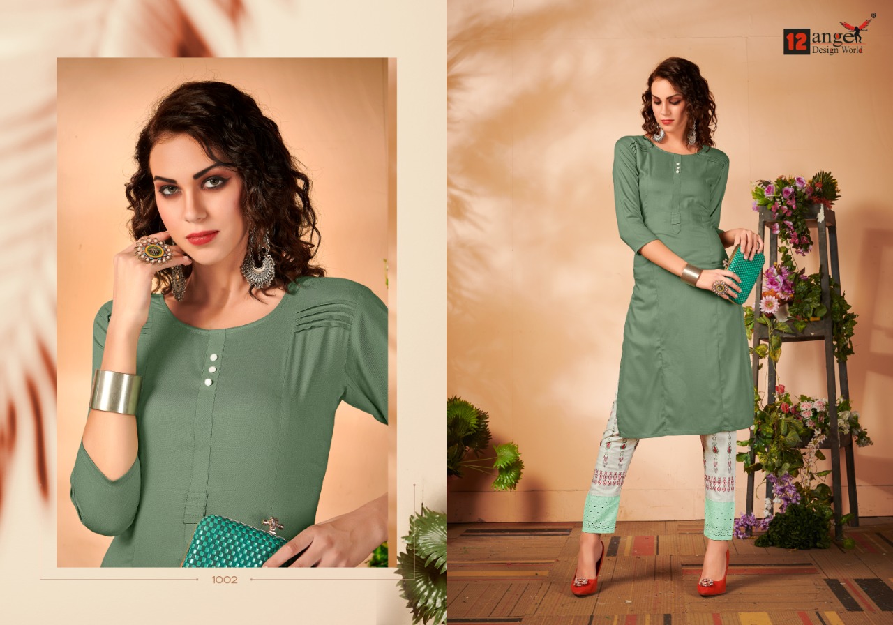 12 Angel Casimiro Rayon Kurti With Pencil Pant Exclusive Pair Collection