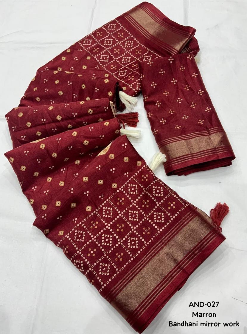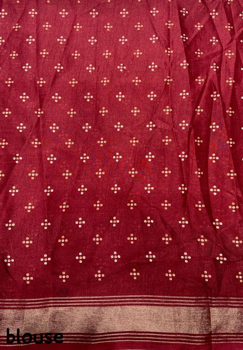 New Arrival New cotton Crape Bandhani style printed saree AND- 027 AND- cotton Crape ( Bandhani edition) Quality - soft cotton Crape Bandhani print with mirror work & Tassels woven zari border. Blouse - Running separate Print Blouse. Rate- 600+ ship Top Trusted quality |