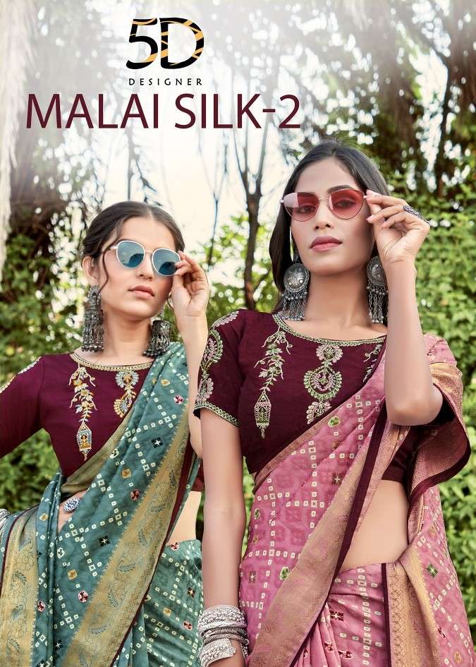 5d designer malai silk vol 2 fancy sarees with embroidery work blouse