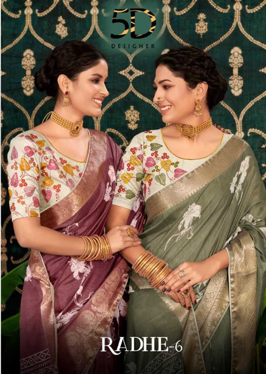 5d designer radhe vol 6 soft dola silk saree with fancy work blouse