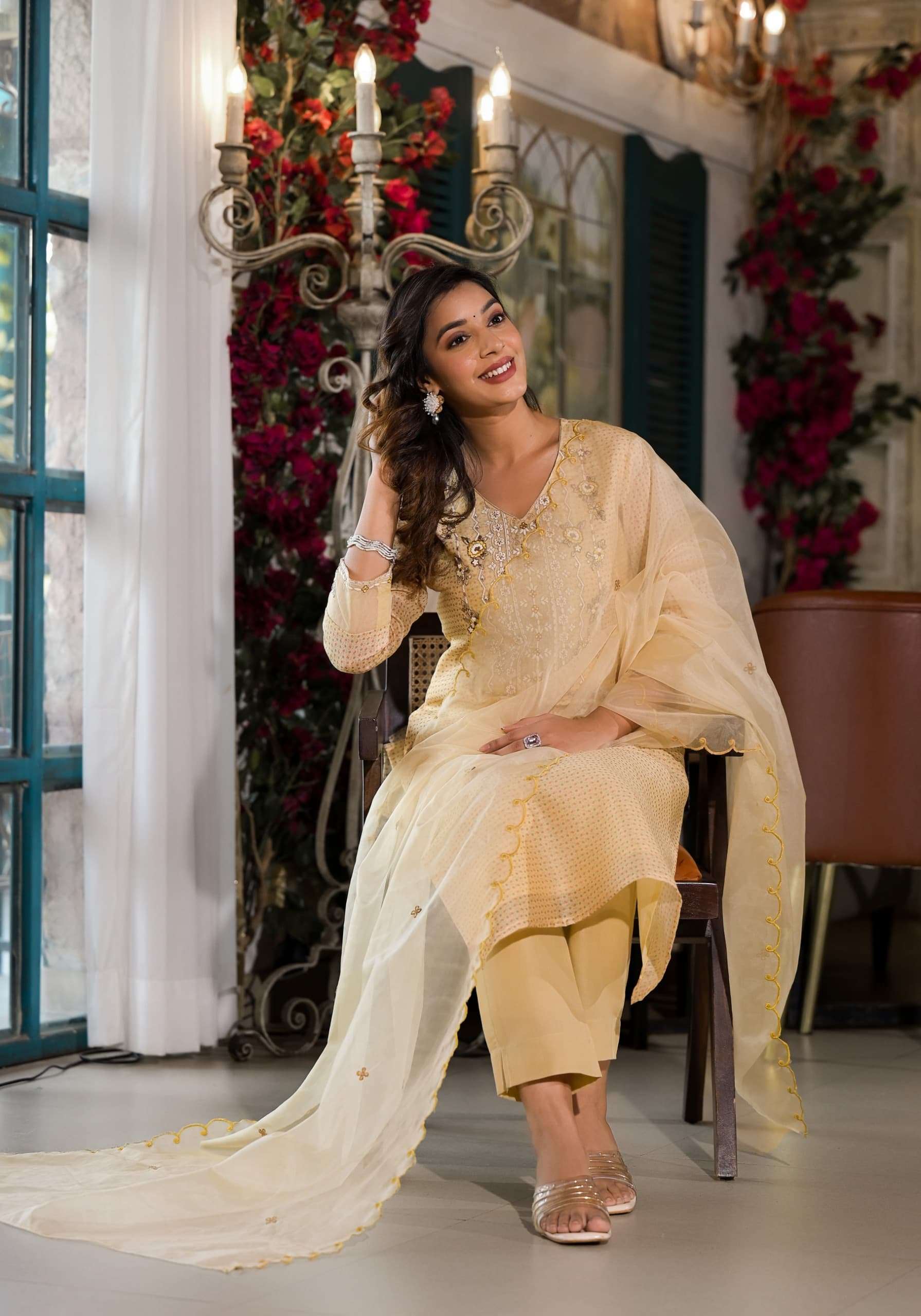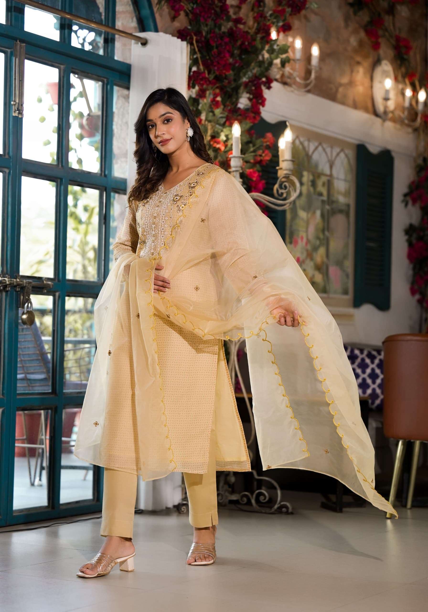 9607 by label khoj designer readymade chanderi silk stylish combo salwar suit