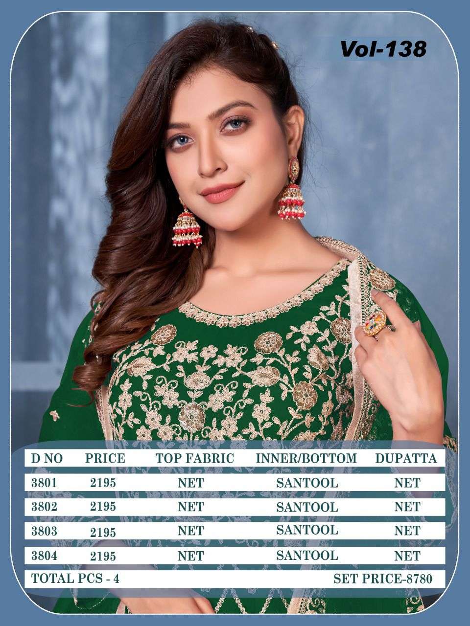 aanaya vol 138 by dani creation exclusive work on net anarkali long suits