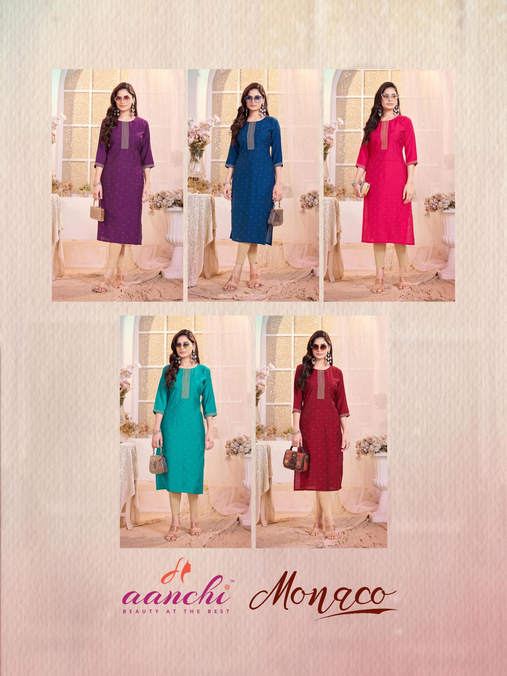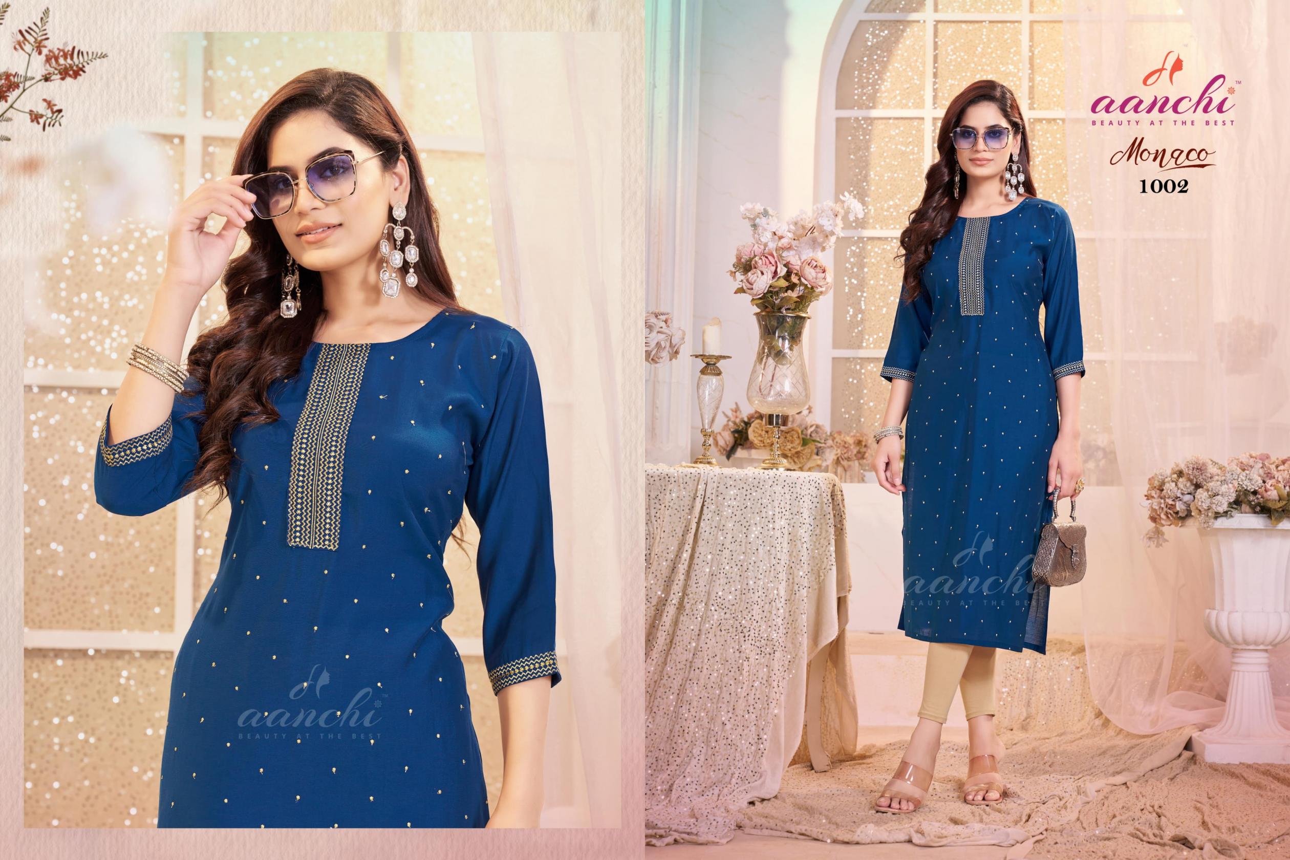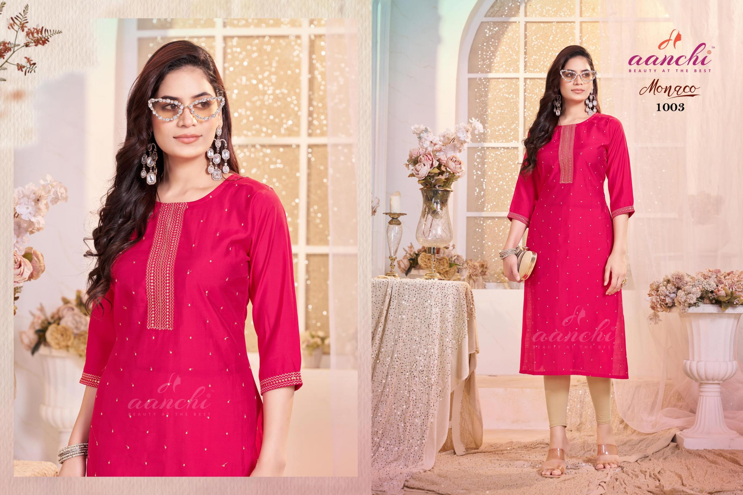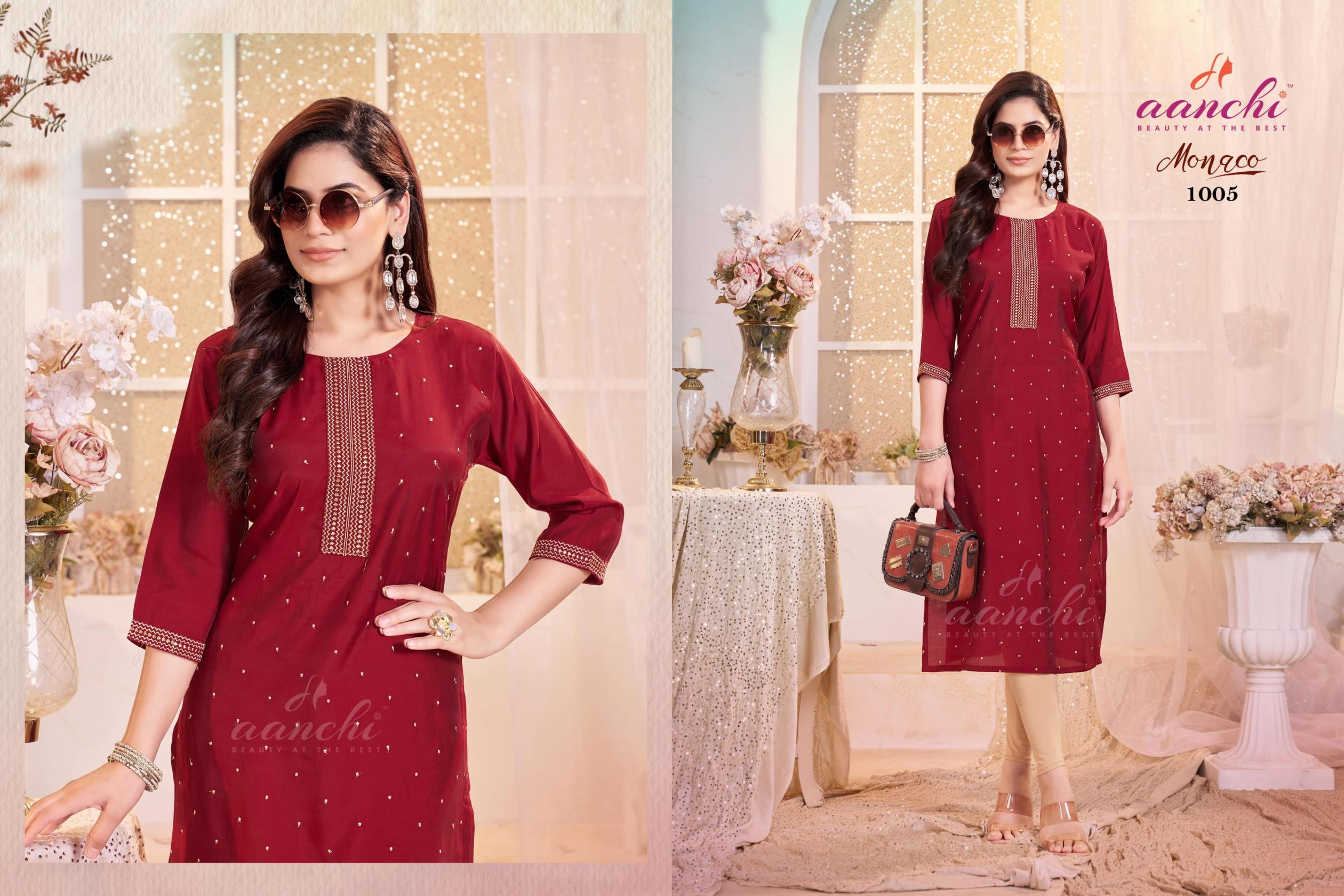 aanchi monaco roman silk readymade pretty look long kurti online