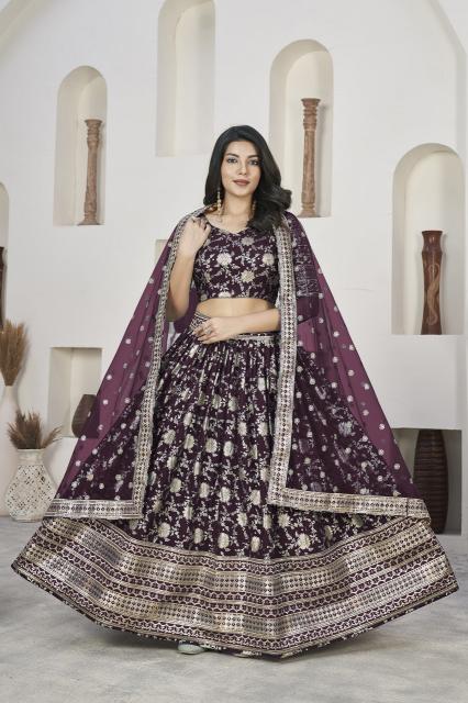 aawiya 1019 wine half saree dola jacquard semi stitch lehenga unstitch choli online