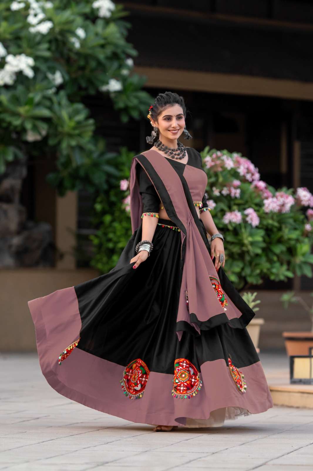 aawiya 7066 cotton mirror work full stitch tradition wear navratri lehenga choli