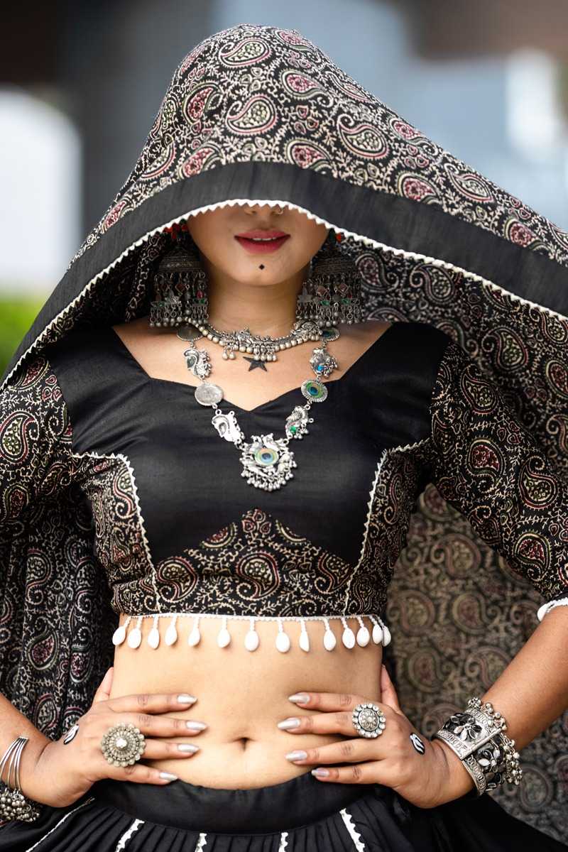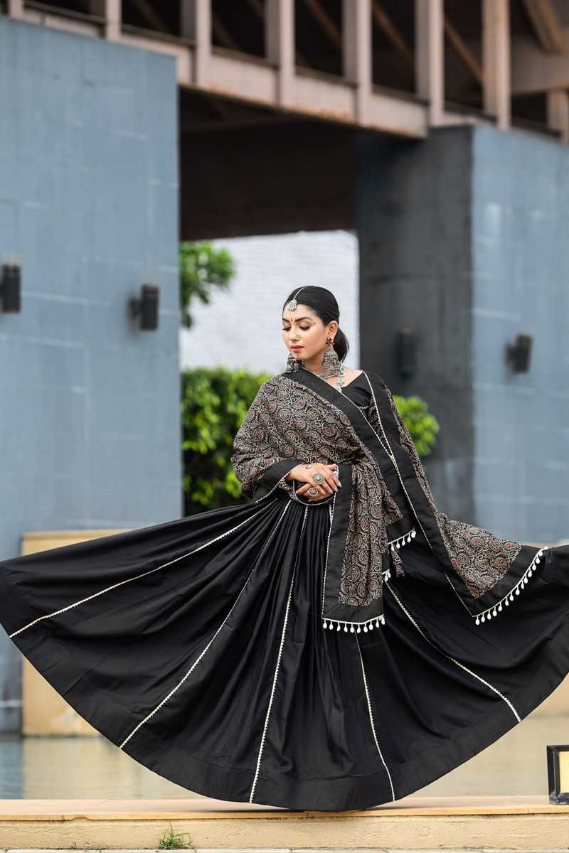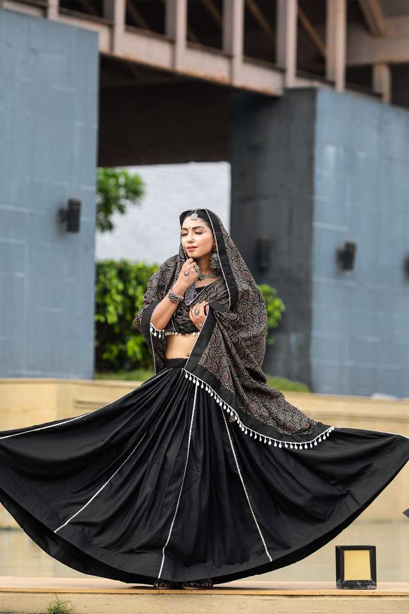 🥢🥢 (Full - Stitched) Navratri Traditional Collection 2k24🥢🥢 Step Into The Festive Season With A Black Color Cotton Chaniya Choli: Plain With Beautiful Cowrie (Kodi) Work In Printed Dupatta – Embrace The Joy And Elegance Of Navratri ! 🦚 Awy-7071 (Black). Lehenga(Stitched) Blouse(Stitched) Dupatta Package Contain : Lehenga, Blouse, Dupatta, Drawstring With Tassels Weight : 2.000 Kg Rate : 1699/- (12% Gst Extra)