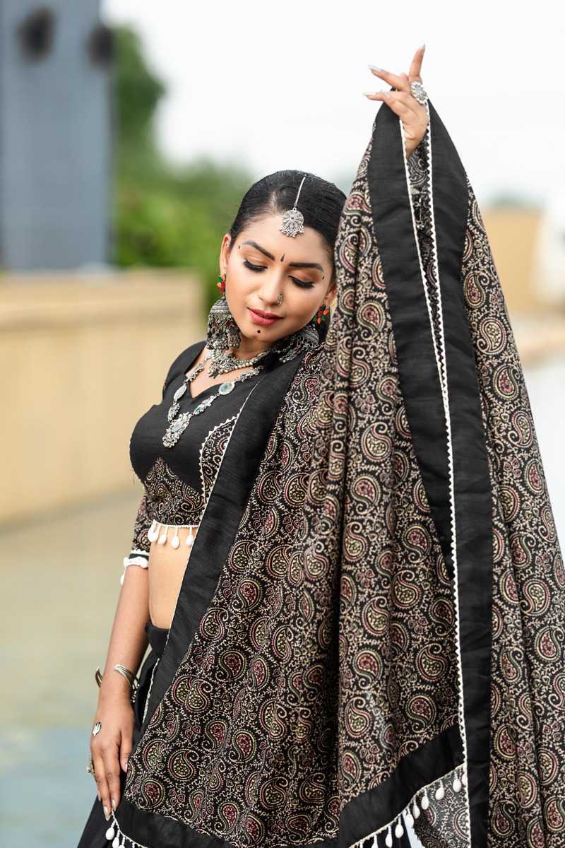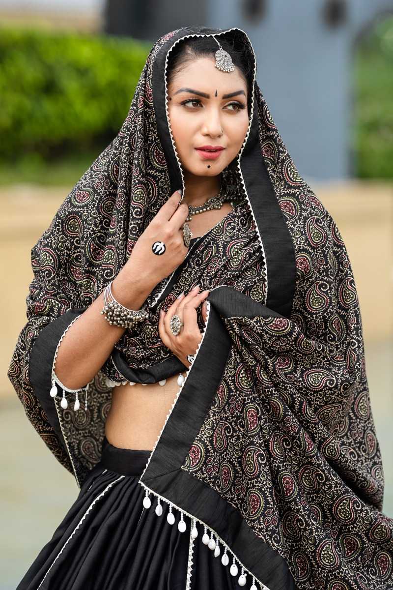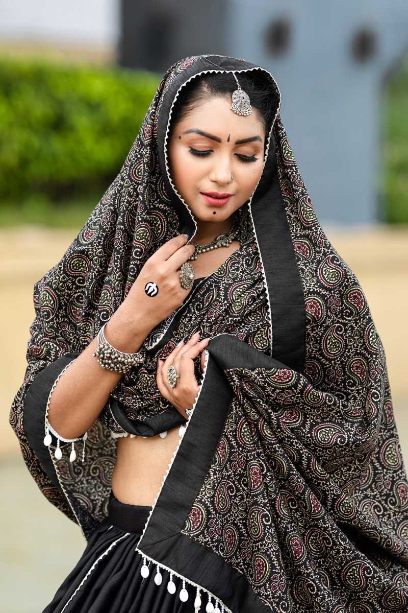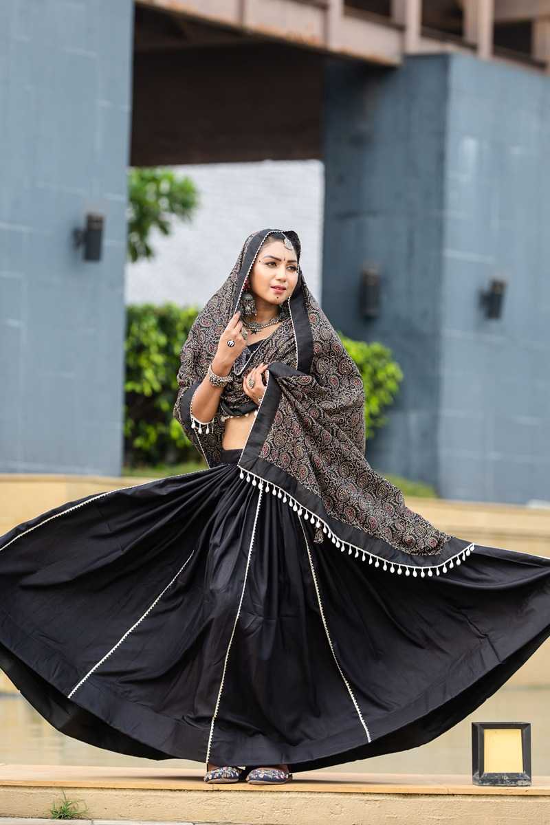 🥢🥢 (Full - Stitched) Navratri Traditional Collection 2k24🥢🥢 Step Into The Festive Season With A Black Color Cotton Chaniya Choli: Plain With Beautiful Cowrie (Kodi) Work In Printed Dupatta – Embrace The Joy And Elegance Of Navratri ! 🦚 Awy-7071 (Black). Lehenga(Stitched) Blouse(Stitched) Dupatta Package Contain : Lehenga, Blouse, Dupatta, Drawstring With Tassels Weight : 2.000 Kg Rate : 1699/- (12% Gst Extra)