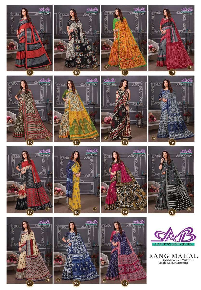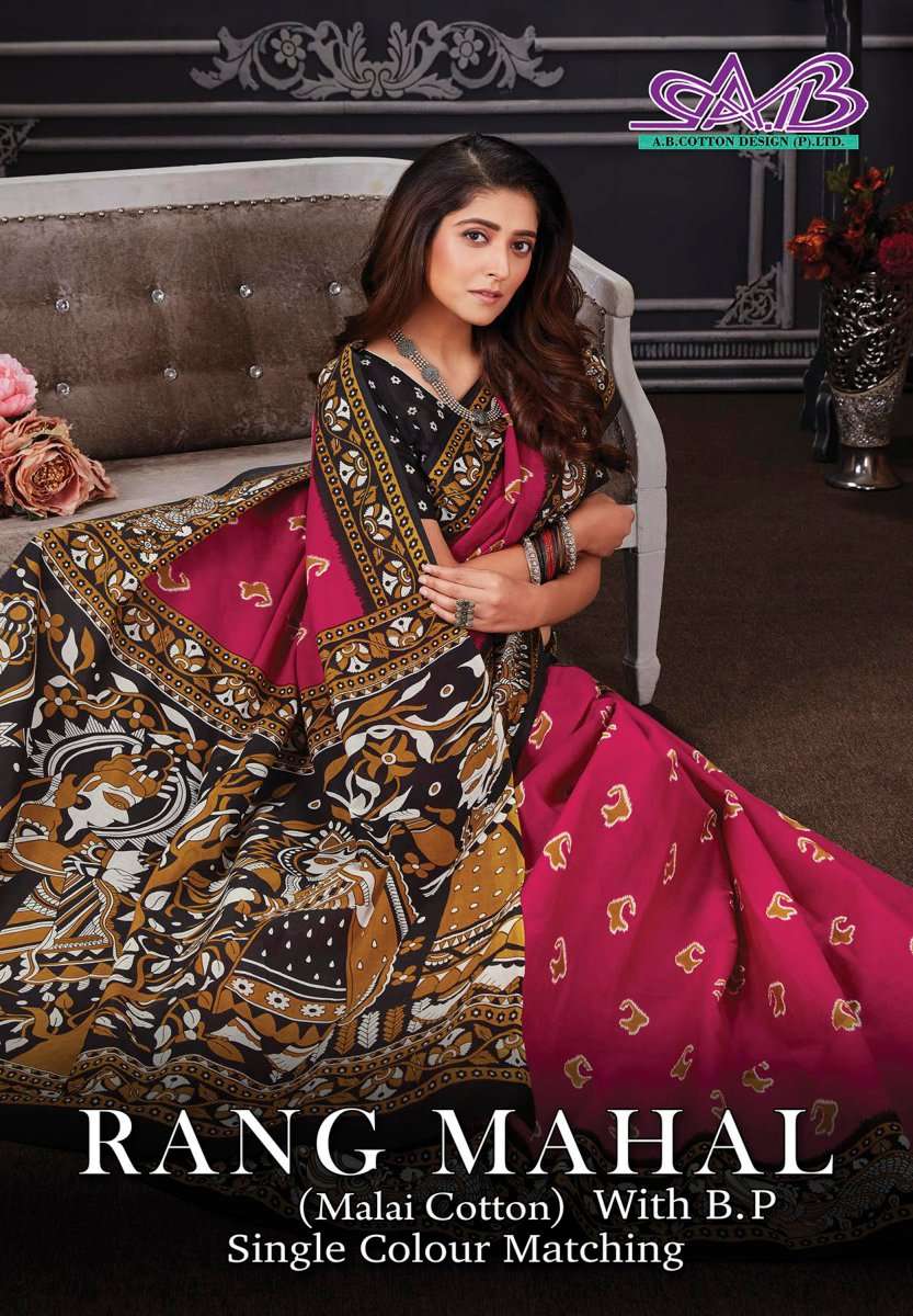 ab cotton design present rang mahal fancy malai cotton sarees wholesaler
