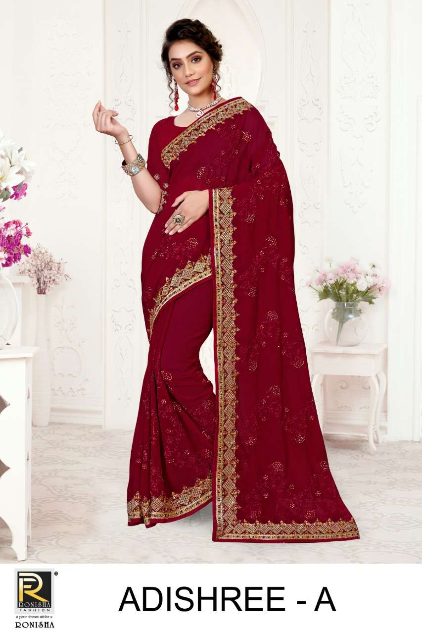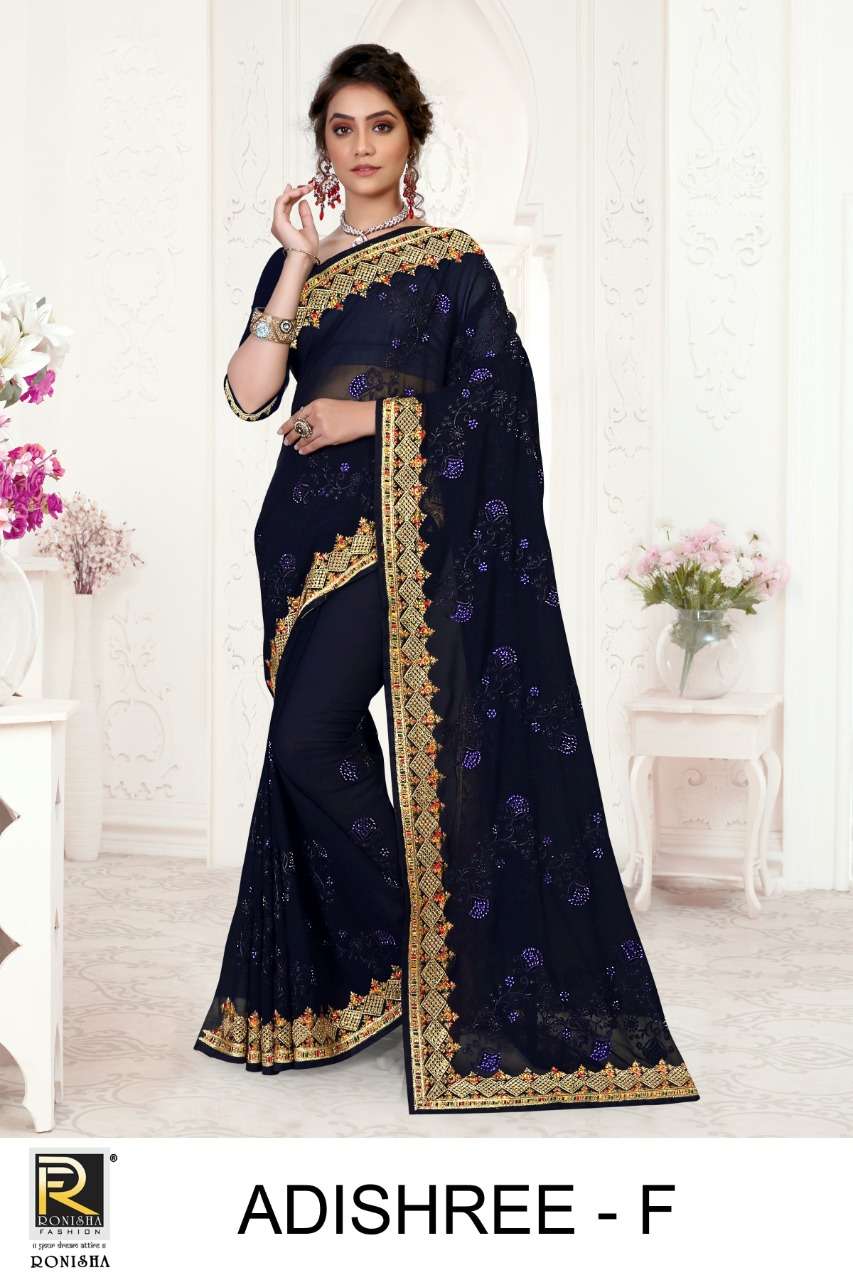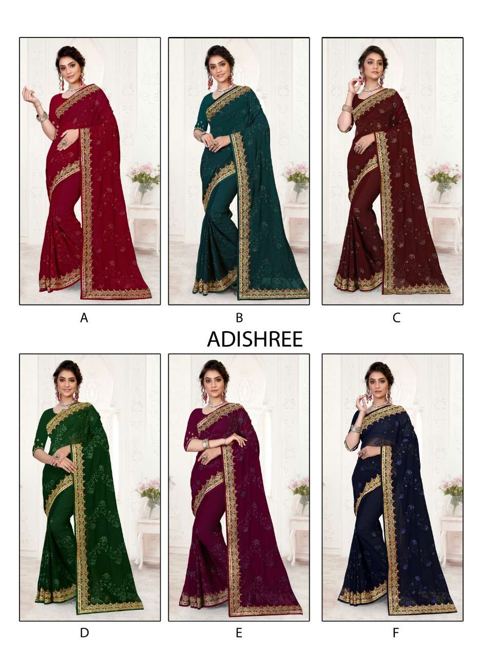 ADISHREE BY RANJNA SAREES GEROGETTE EMBROIDERY WORK HEAVY DIAMOND WITH MOTI WORK SAREES COLLECTION
