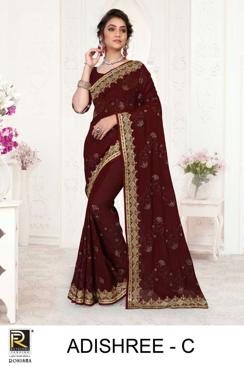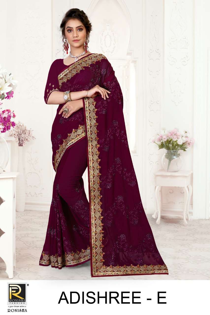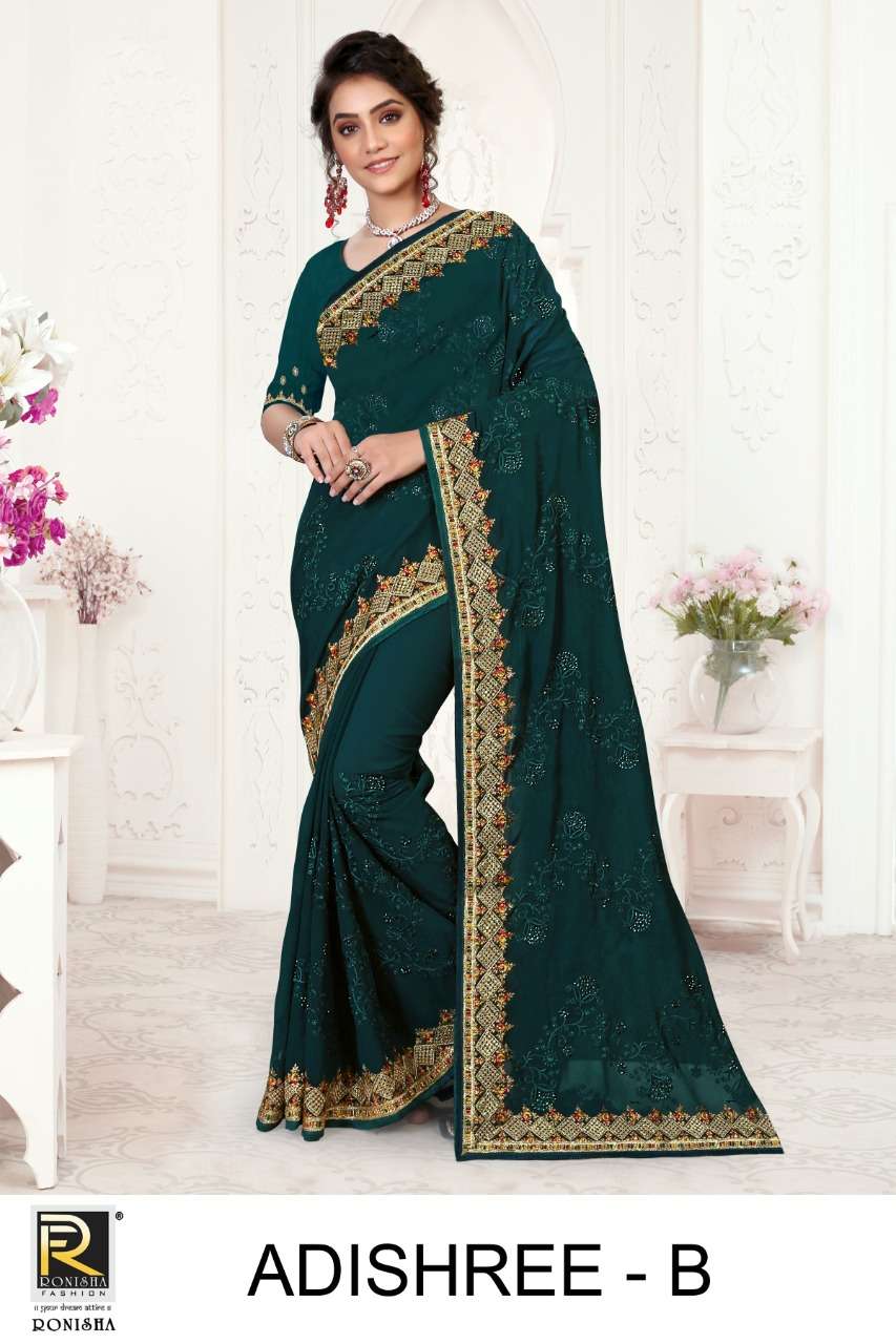 ADISHREE BY RANJNA SAREES GEROGETTE EMBROIDERY WORK HEAVY DIAMOND WITH MOTI WORK SAREES COLLECTION