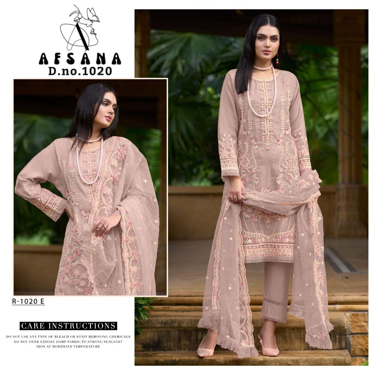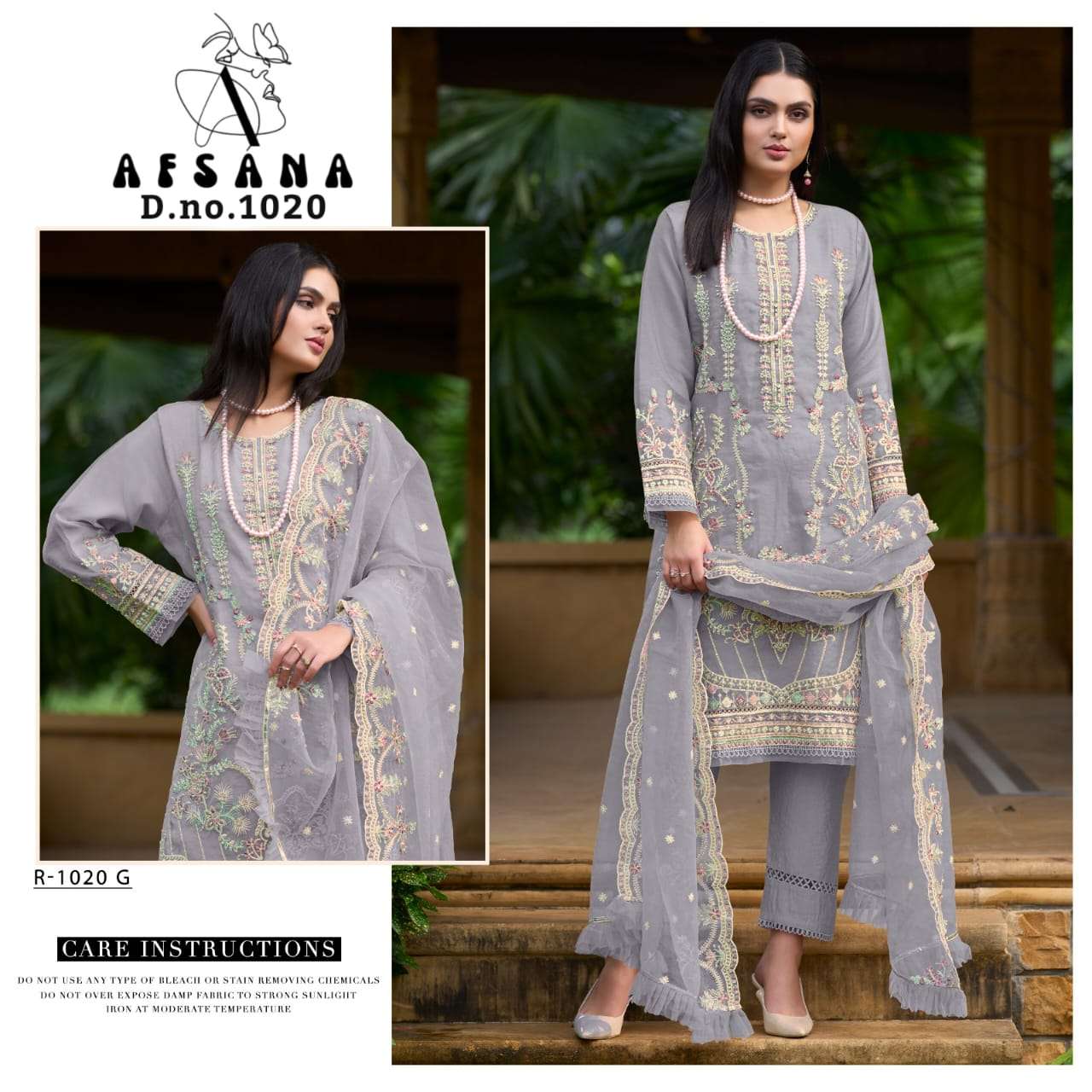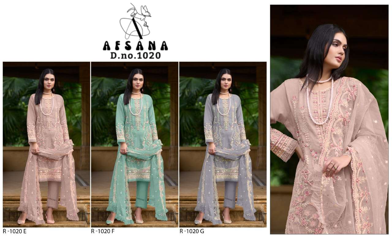 Afsana R 1020 Organza top organza embrodairy duptta net embrodairy bottom viscous p v silk RATE 1699/- |