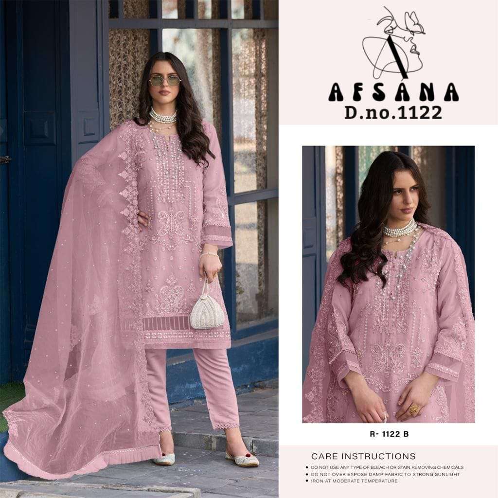 Afsana R 1122 Organja top organza embrodairy duptta net embrodairy bottom viscous p v silk |
