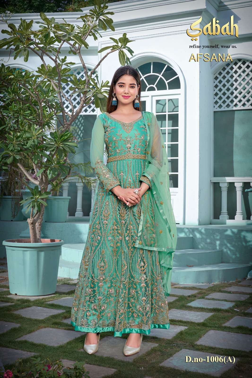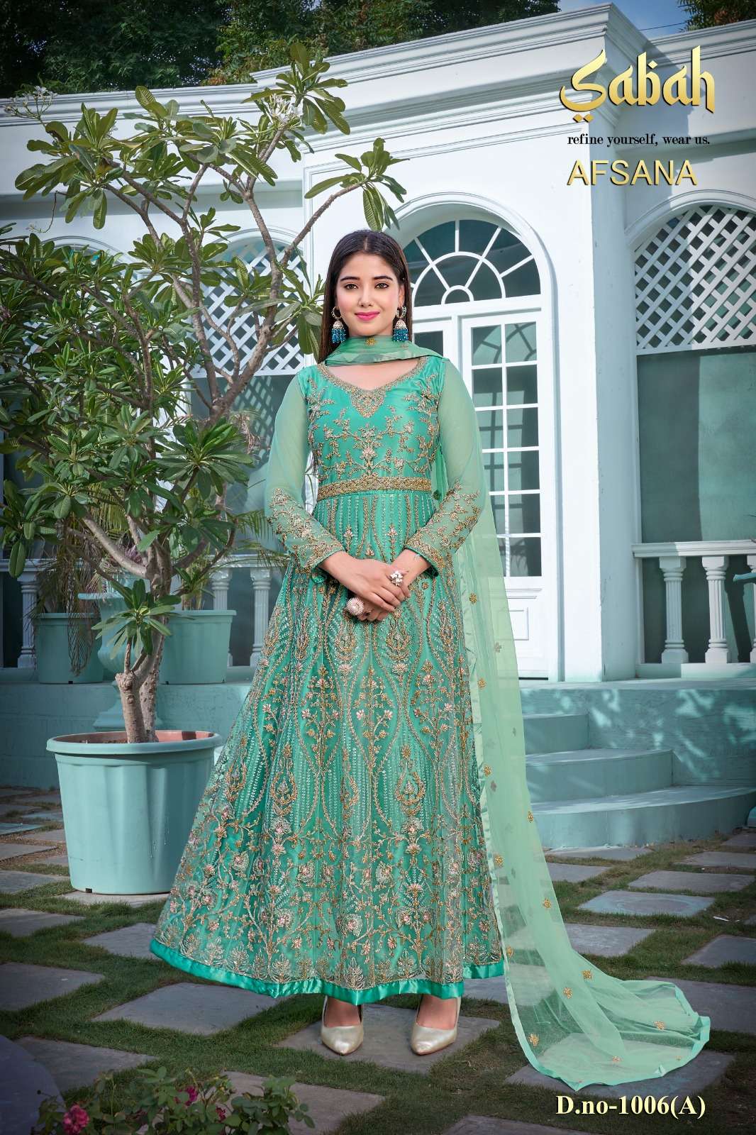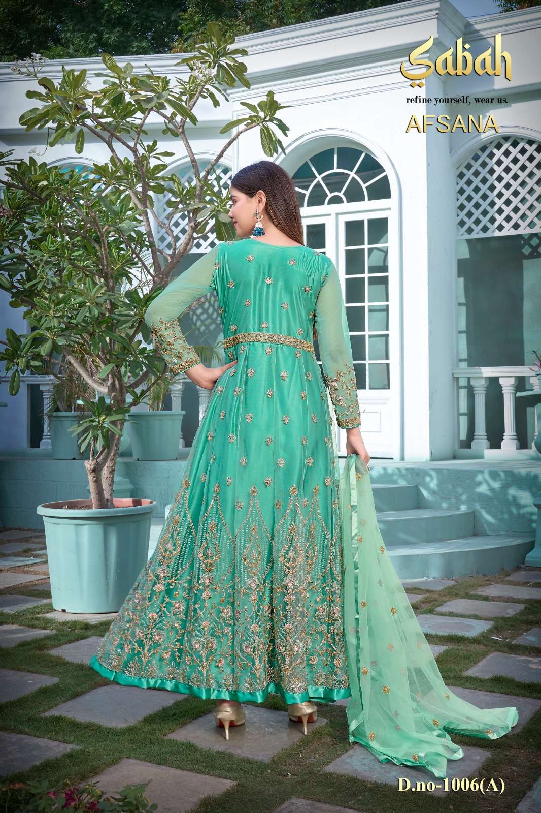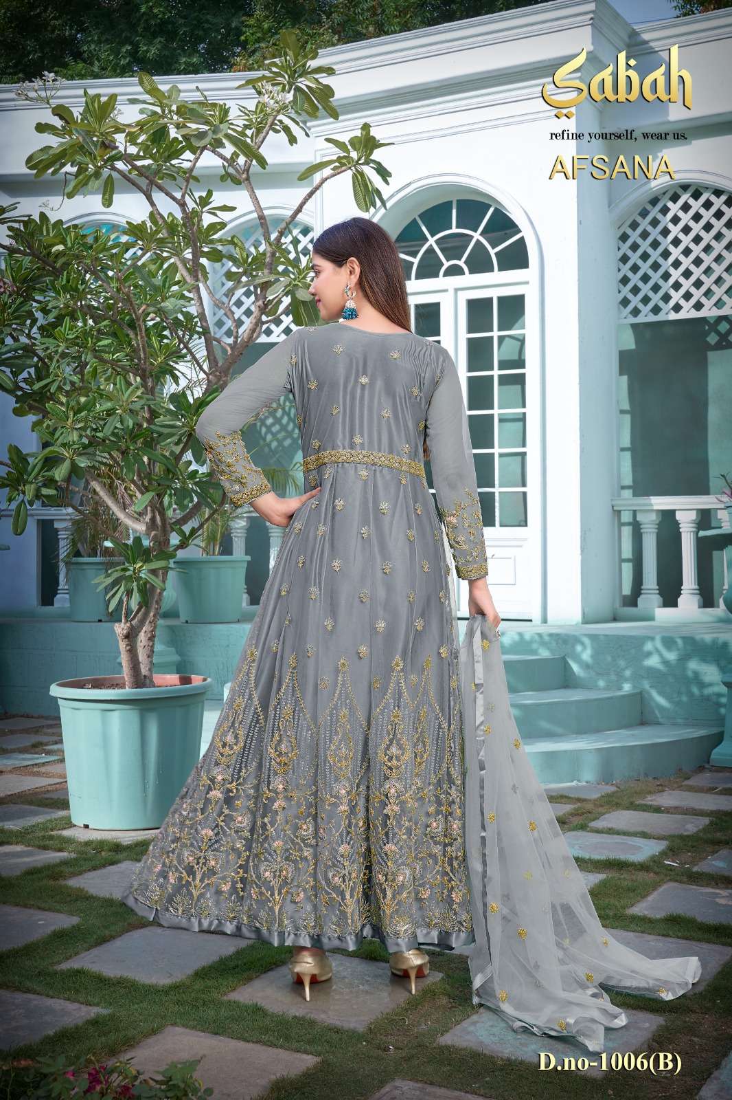 afsana vol 2 1006 by sabah butterfly net heavy designer work semistitch long salwar kameez