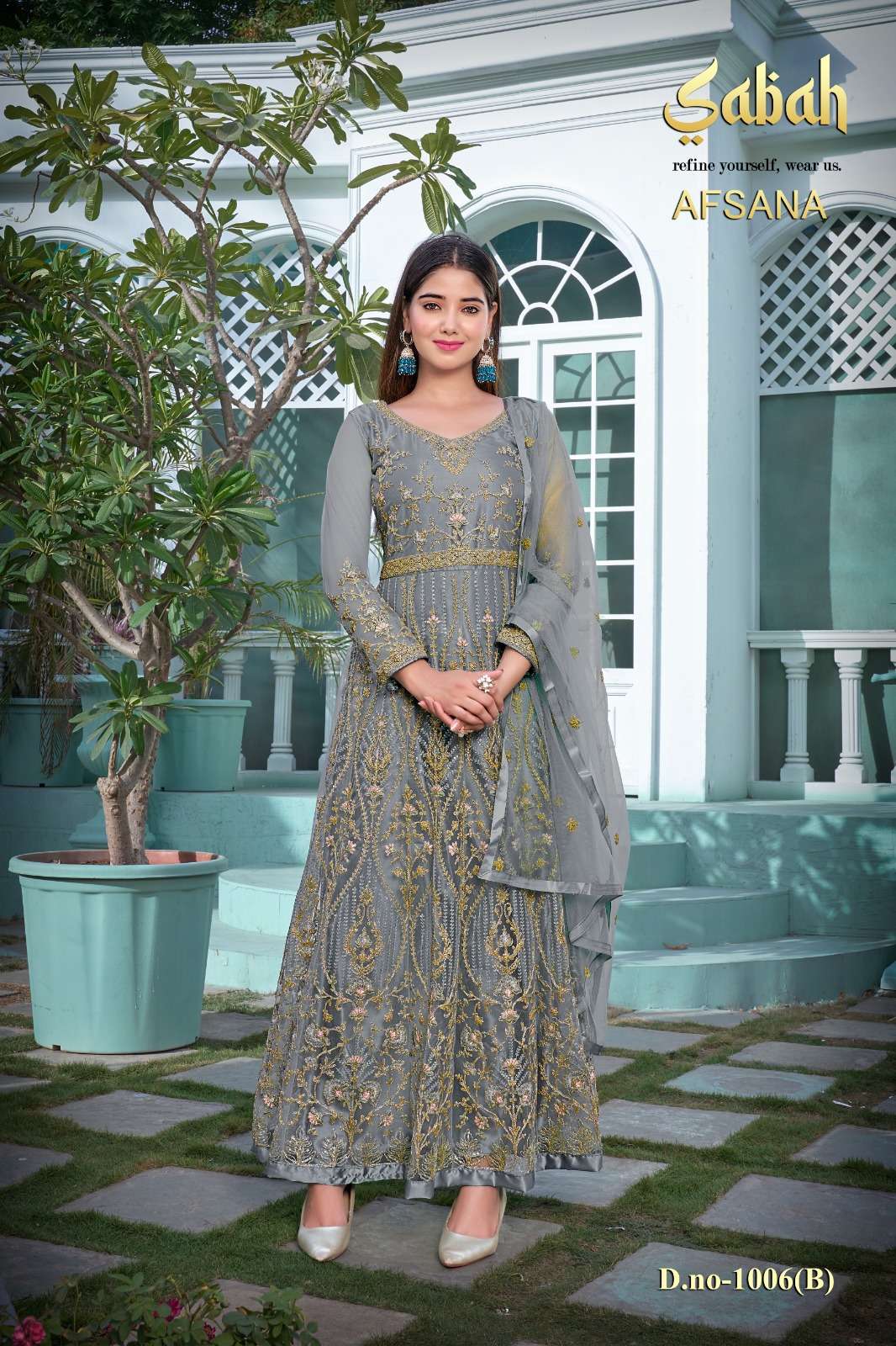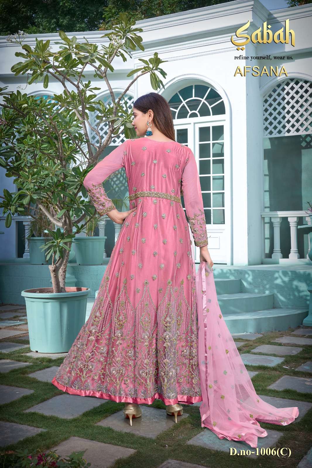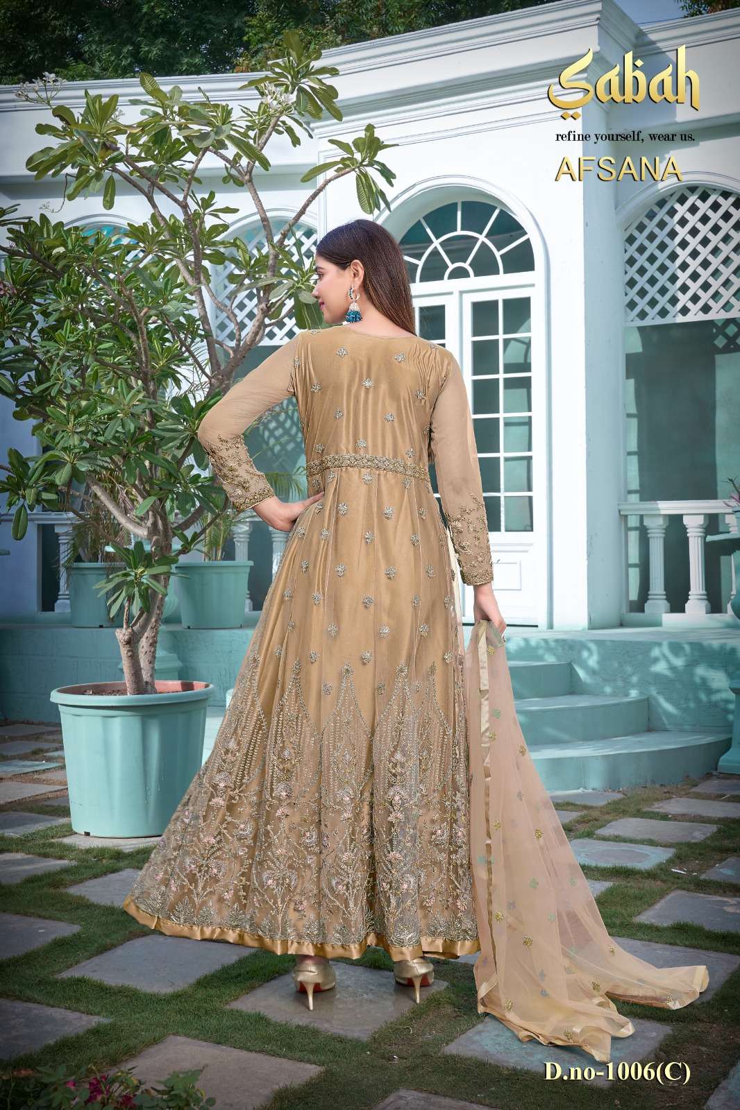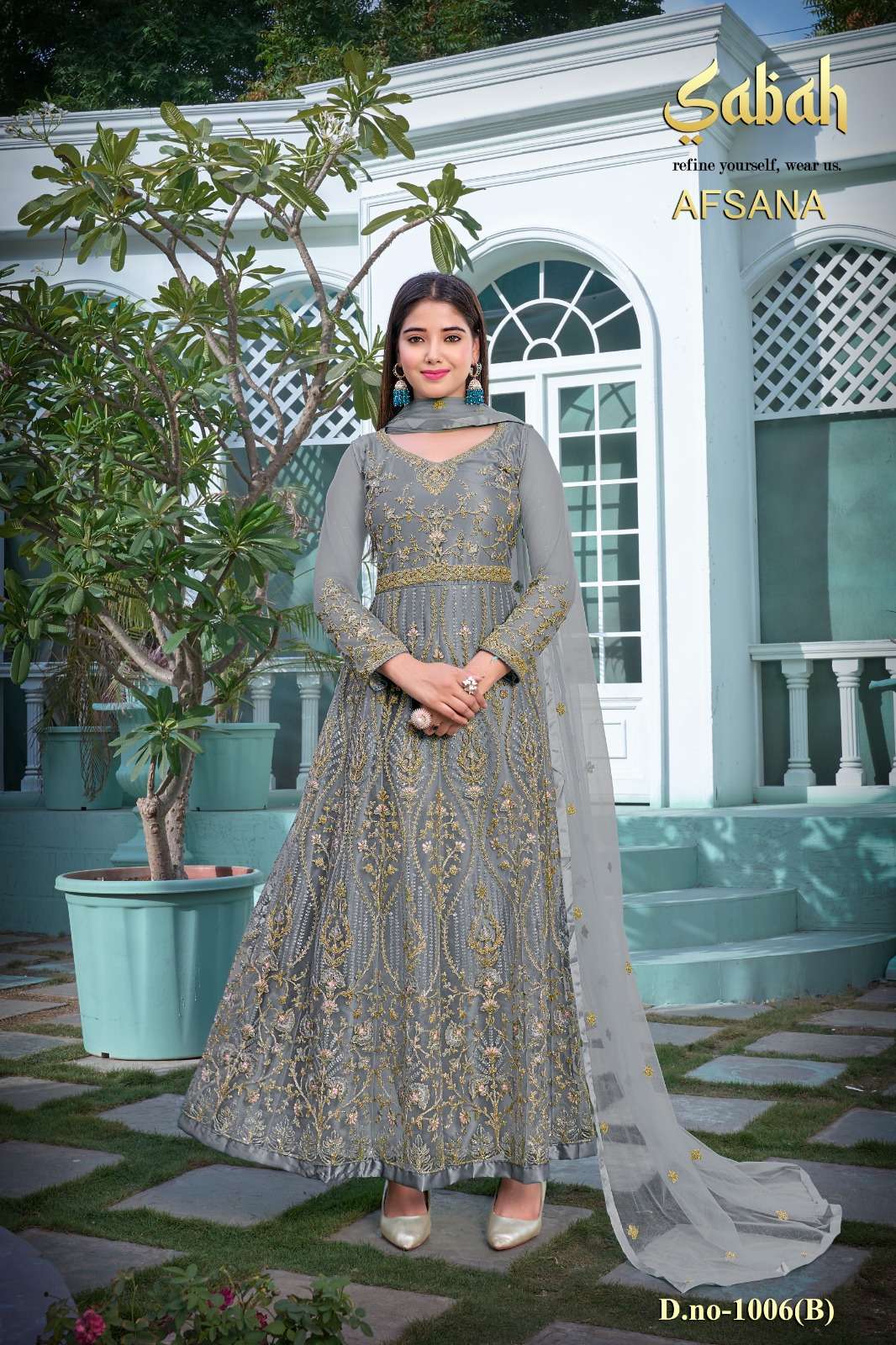 afsana vol 2 1006 by sabah butterfly net heavy designer work semistitch long salwar kameez