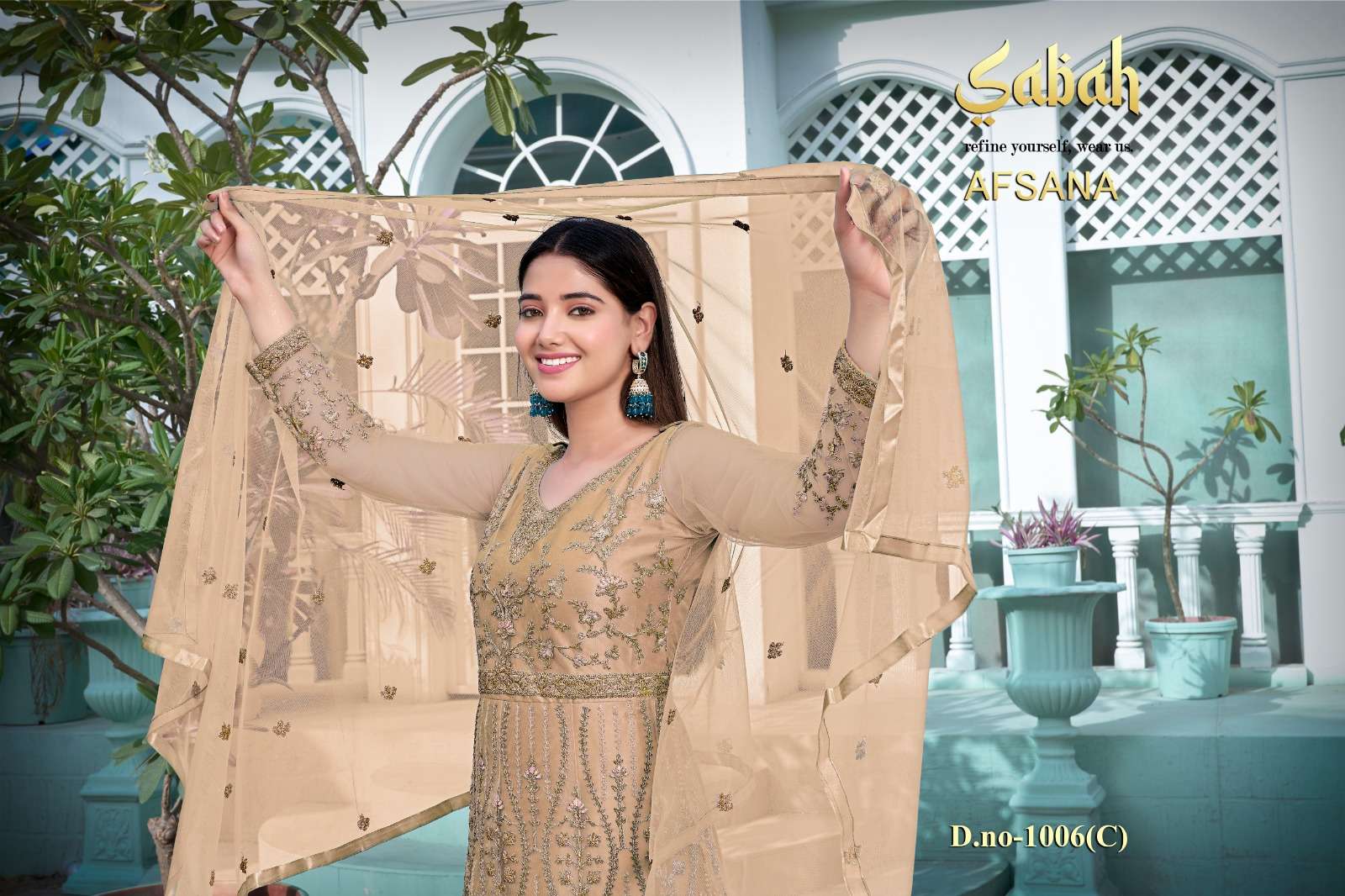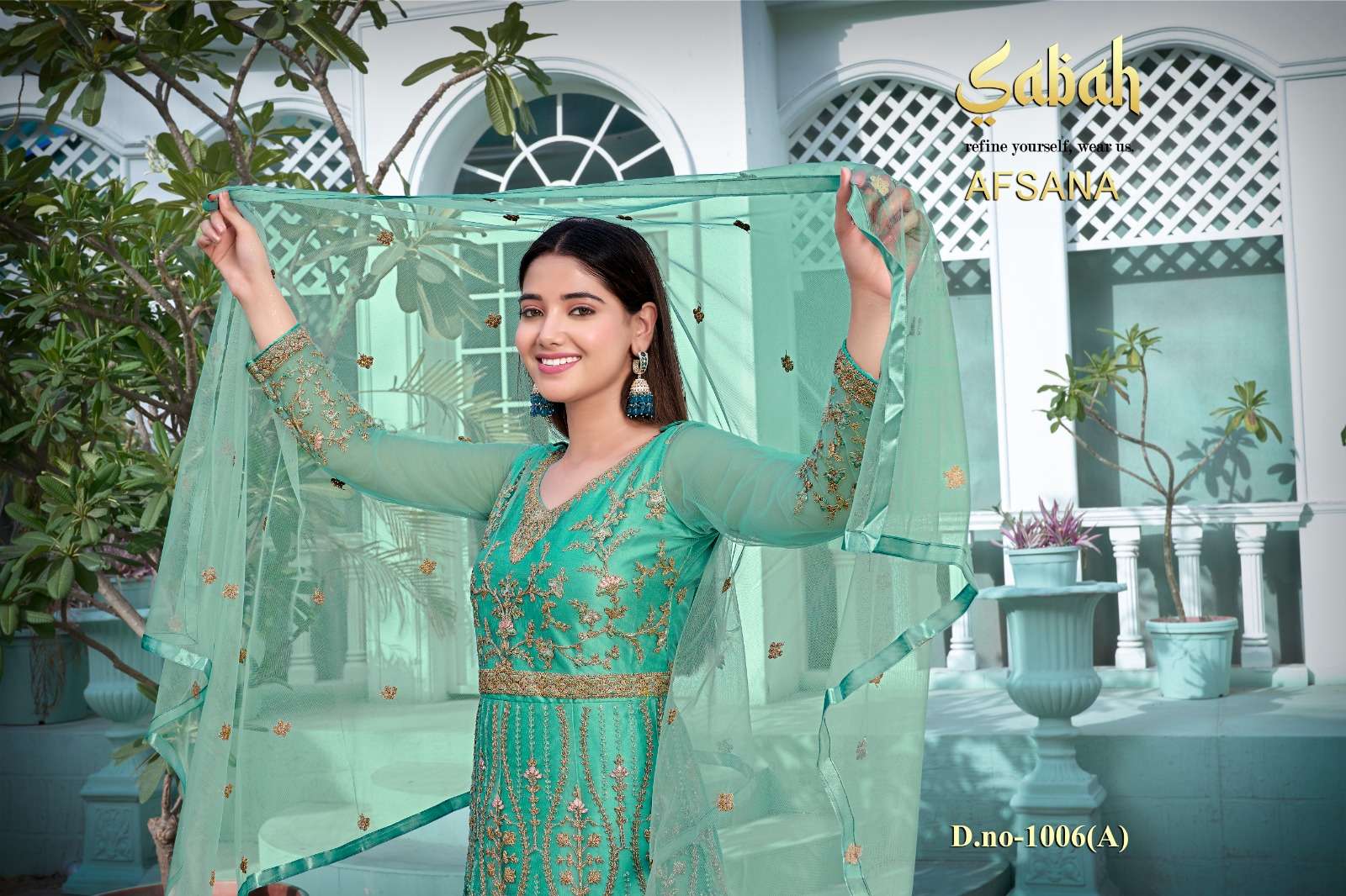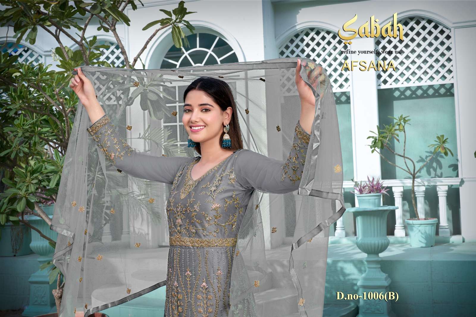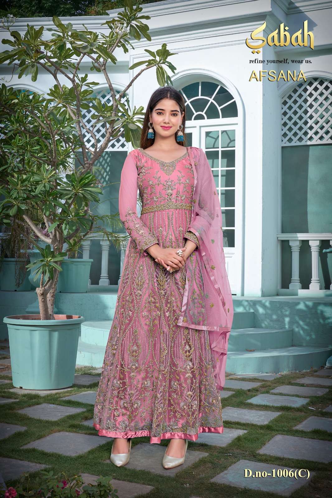 afsana vol 2 1006 by sabah butterfly net heavy designer work semistitch long salwar kameez