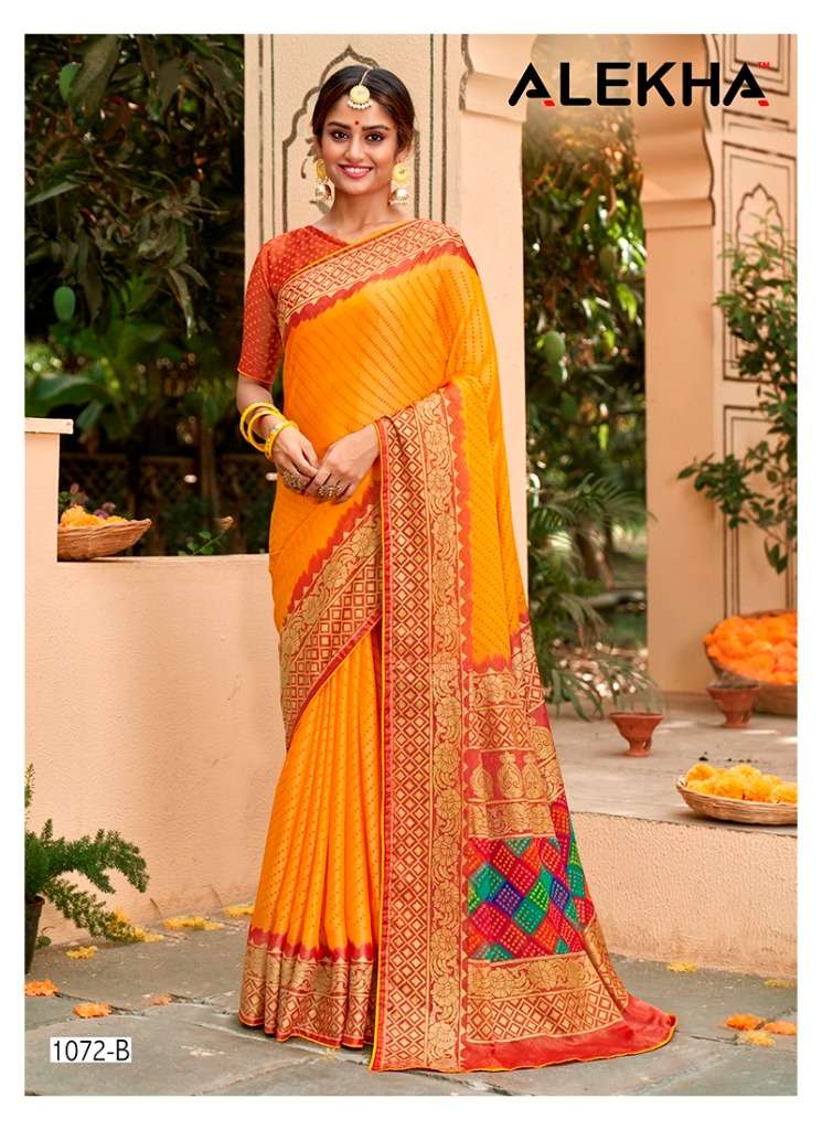Brand = ALEKHA Catalog = ALEKHA 1072 NEW FANCY CHIFFON BRASSO PRINT SAREE |
