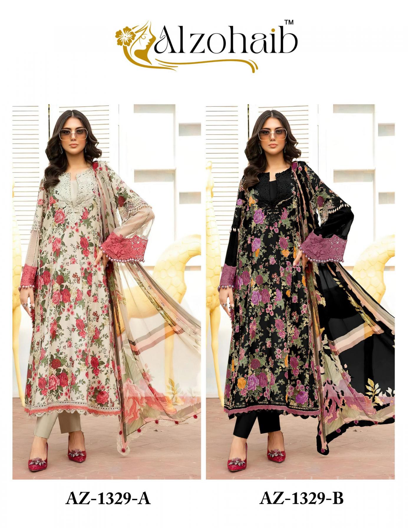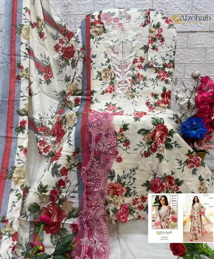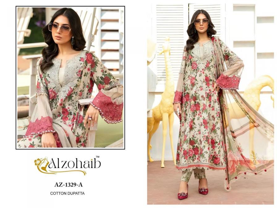 alzohaib az 1329 unstitched cotton suits with cotton dupatta