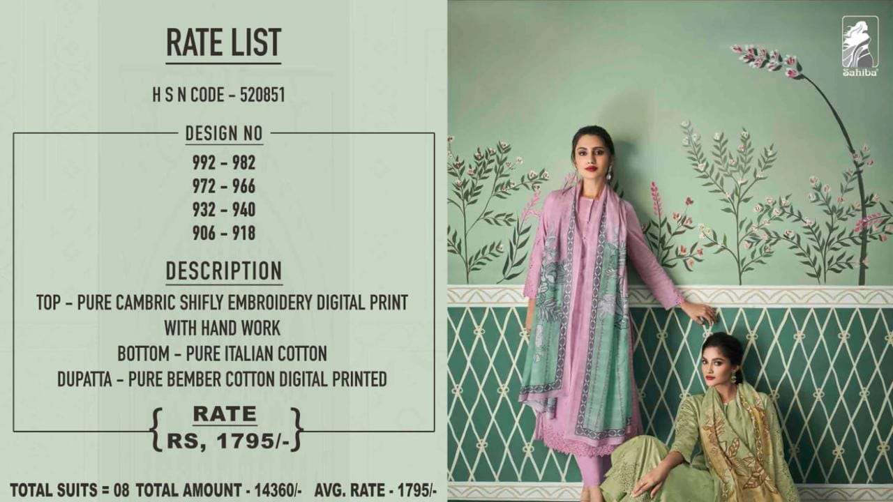 Sahiba Presents Latest Collection Launched on 24-05-2022. Presenting Beautiful collection of 8 PCS with Unstitched .