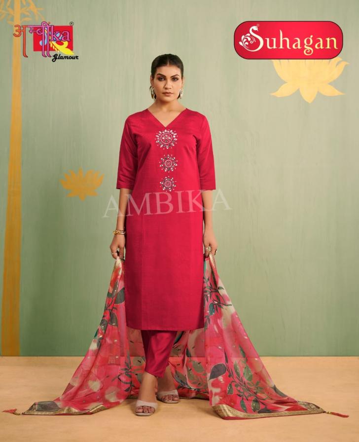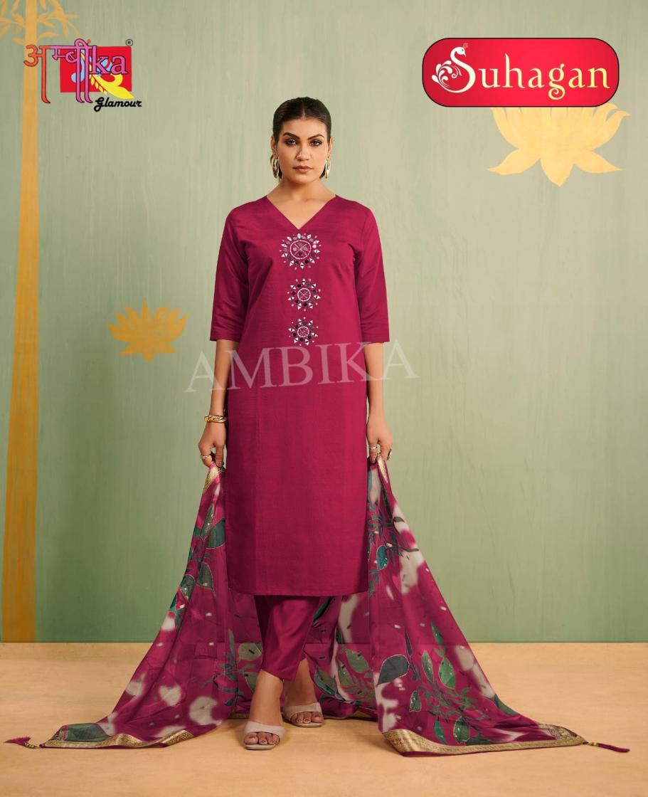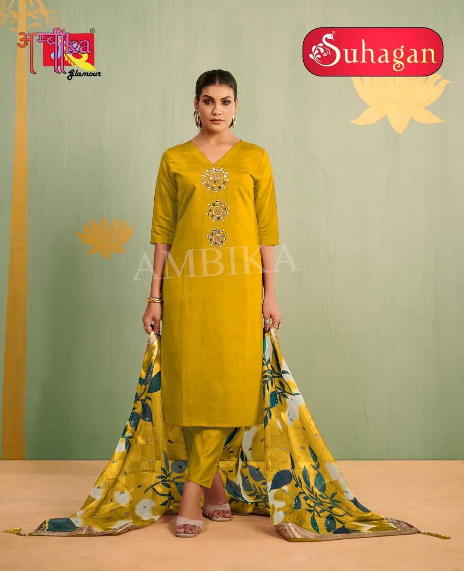 ambika launch suhagan vertican fully stitch pretty combo 3pcs dress