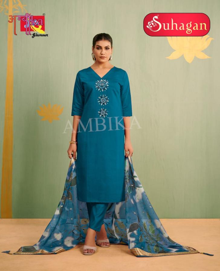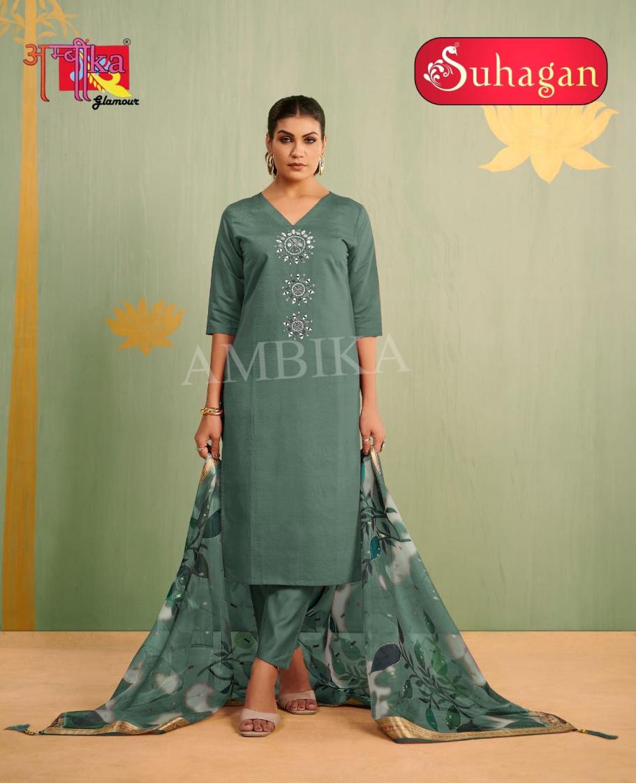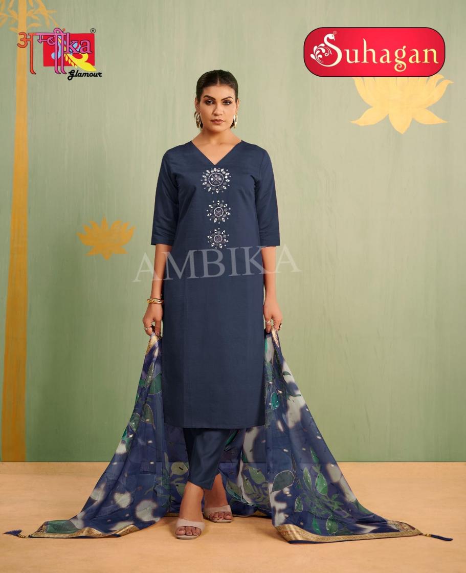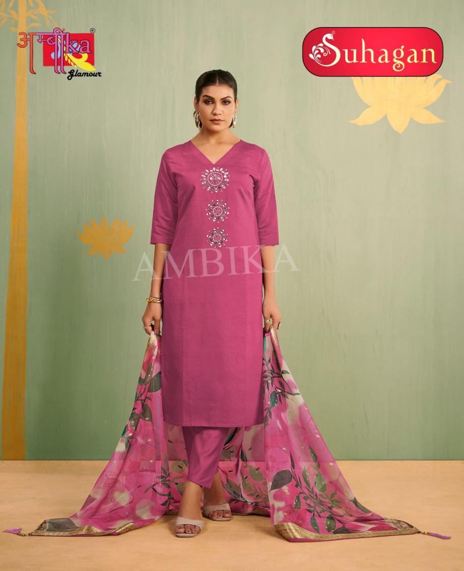 ambika launch suhagan vertican fully stitch pretty combo 3pcs dress
