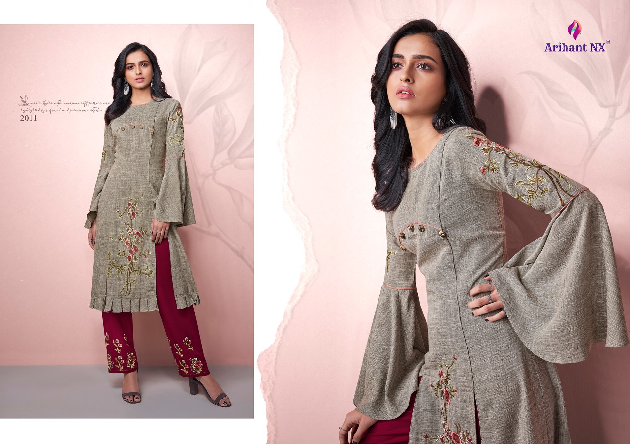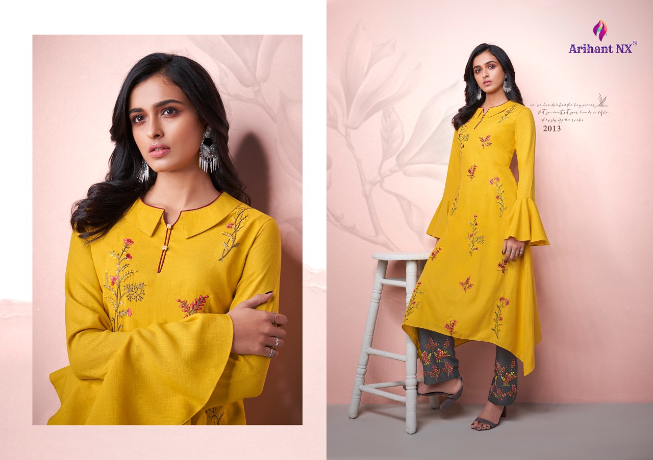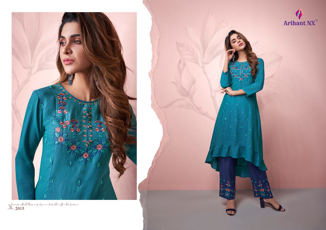 Arihant NX™ Vamika™ Presents Hit pent set Series Catalogue Name:- AMORA ( 7⃣Pcs) (D.NO.2011 To 2017 ) Fabrics Details:- Top :- Two ton Reyon Pent:- *Two ton Reyon with work Size-S-36, M-38, L-40, XL-42, XXL-44, 3xl-46 Des.Total:- 7⃣Pcs Rate:-8⃣4⃣5⃣/-(+GST EXTRA) Disptching On:=This Week |
