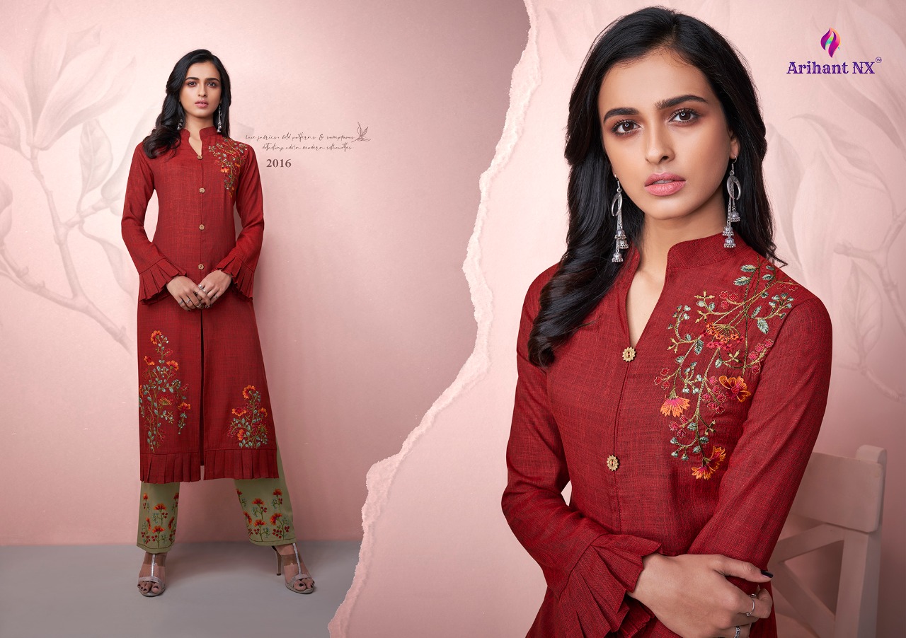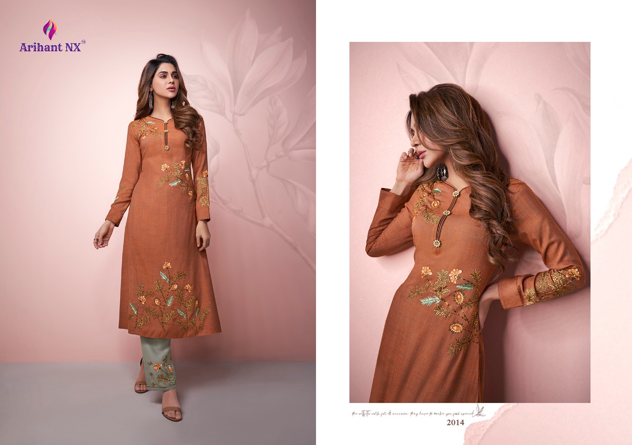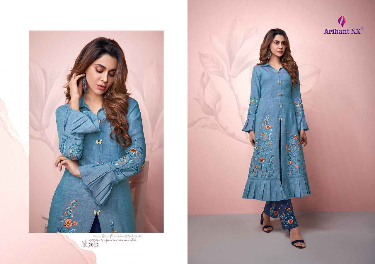Arihant NX™ Vamika™ Presents Hit pent set Series Catalogue Name:- AMORA ( 7⃣Pcs) (D.NO.2011 To 2017 ) Fabrics Details:- Top :- Two ton Reyon Pent:- *Two ton Reyon with work Size-S-36, M-38, L-40, XL-42, XXL-44, 3xl-46 Des.Total:- 7⃣Pcs Rate:-8⃣4⃣5⃣/-(+GST EXTRA) Disptching On:=This Week |