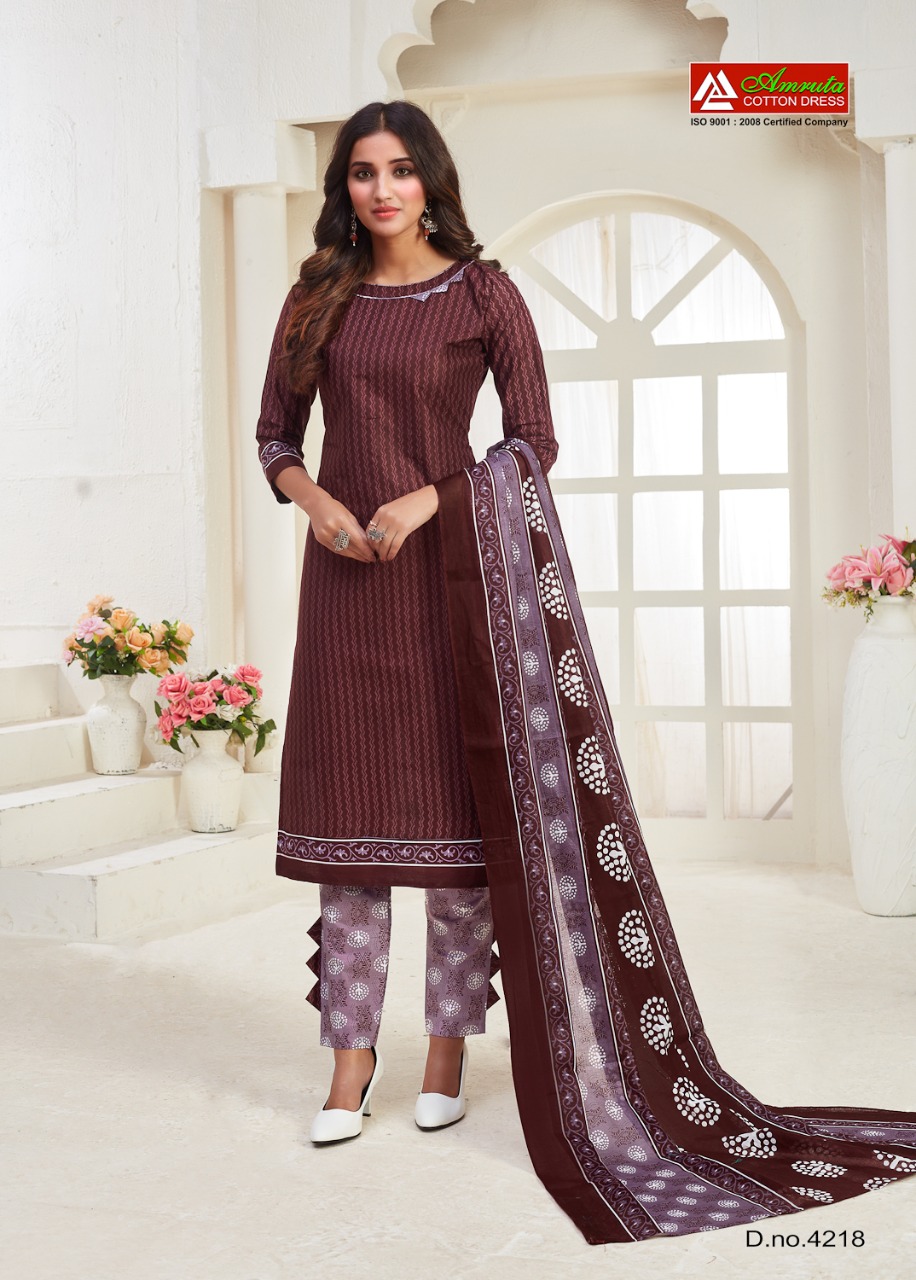 Amruta Cotton Dress Presents Latest Collection Launched on 10-10-2020. Presenting Beautiful collection of 20 PCS with Unstitched .