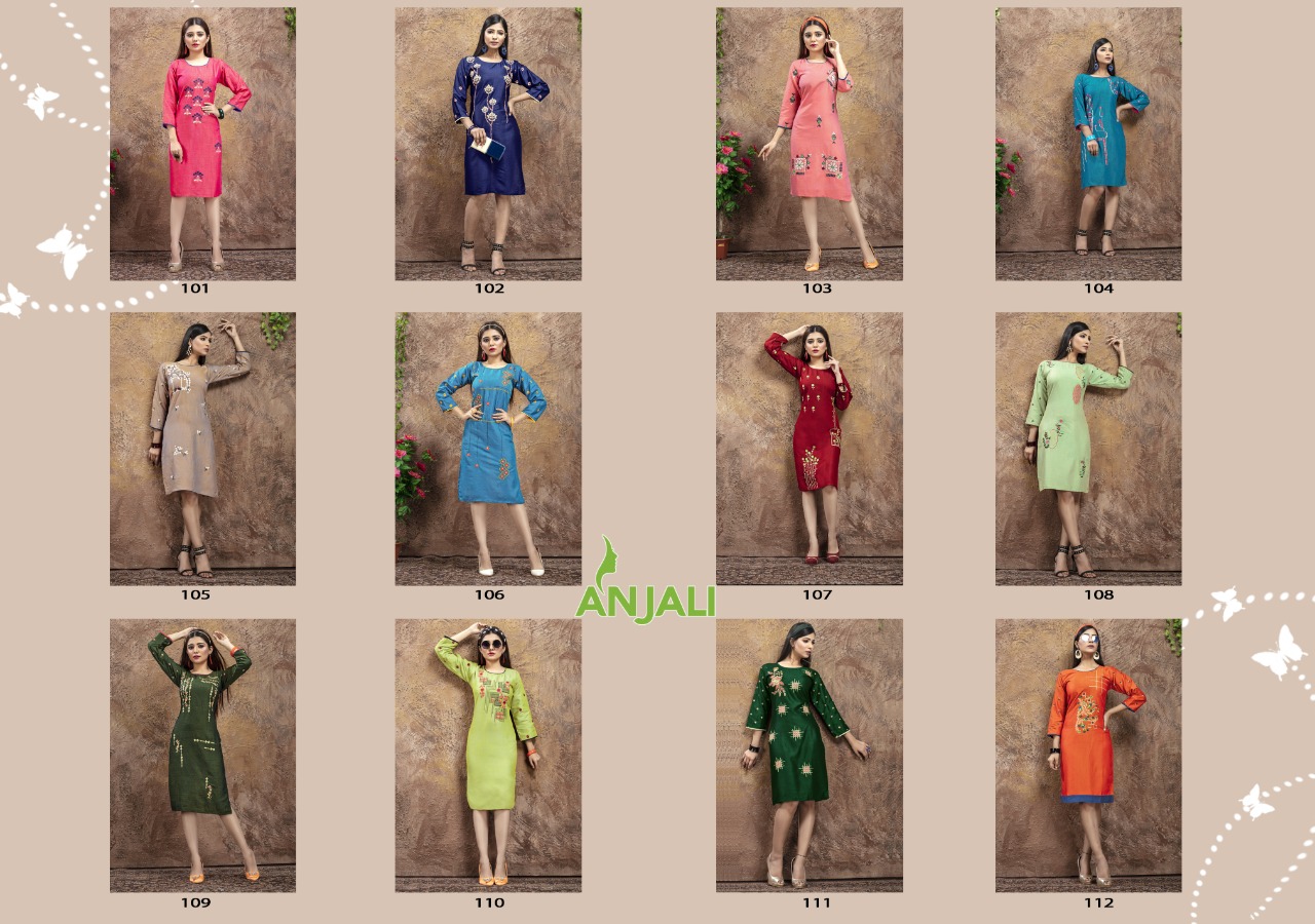 Anjali Vol 12 By Kinti Rayon Slub Formal Wear Kurtis Seller