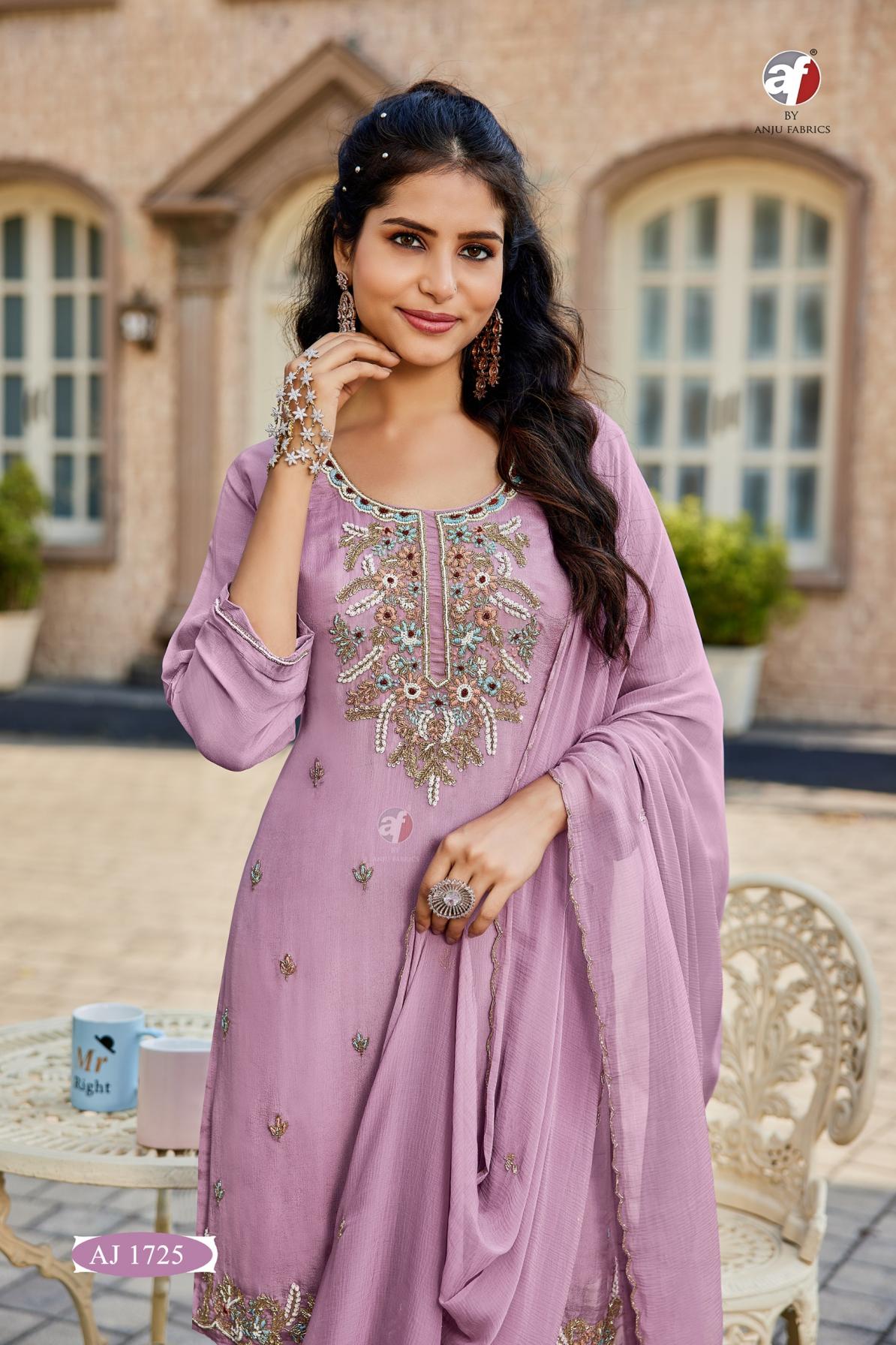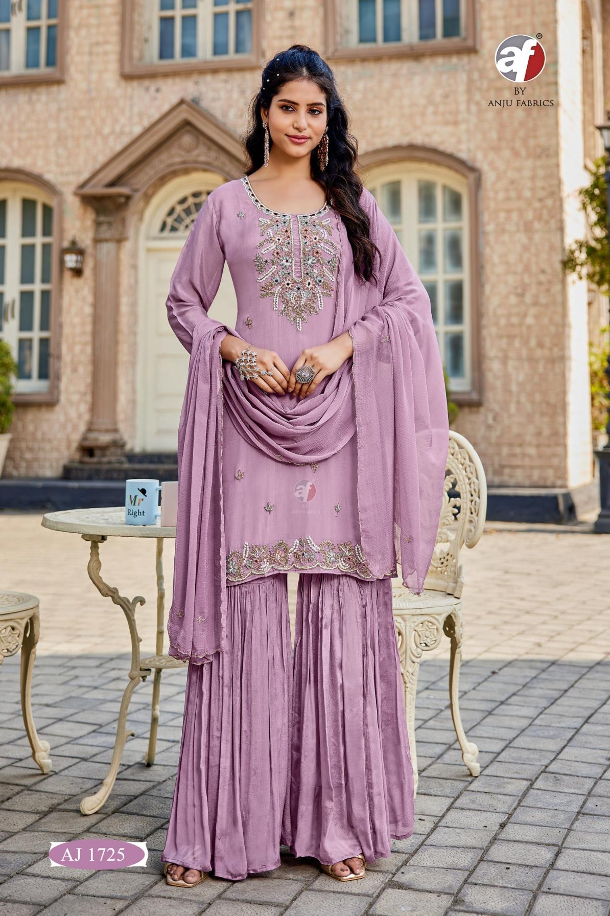 anju fab aj 1725 chinon chiffon combo set readymade short kurti sharara with dupatta