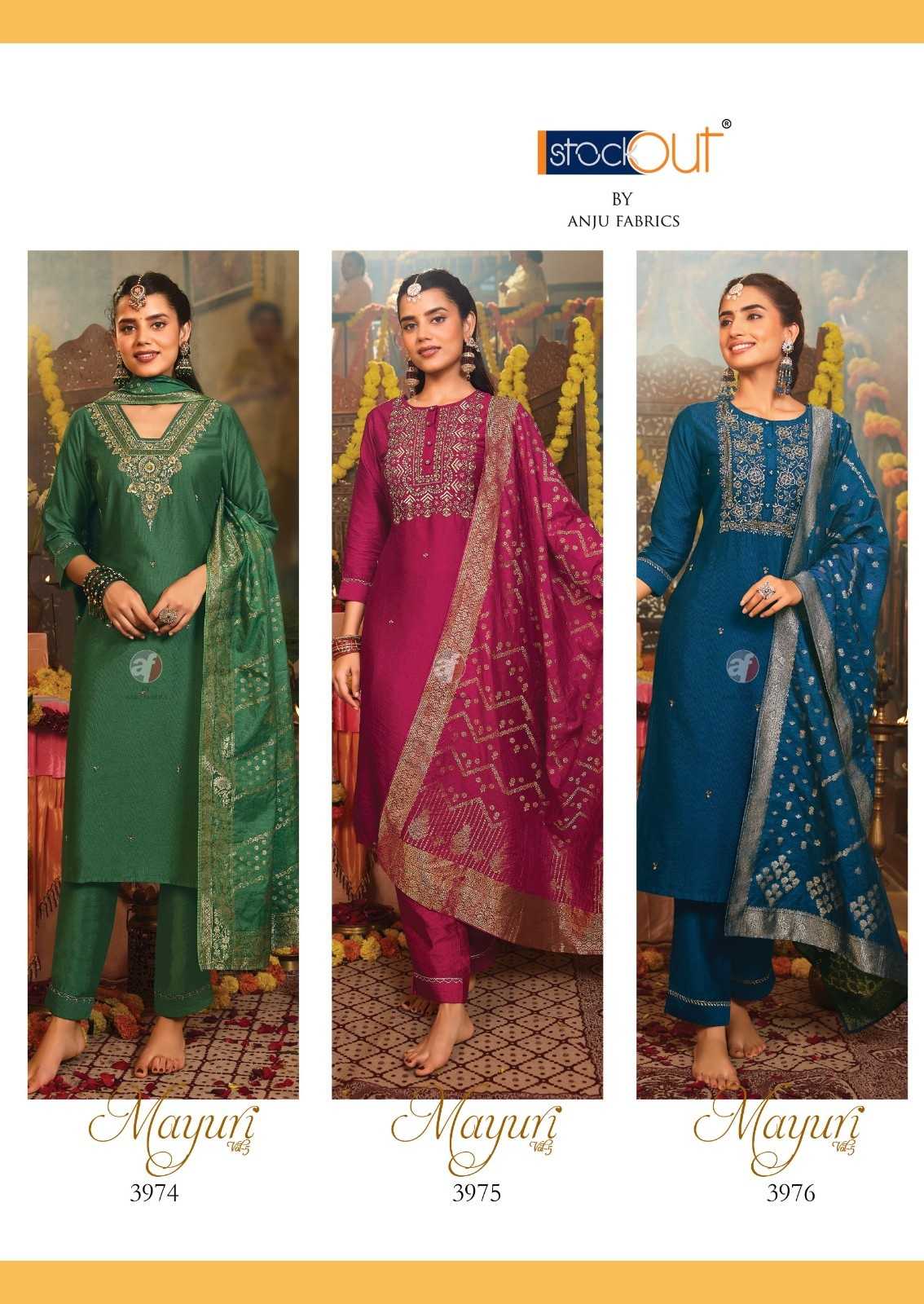 anju fab mayuri vol 5 viscose nylon readymade party wear big size festive suit