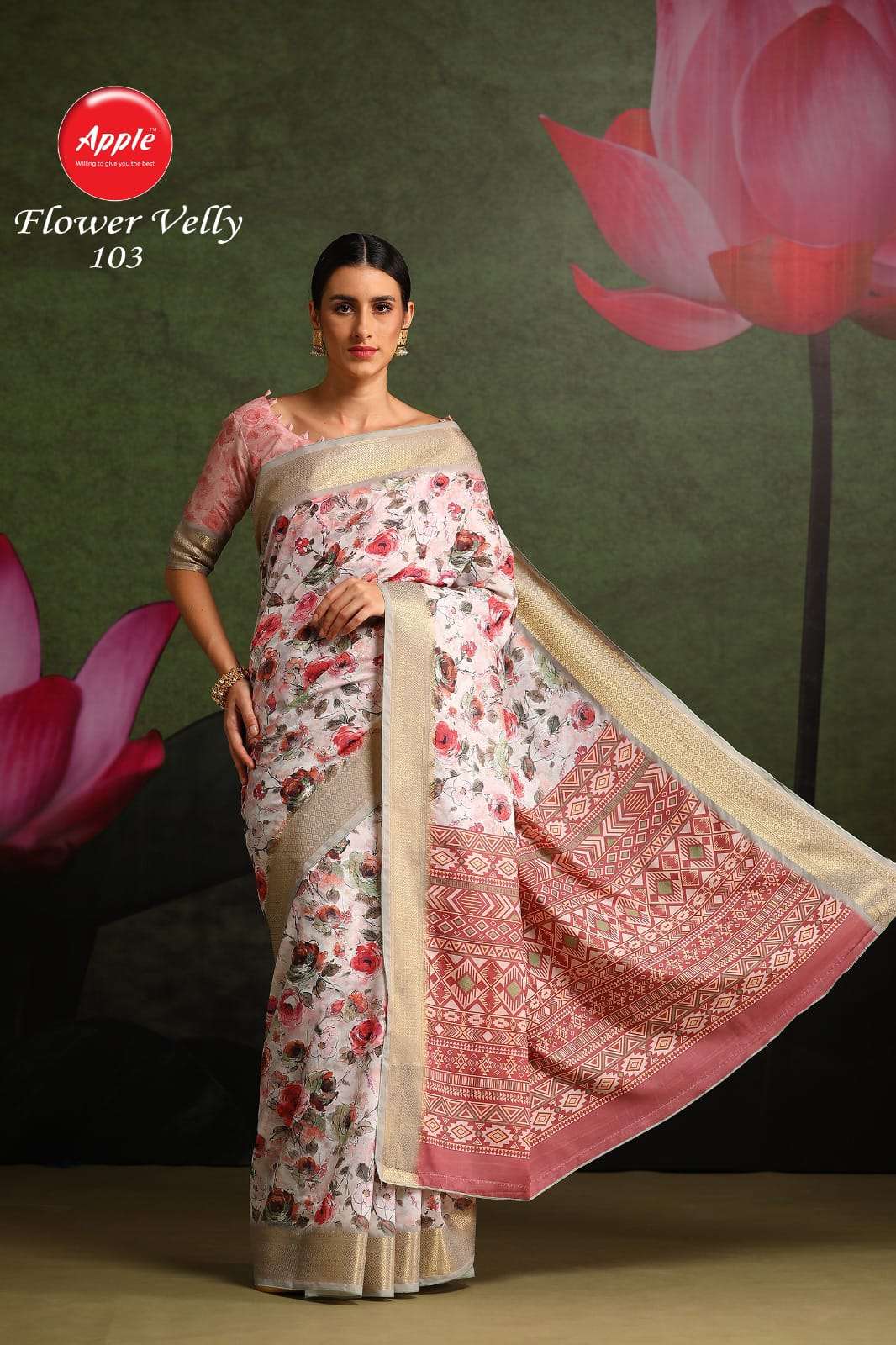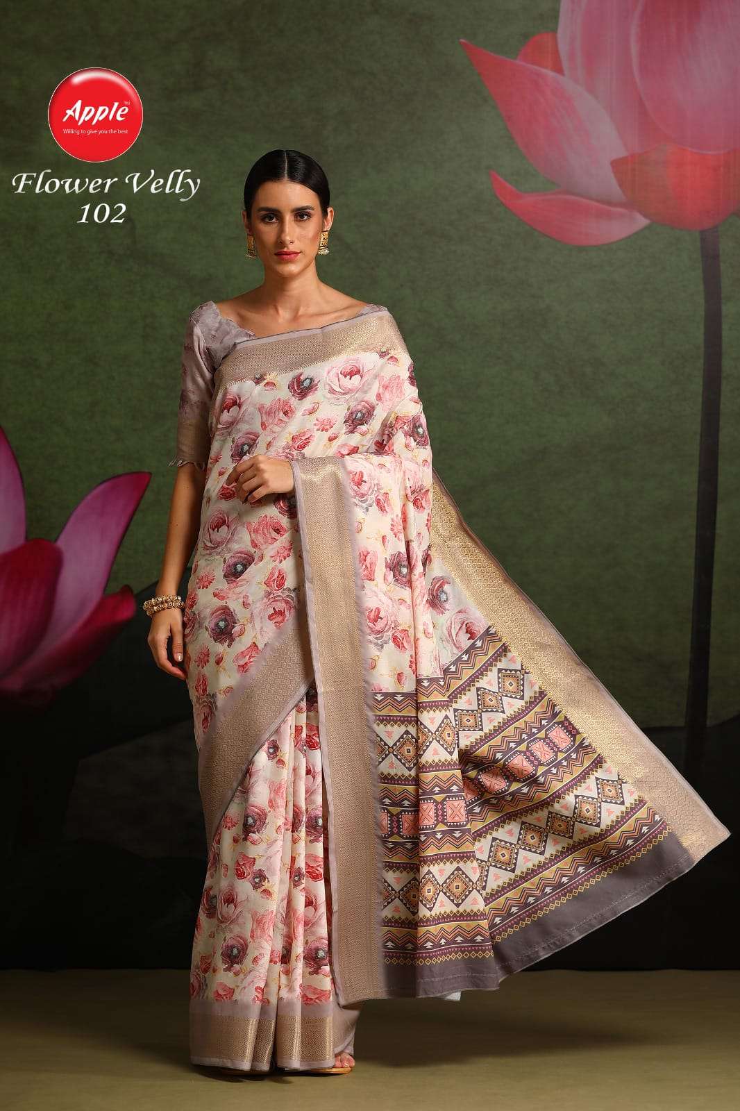 apple flower velly vol 1 beautiful print tusser silk saree collection