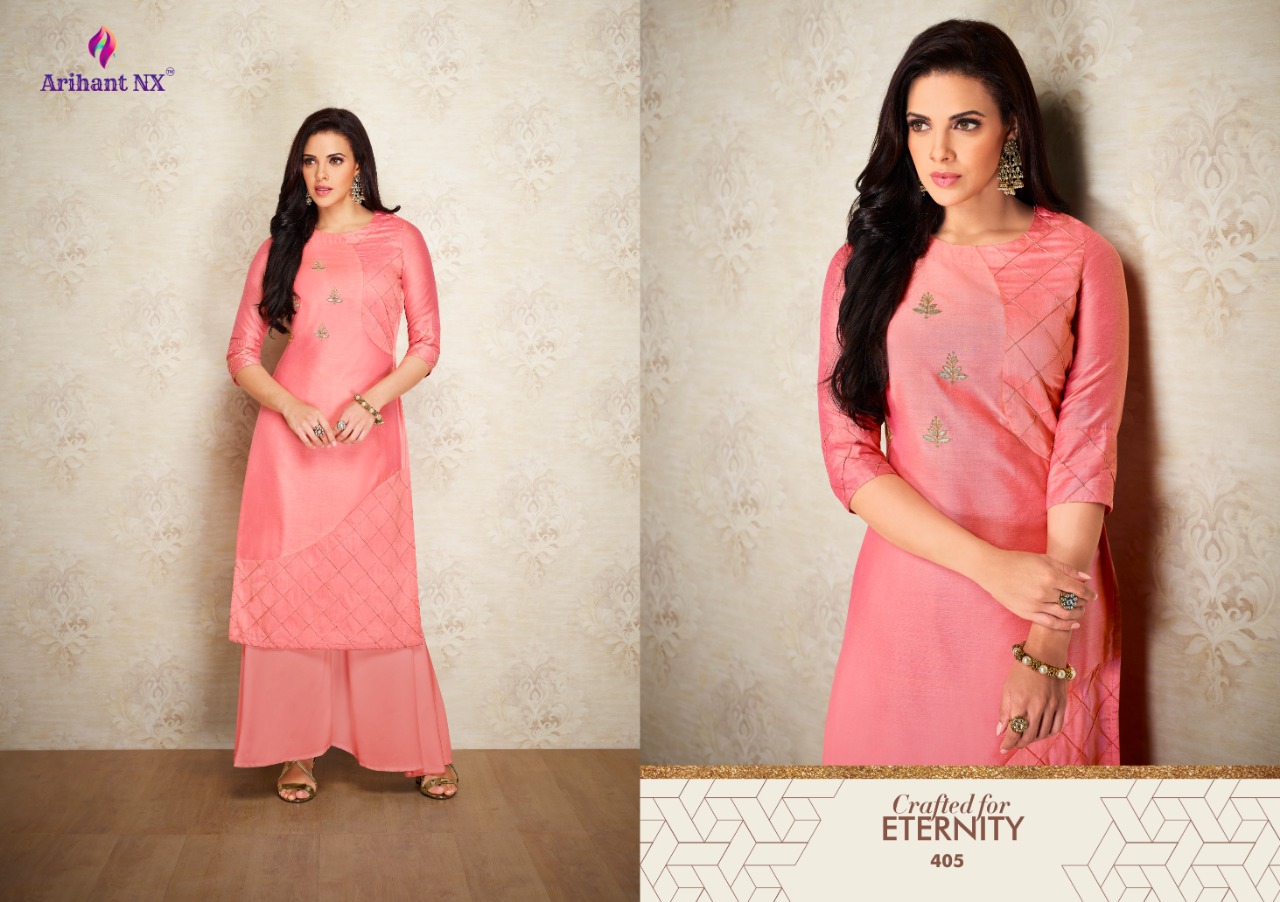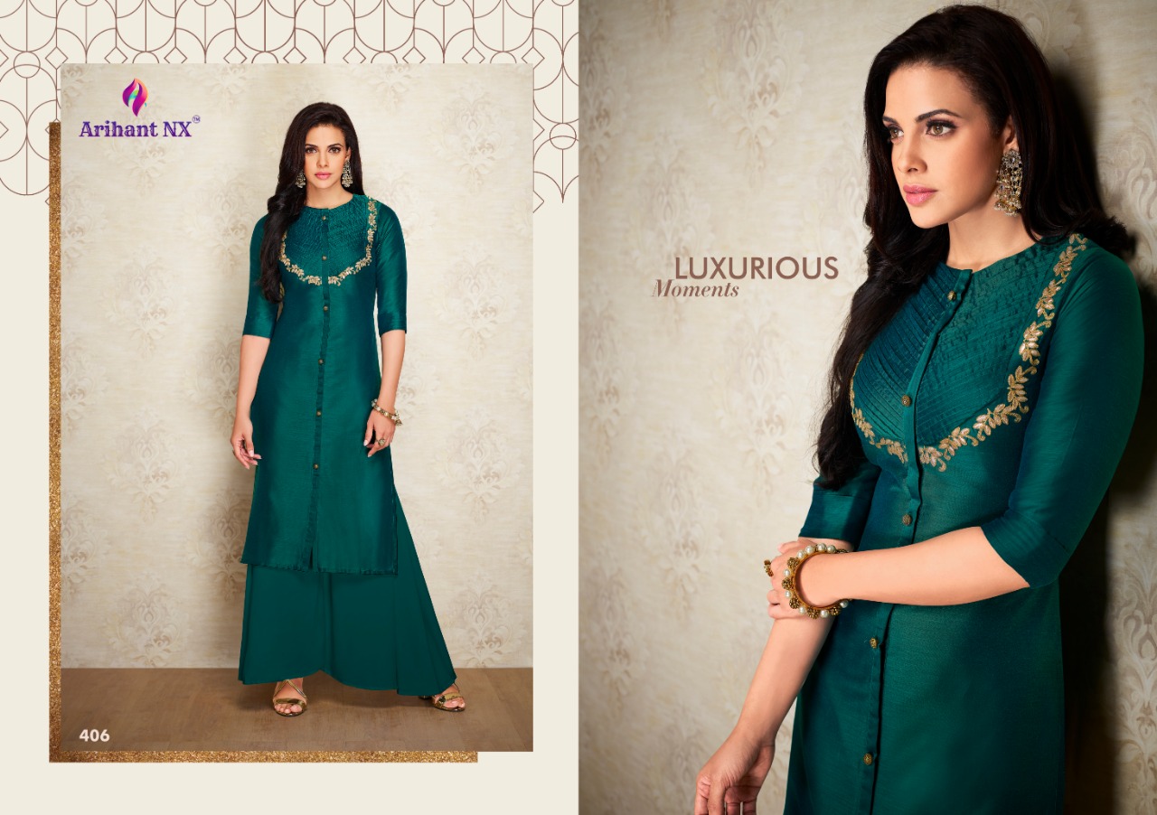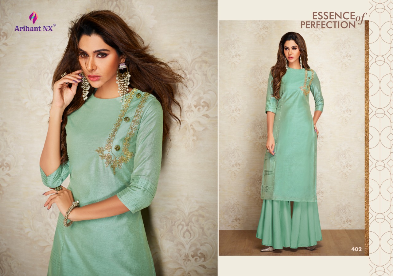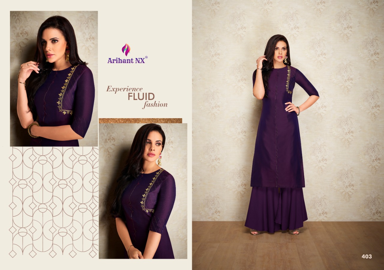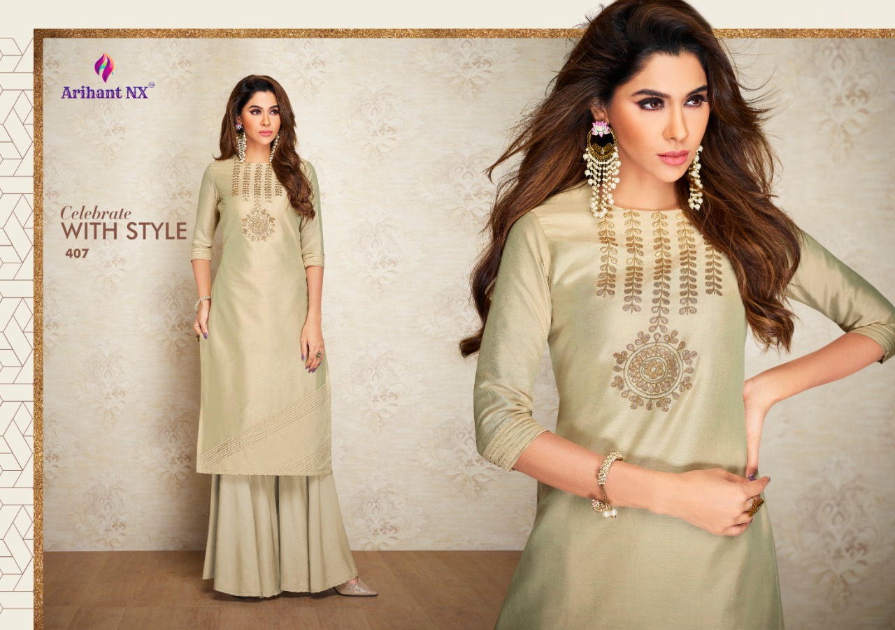 Arihant Nx Launch Naaz Viscose Silk 401-408 Series Top With Plazzo Wholesaler