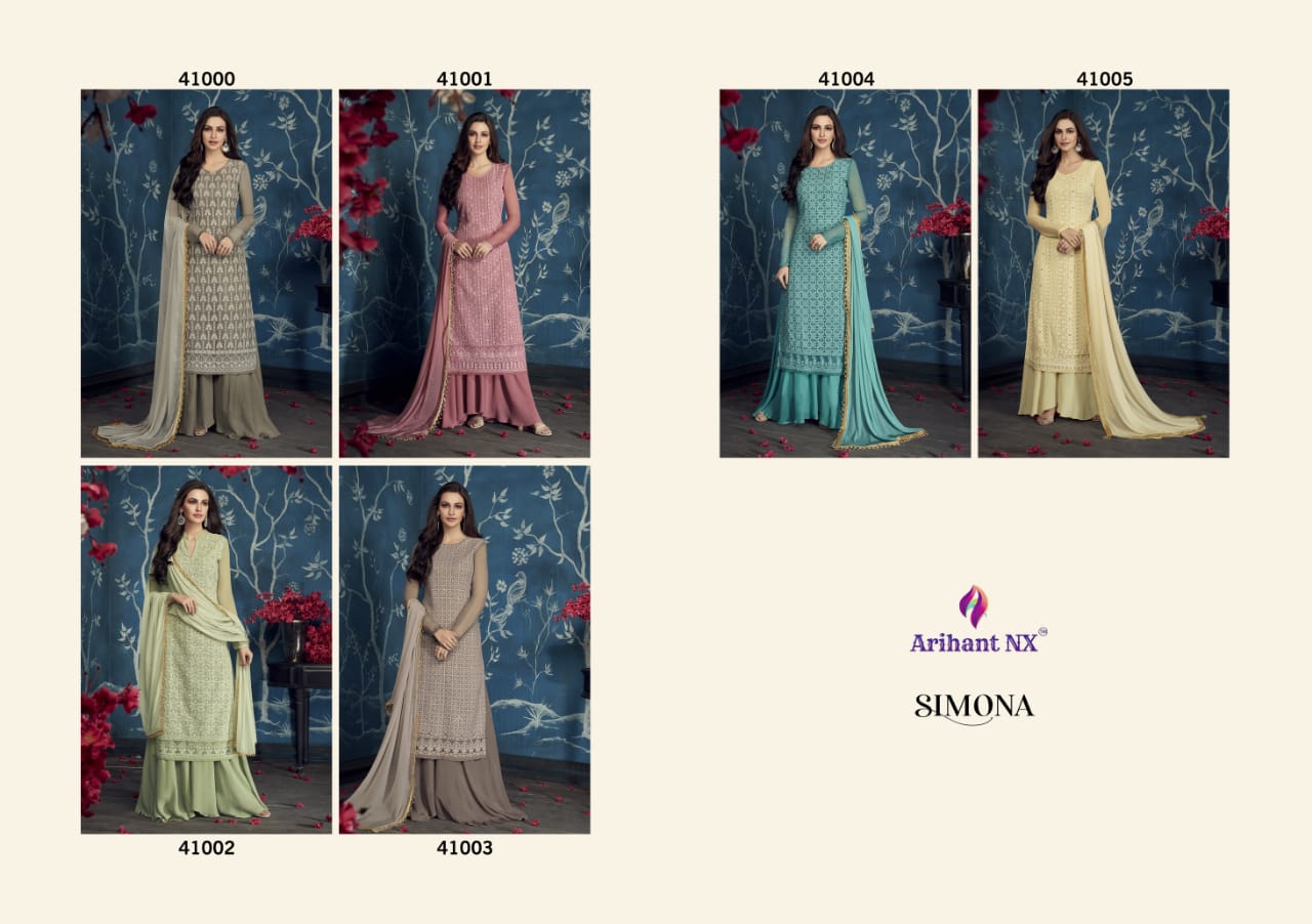 Arihant Nx Presents New Readymade Top With Palzo Series Catlog Name:- SIMONA (6 Pcs) (D.No.41000 To 41005) Fabrics Details:- Top:= Apple Jorjet Inner(Bottom/Inner):=Dull Santoon Plazo:= Apple Jorjet Duppta:=Nazmin (Full Stich Size ) Size-M-38 L-40 XL-42 XXL-44 (Note-Semi Stich Both Opation r Avleblie) Des.Total:-6 Pcs Rate:-1⃣3⃣9⃣5⃣/- Dispatching Date-Next Week |