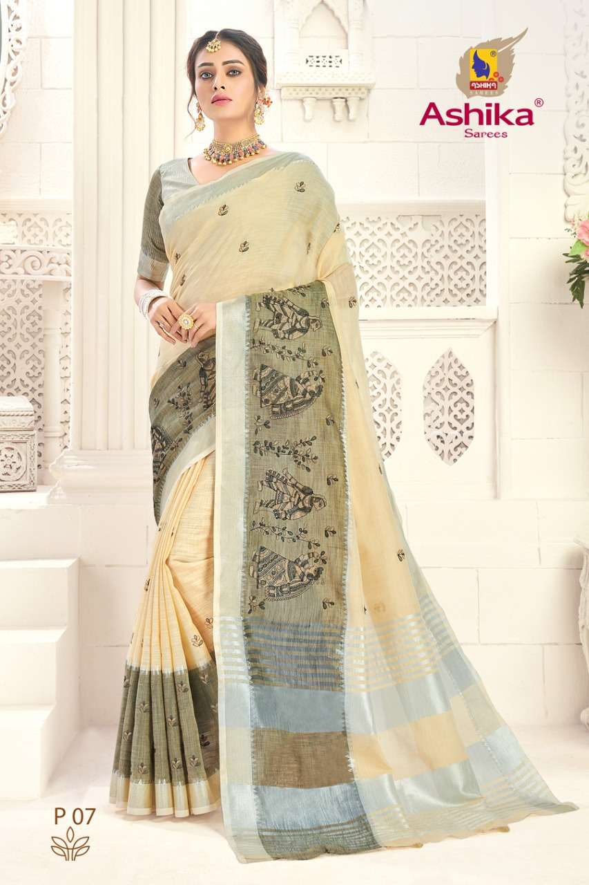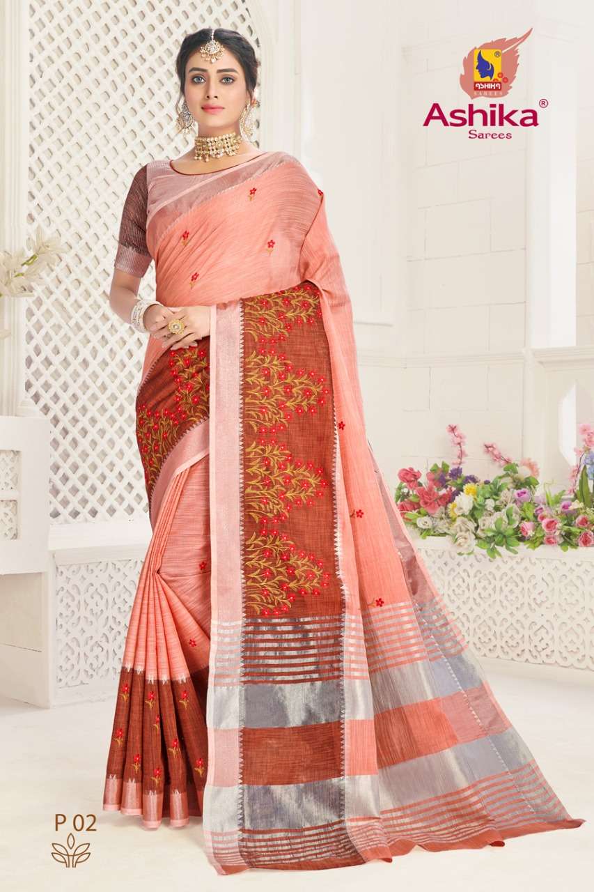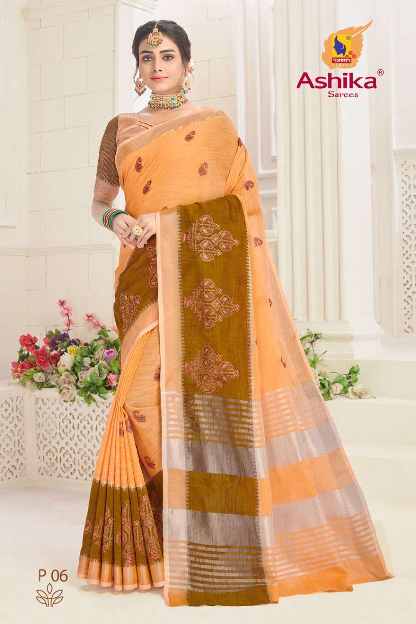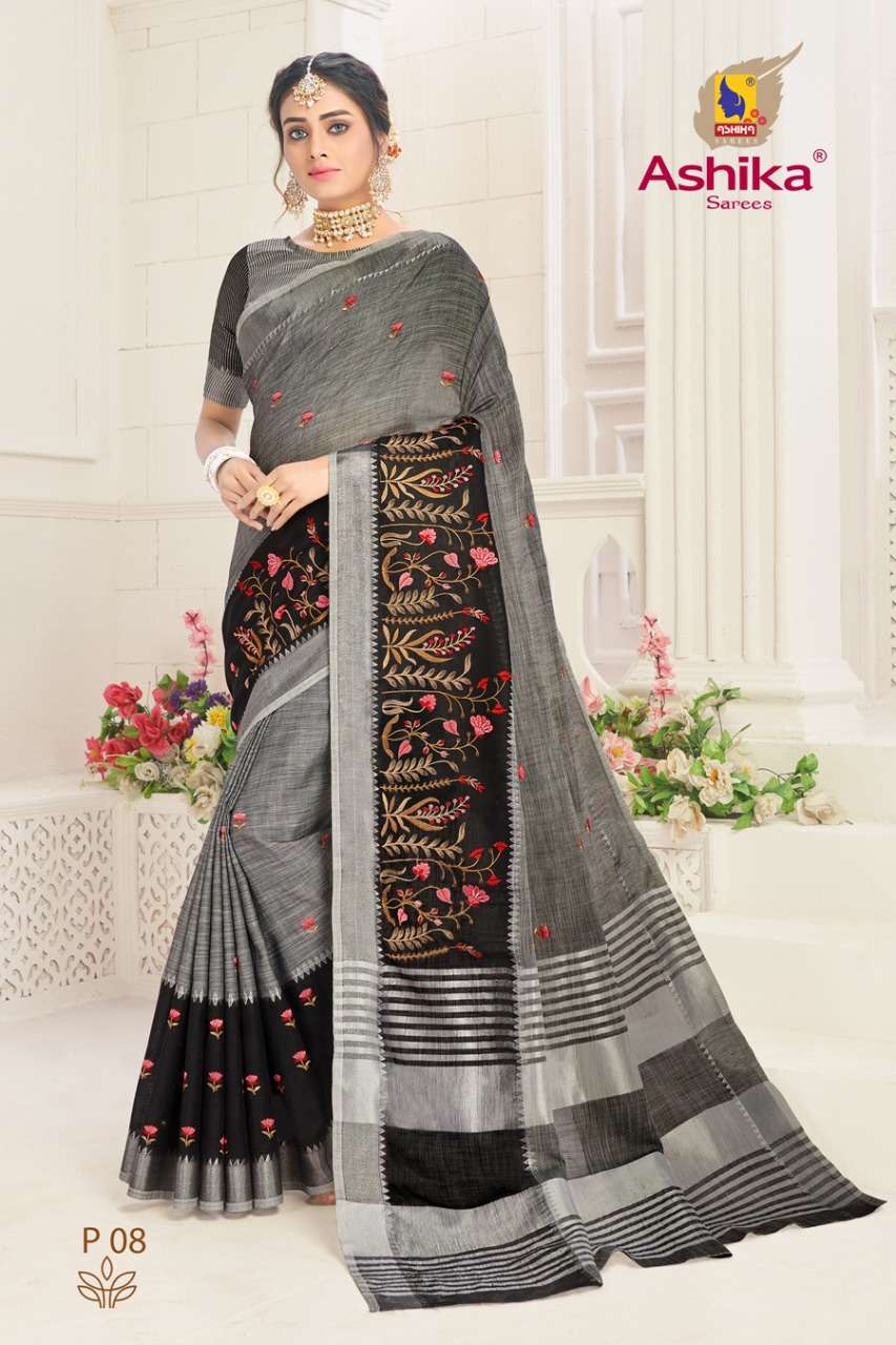 ashika sarees panchvati linen with embroidery elegant sari for women