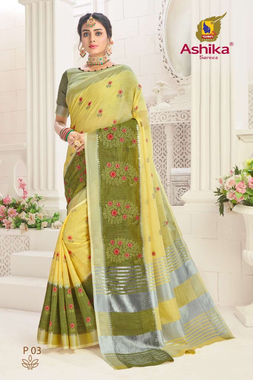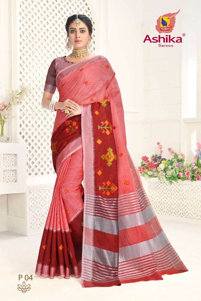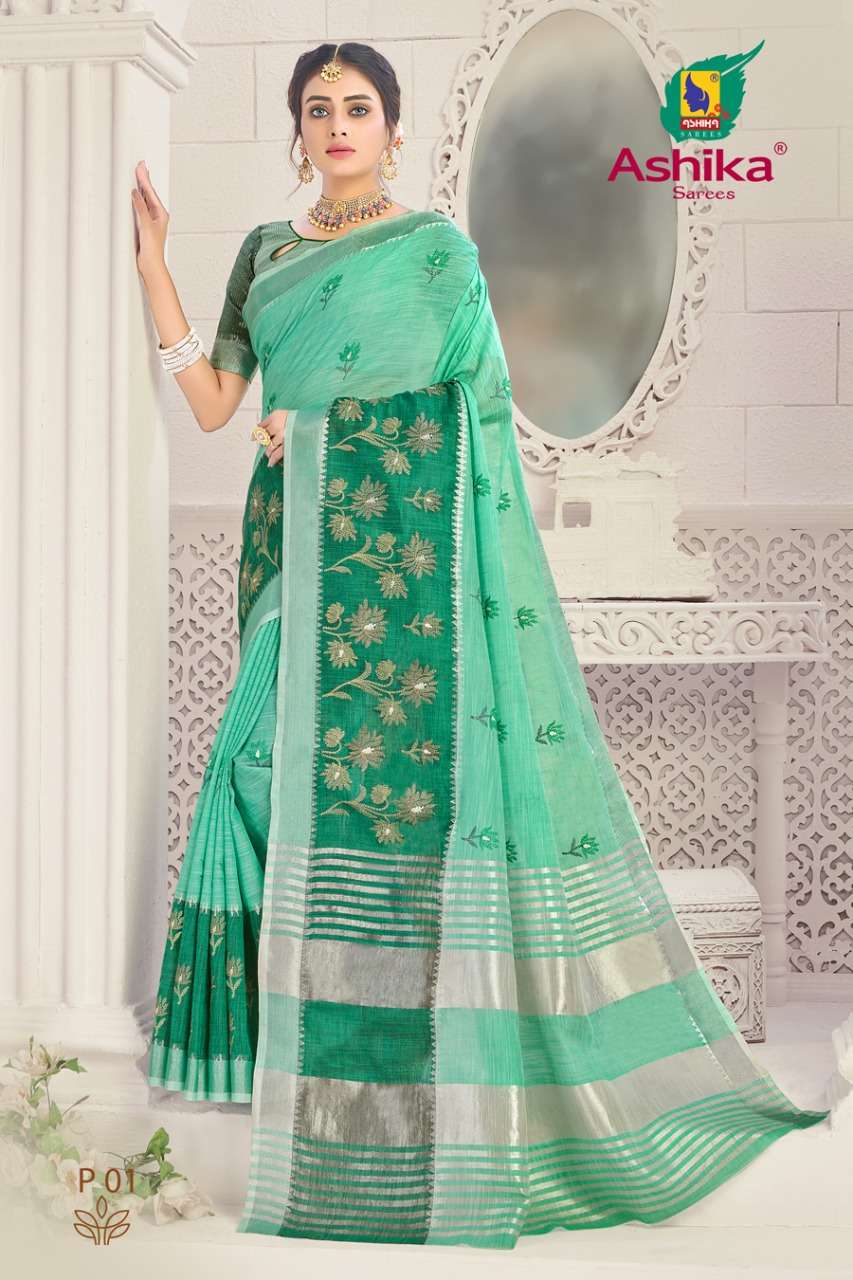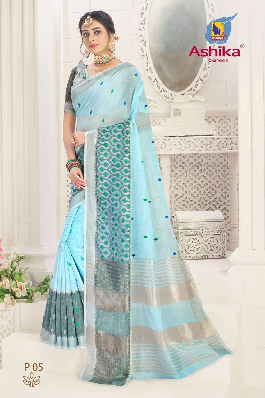 ashika sarees panchvati linen with embroidery elegant sari for women