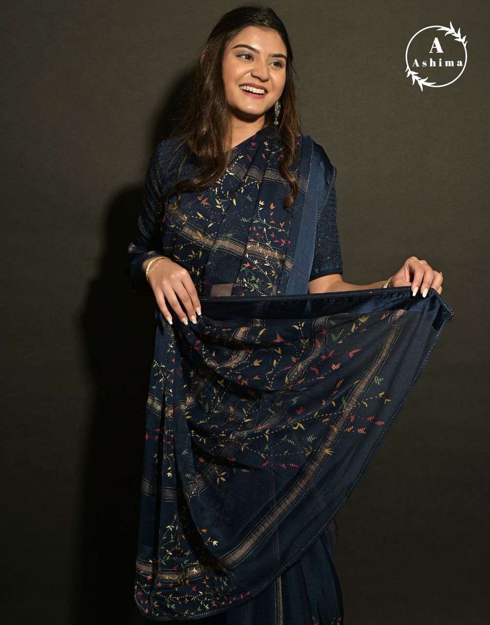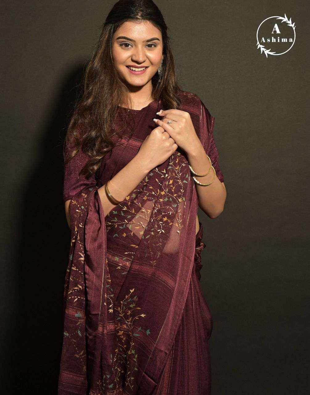 ashima nylon autograph weaving pattern with satin patta fancy sarees collection