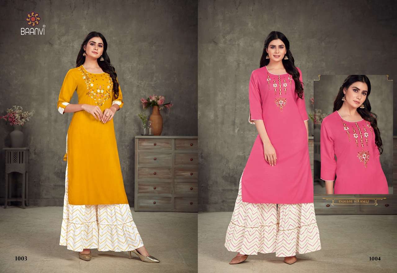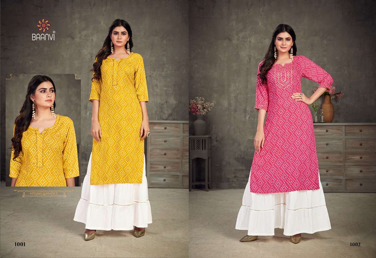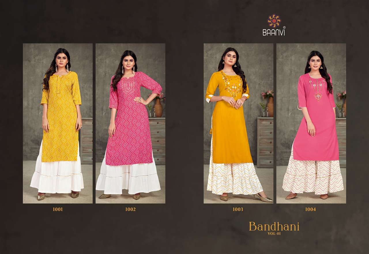 baanvi bandhani vol 1 rayon readymade kurti with sharara collection