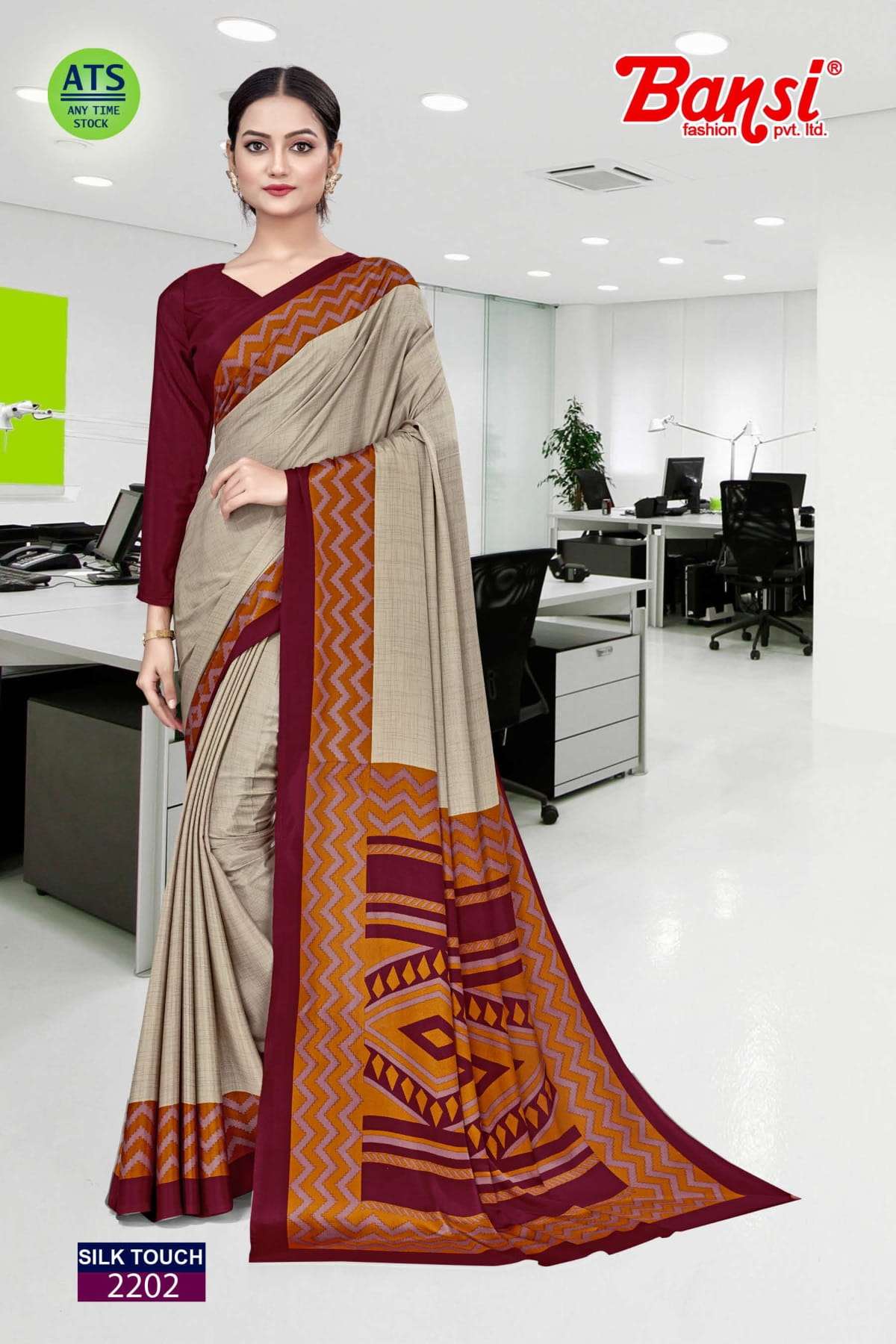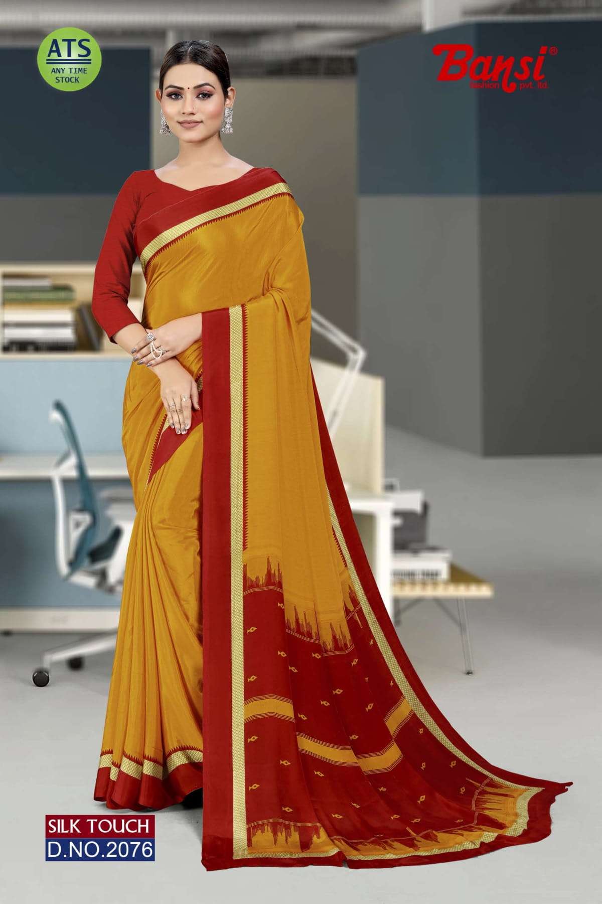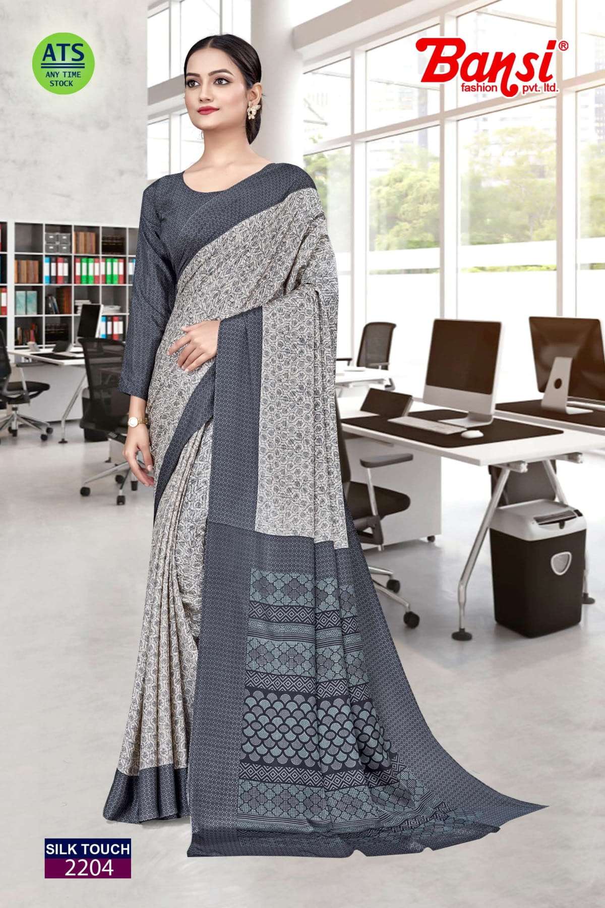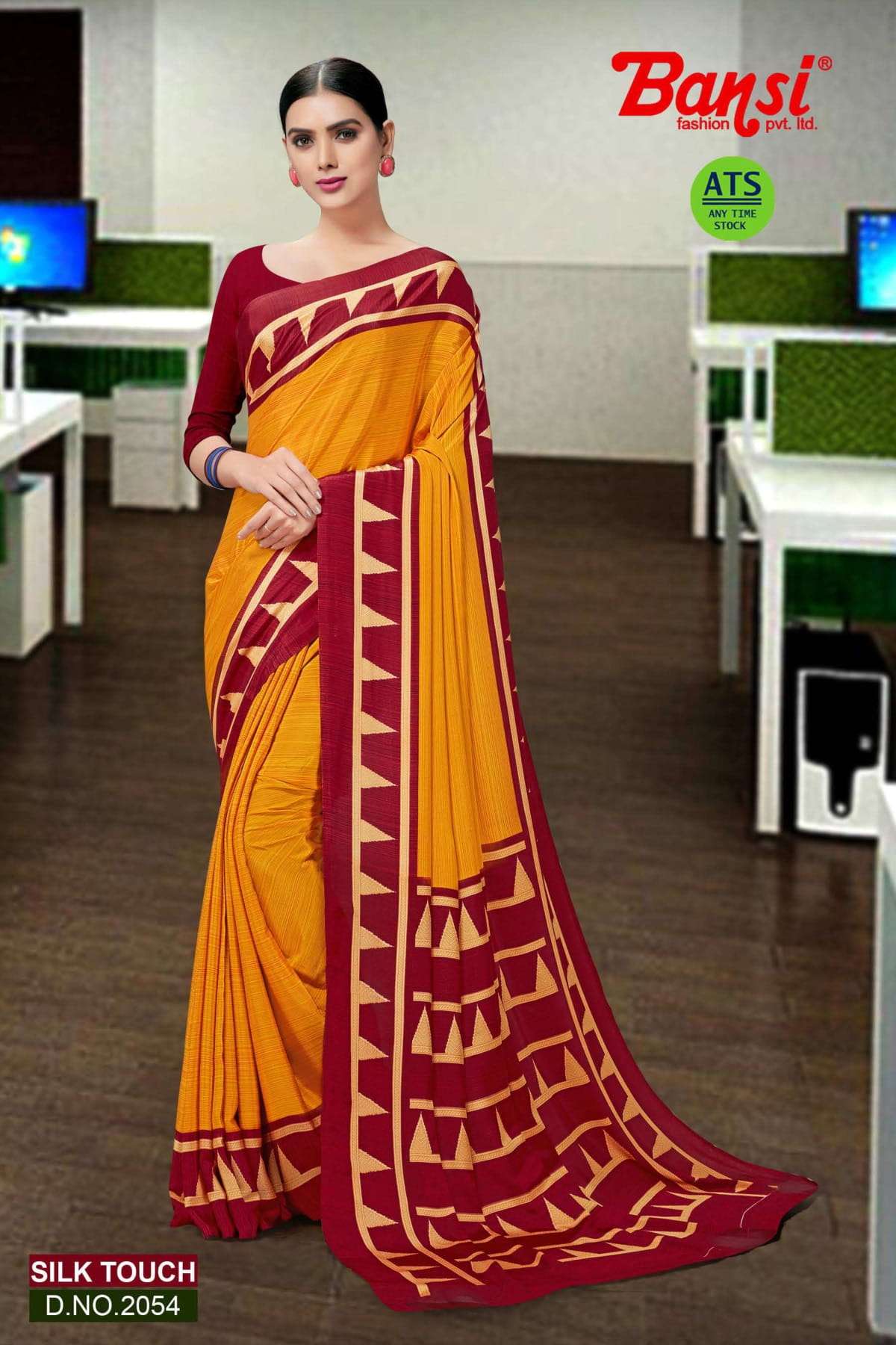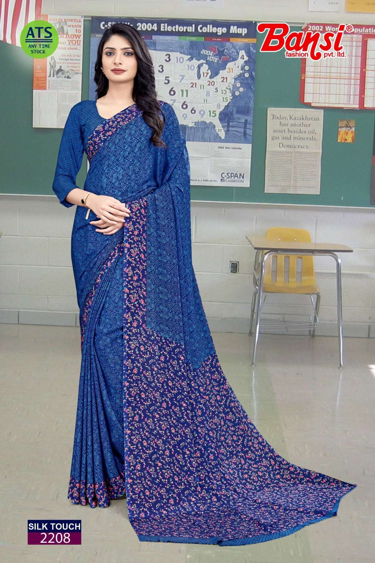 bansi silk touch crepe office uniform saree with blouse wholesaler