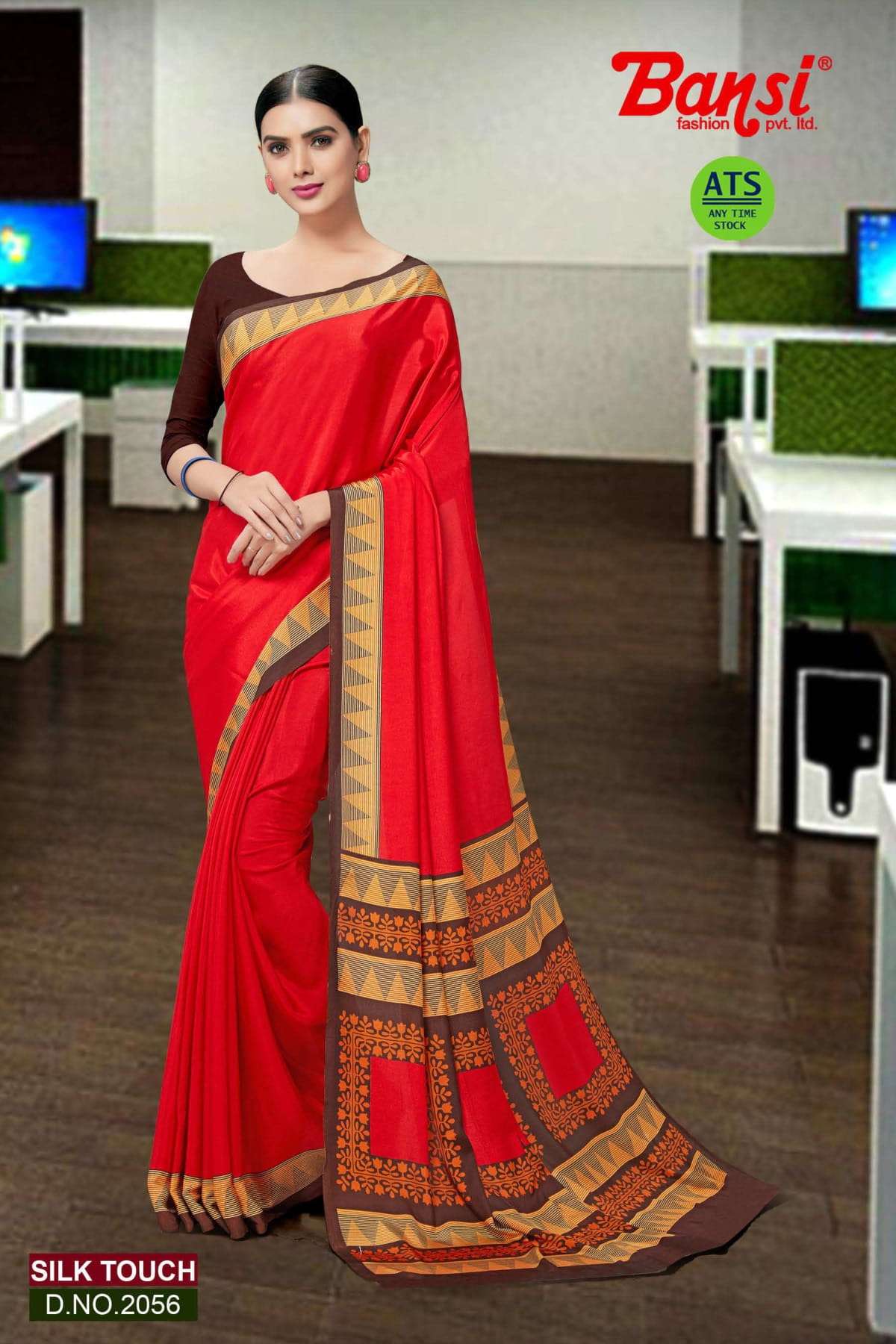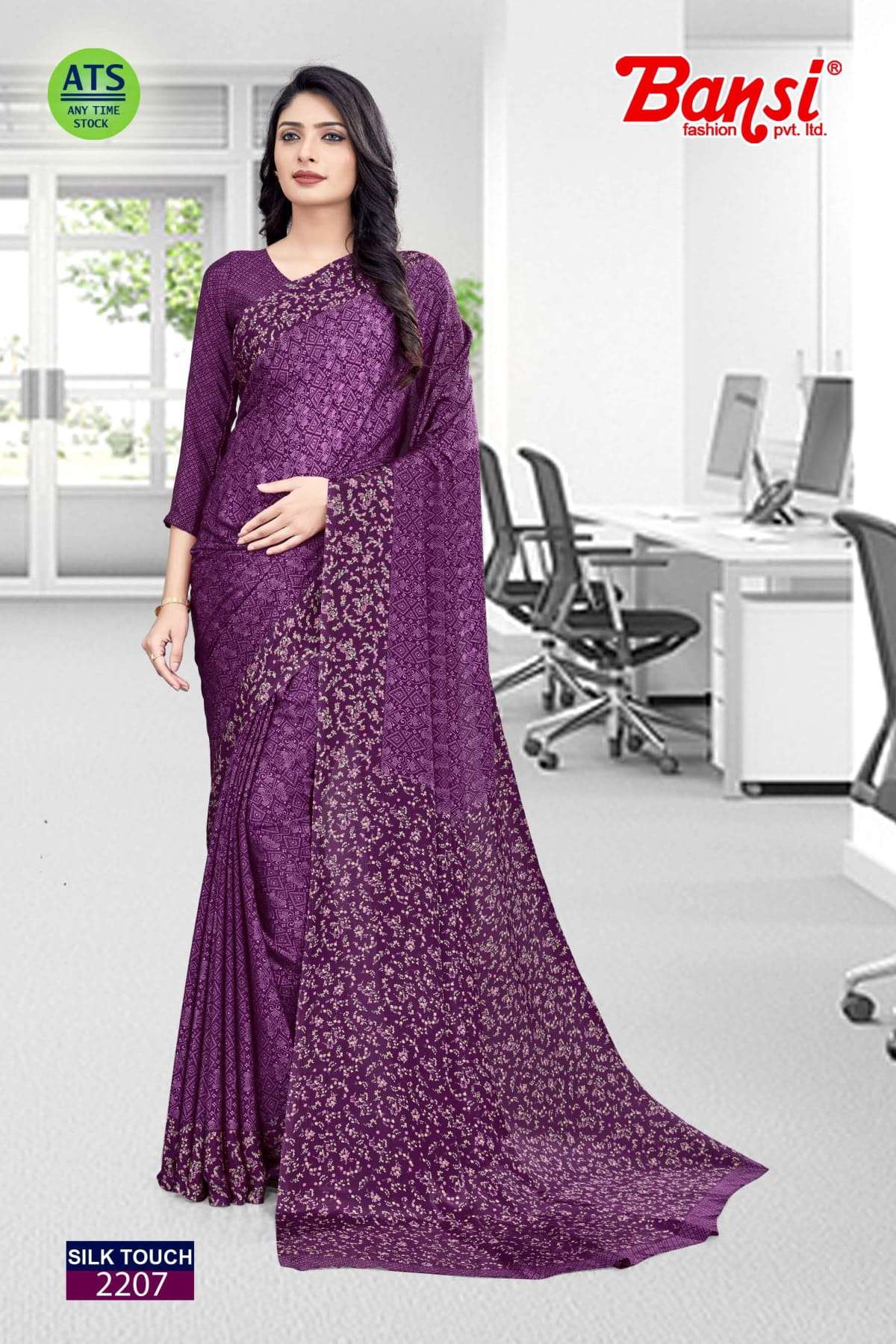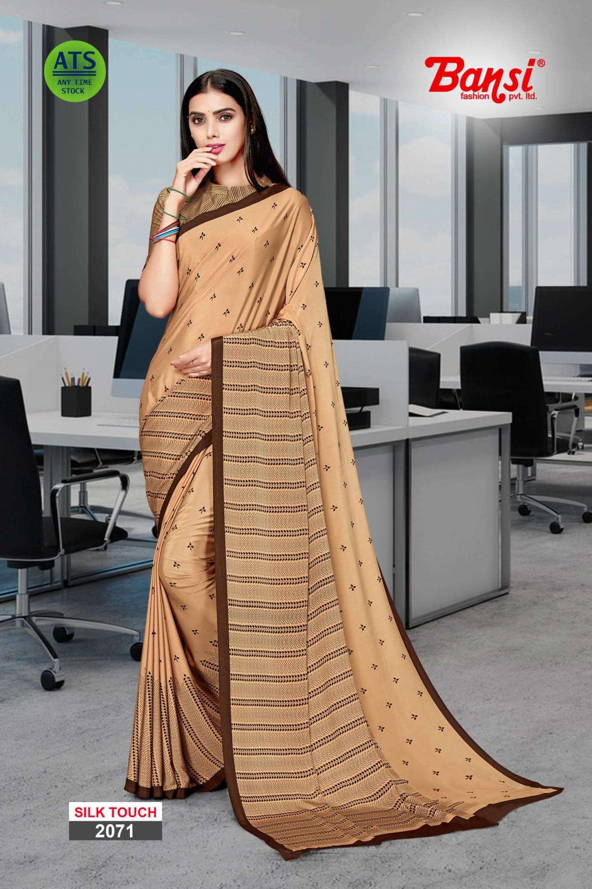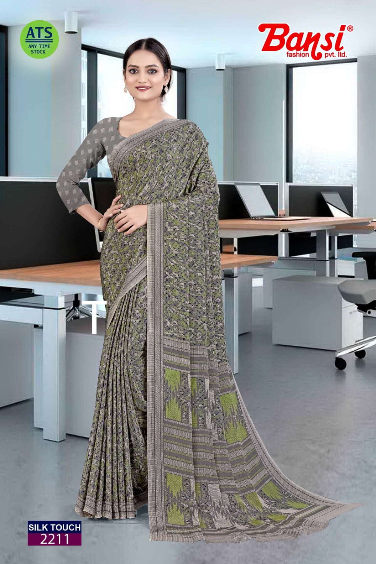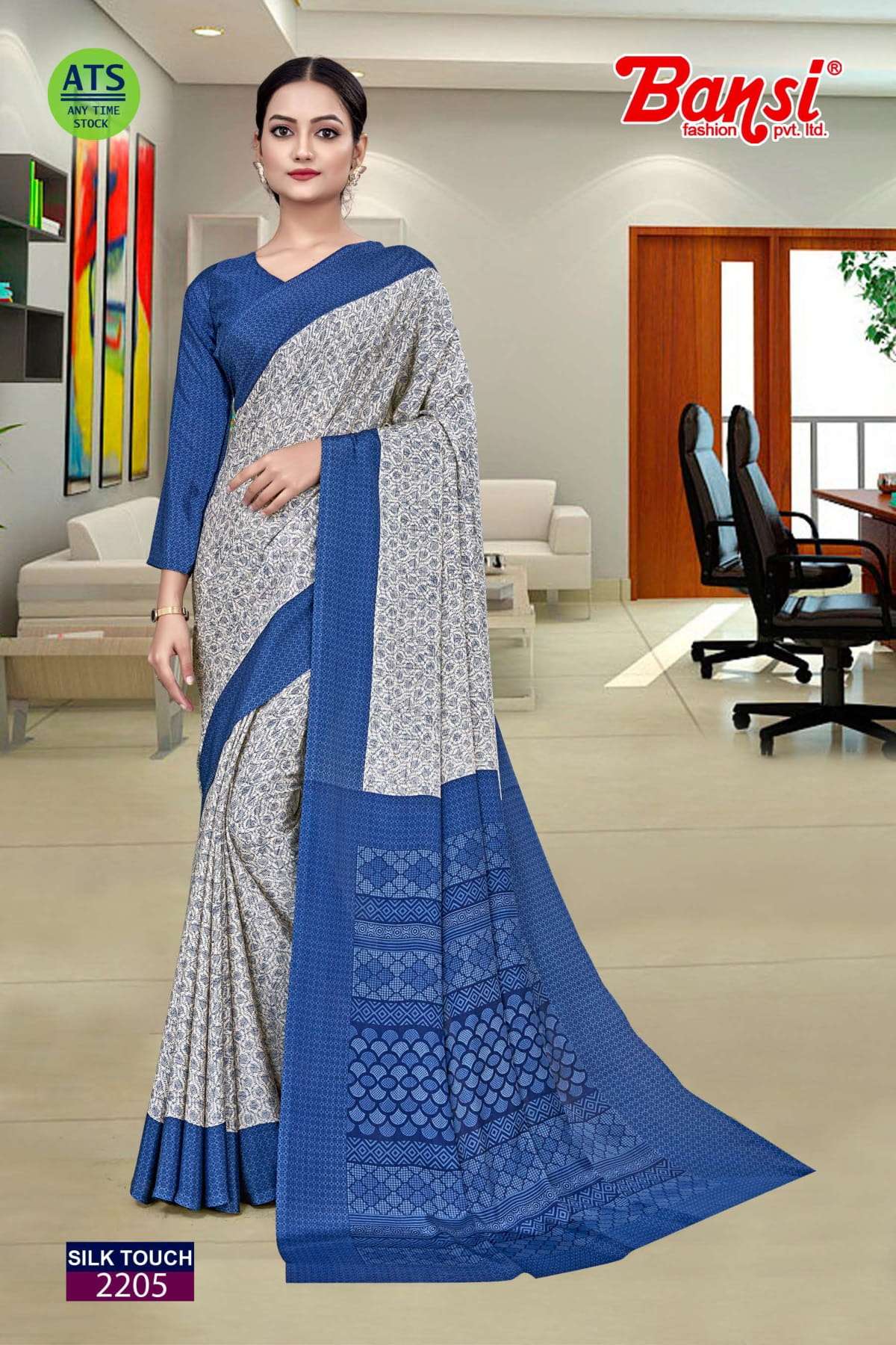 bansi silk touch crepe office uniform saree with blouse wholesaler