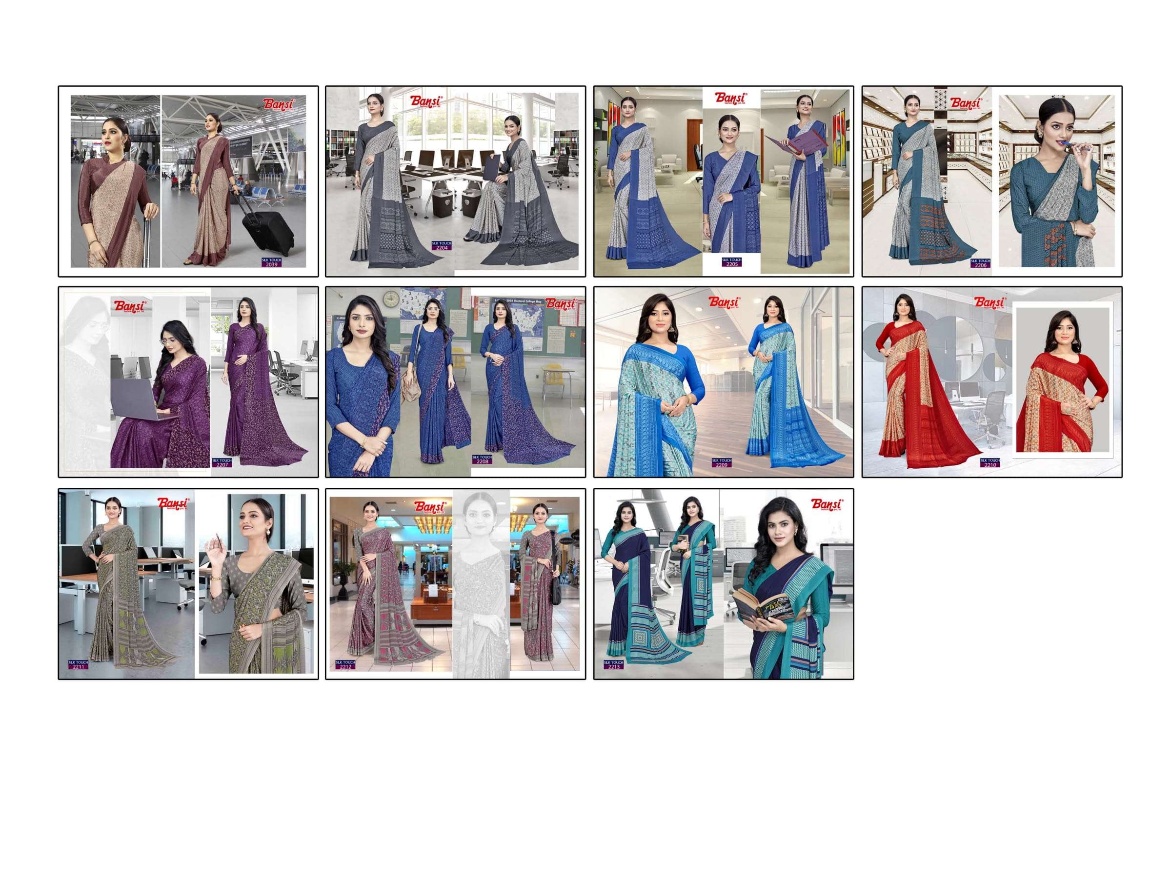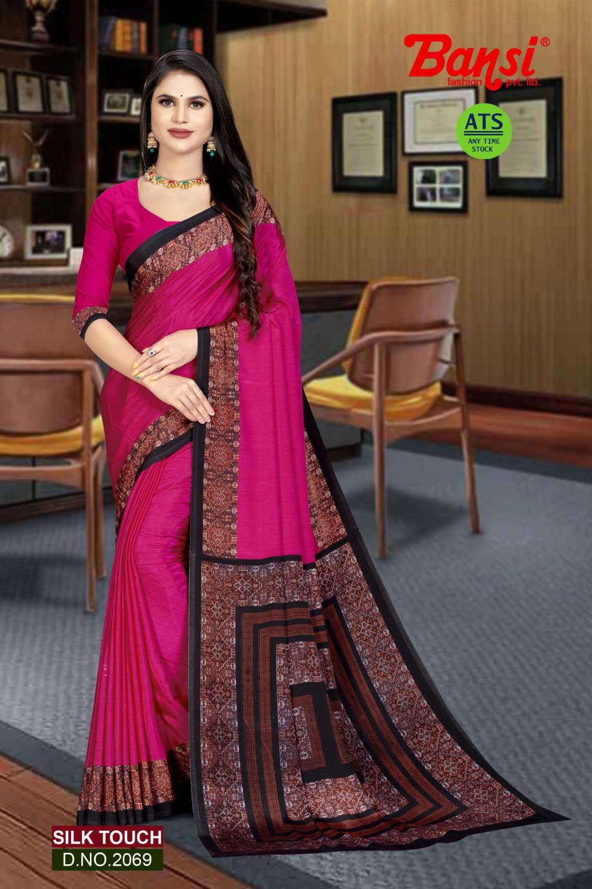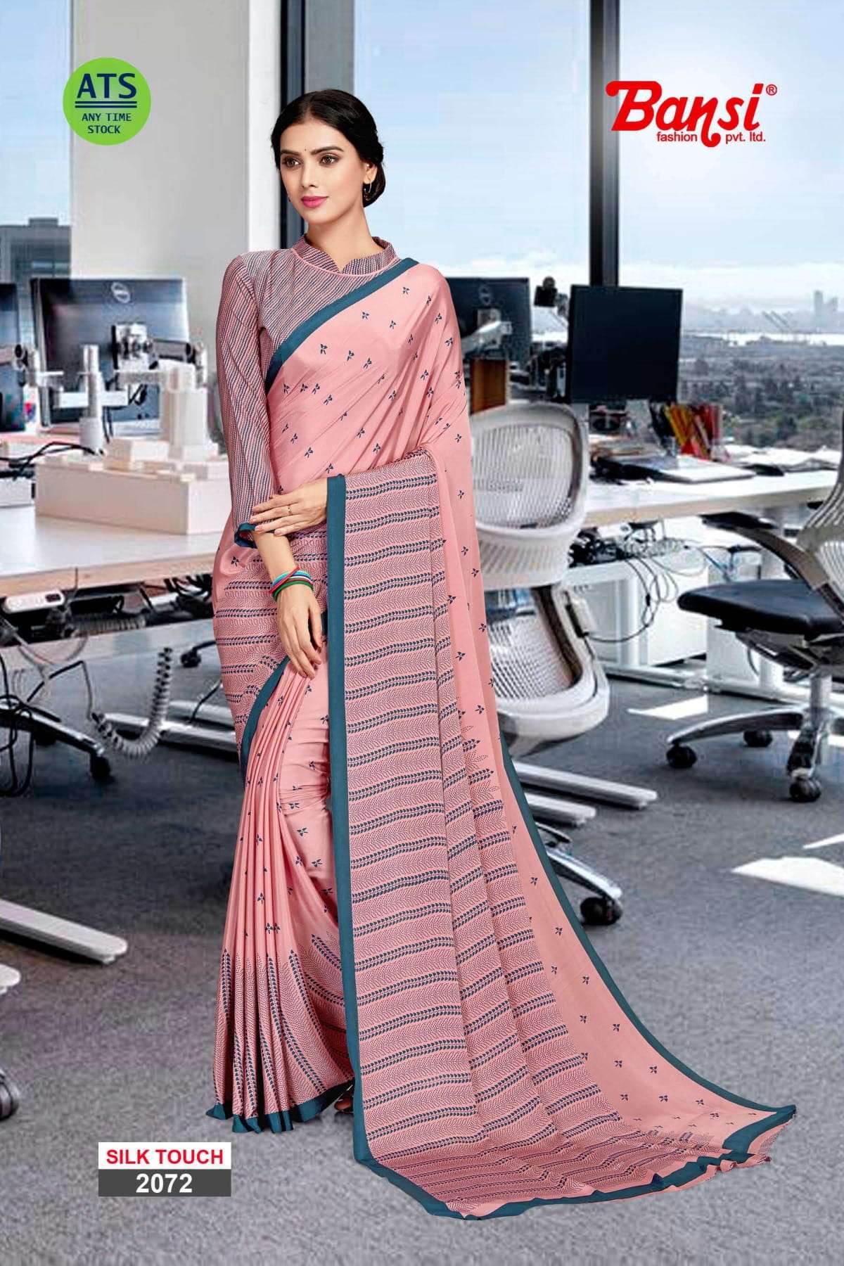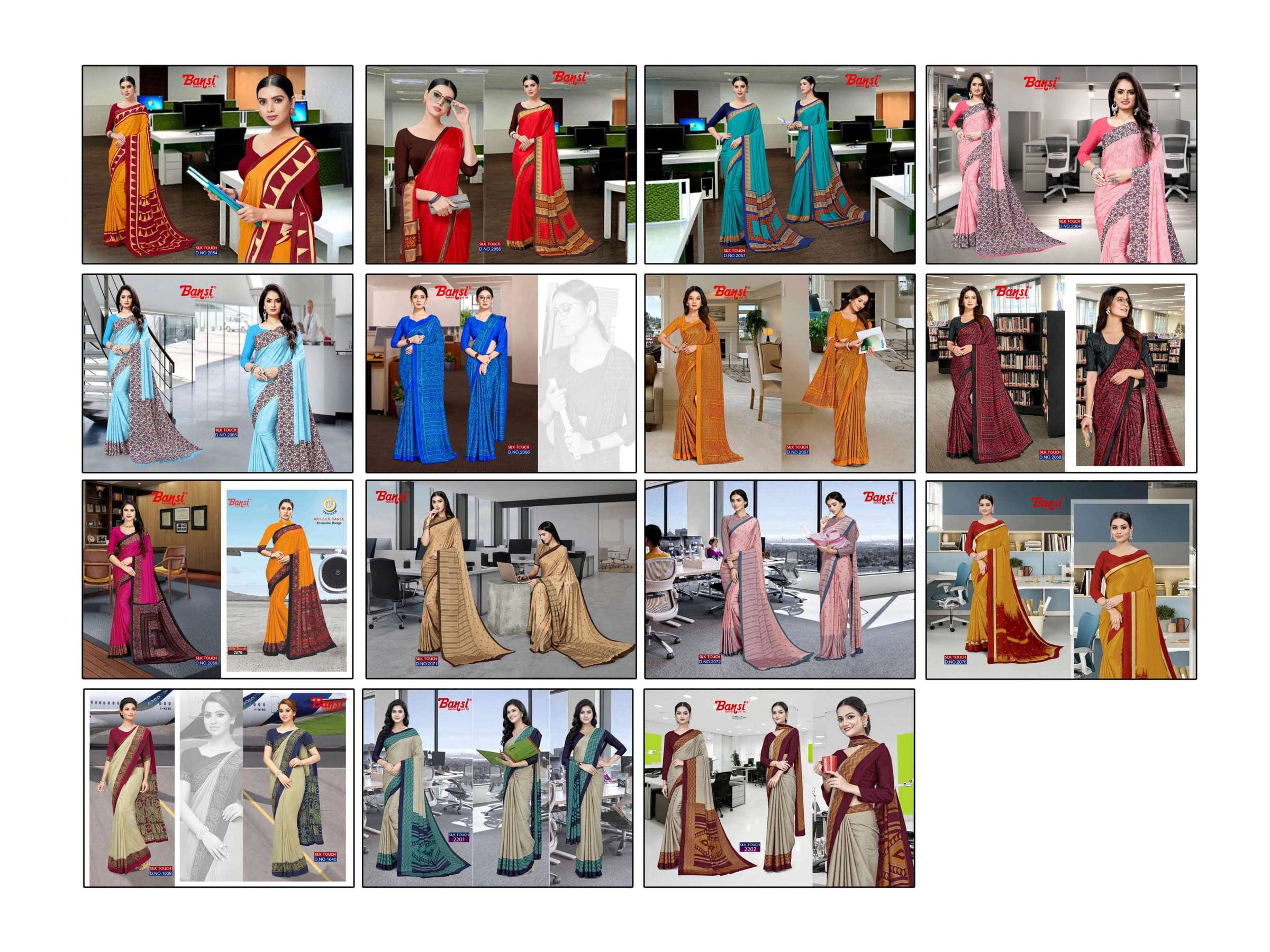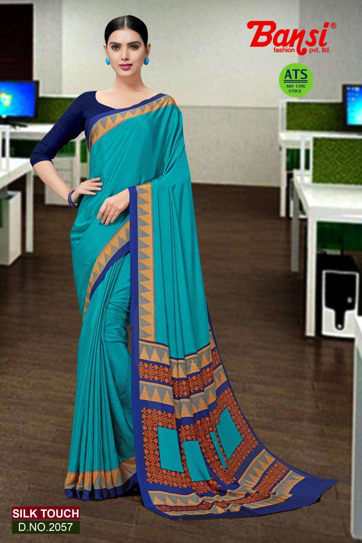 bansi silk touch crepe office uniform saree with blouse wholesaler
