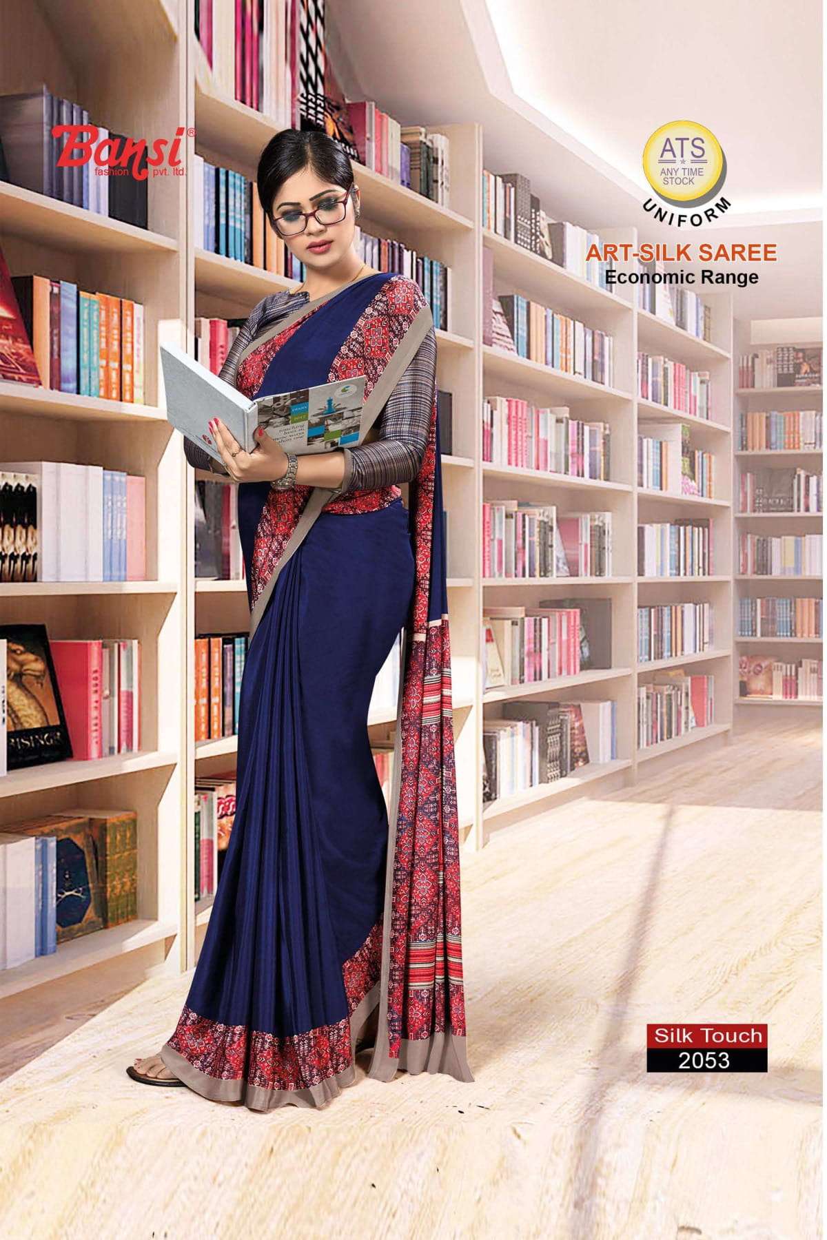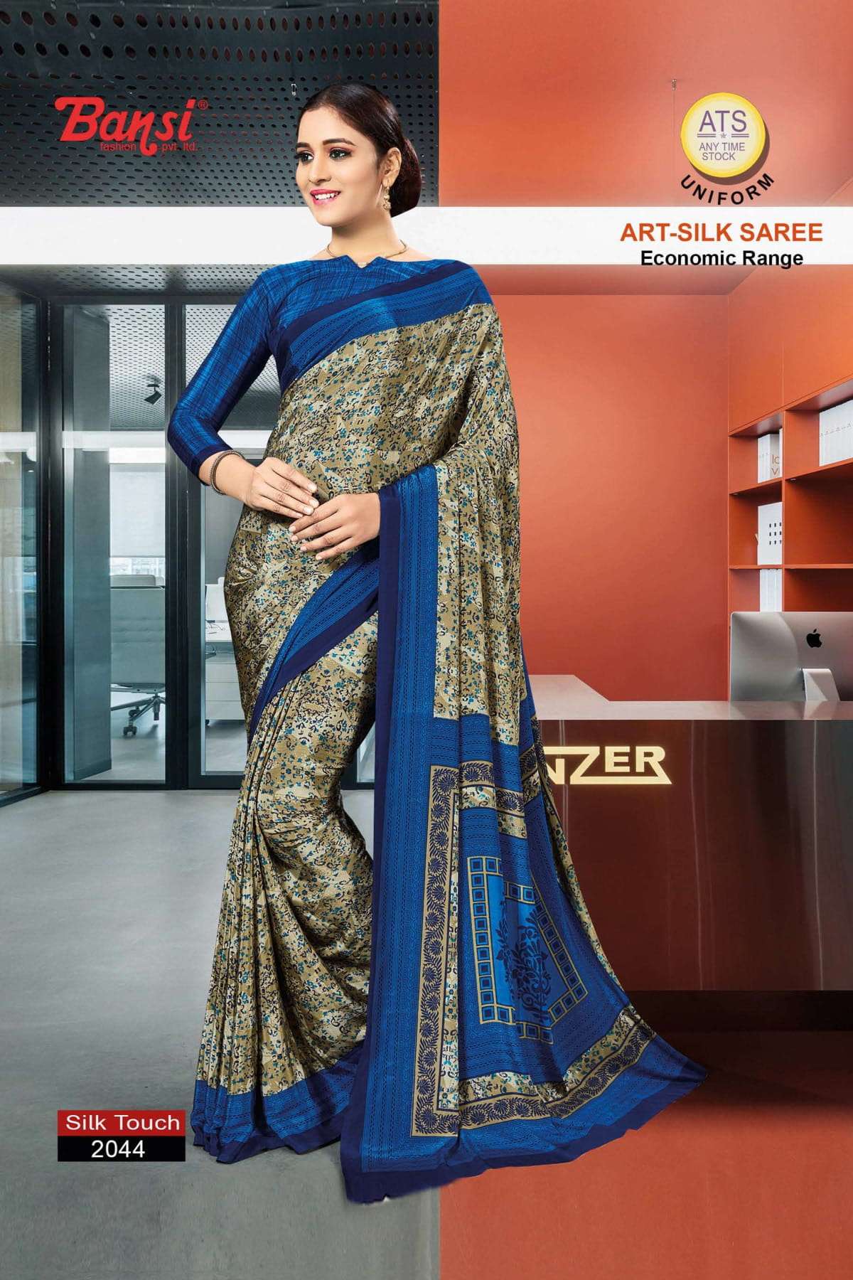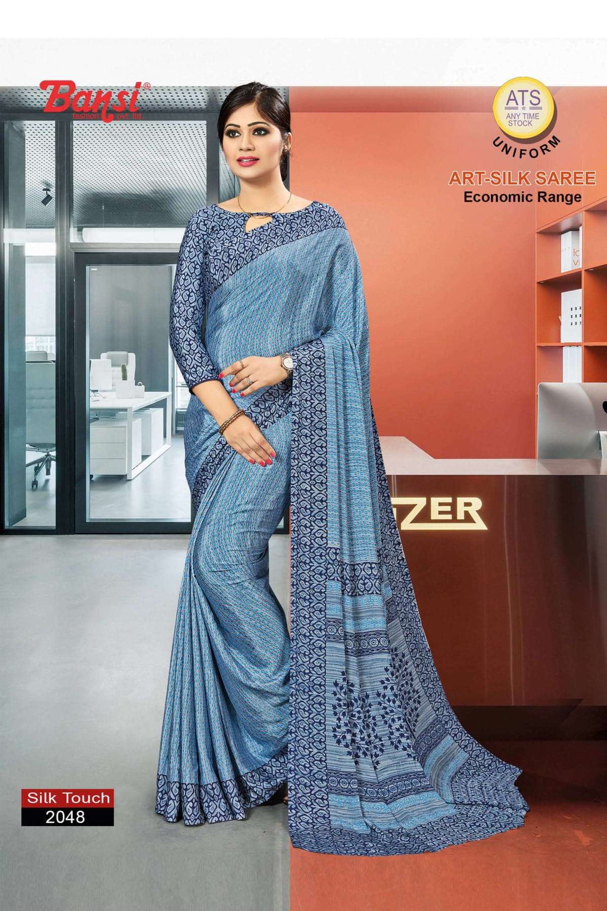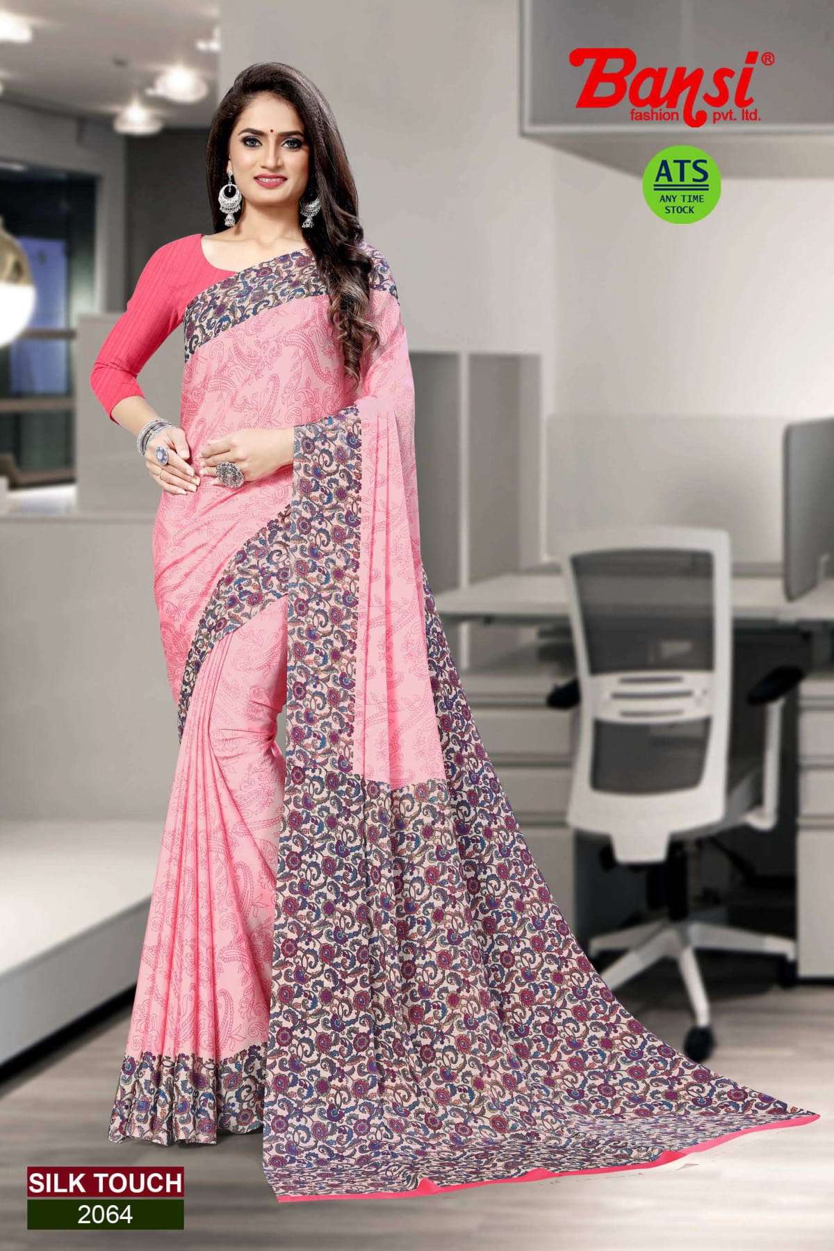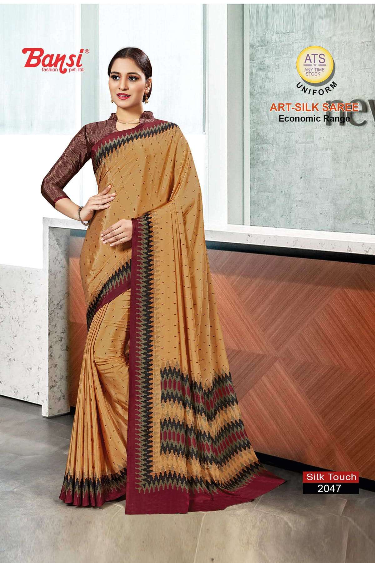 bansi silk touch crepe office uniform saree with blouse wholesaler