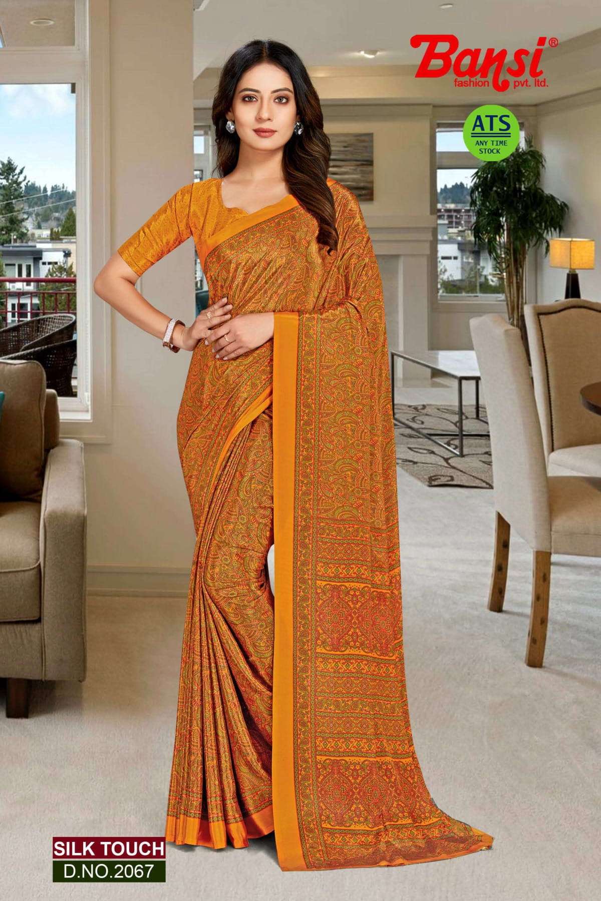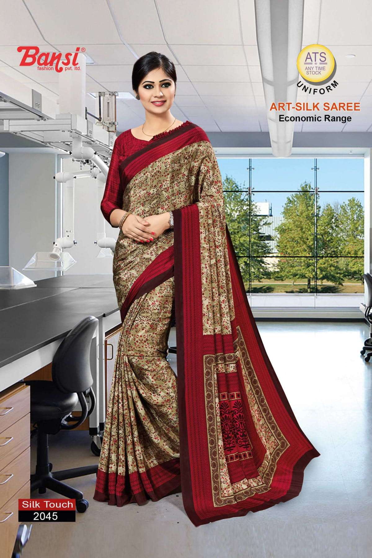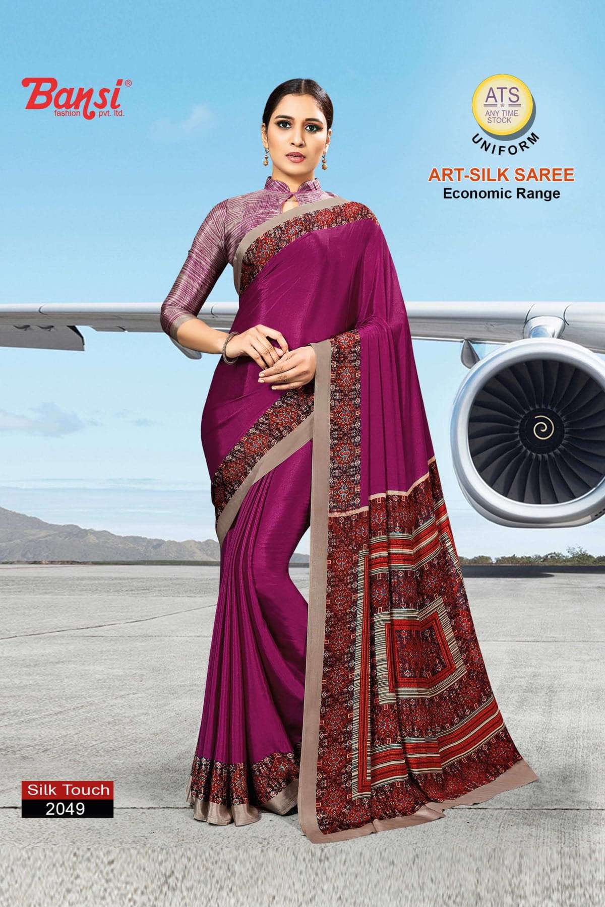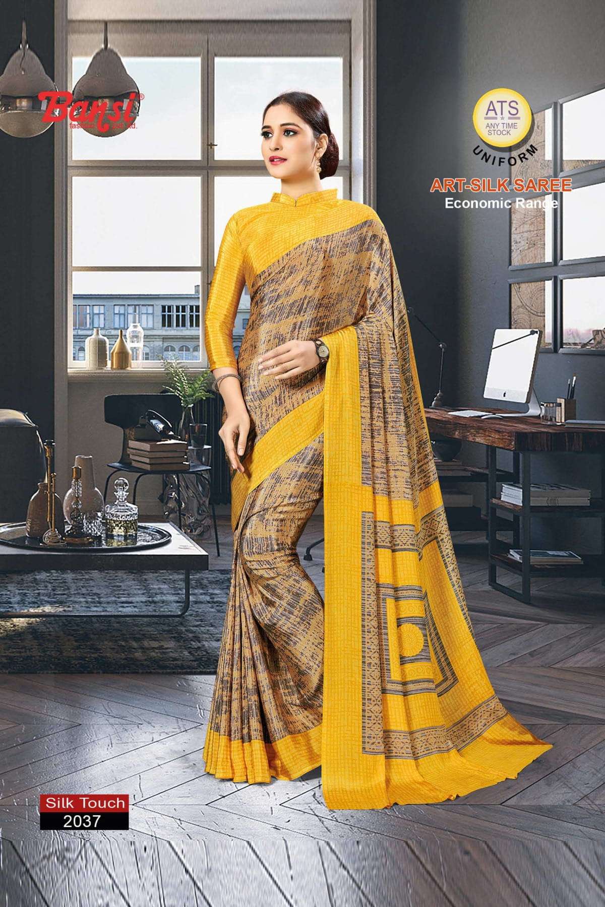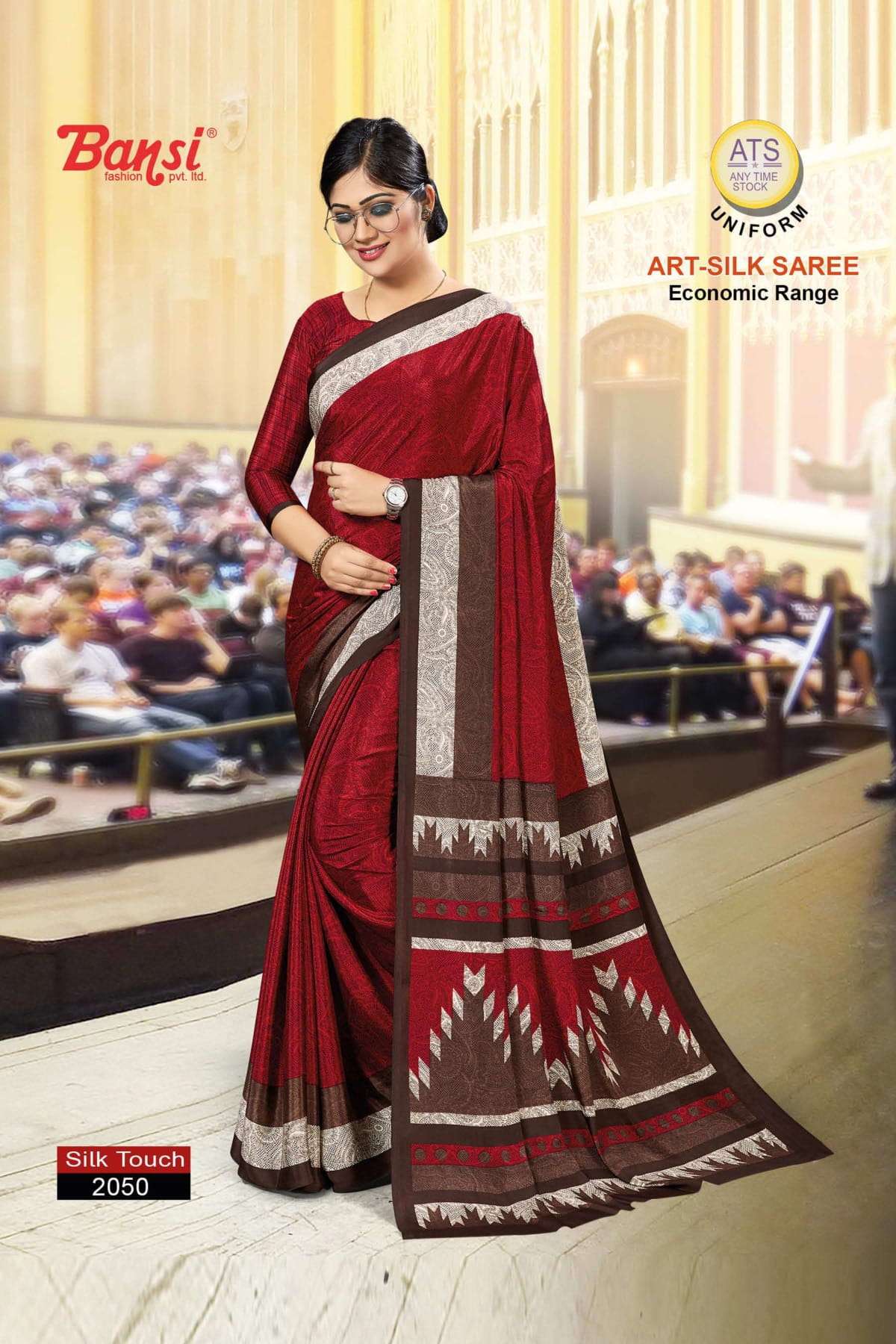 bansi silk touch crepe office uniform saree with blouse wholesaler