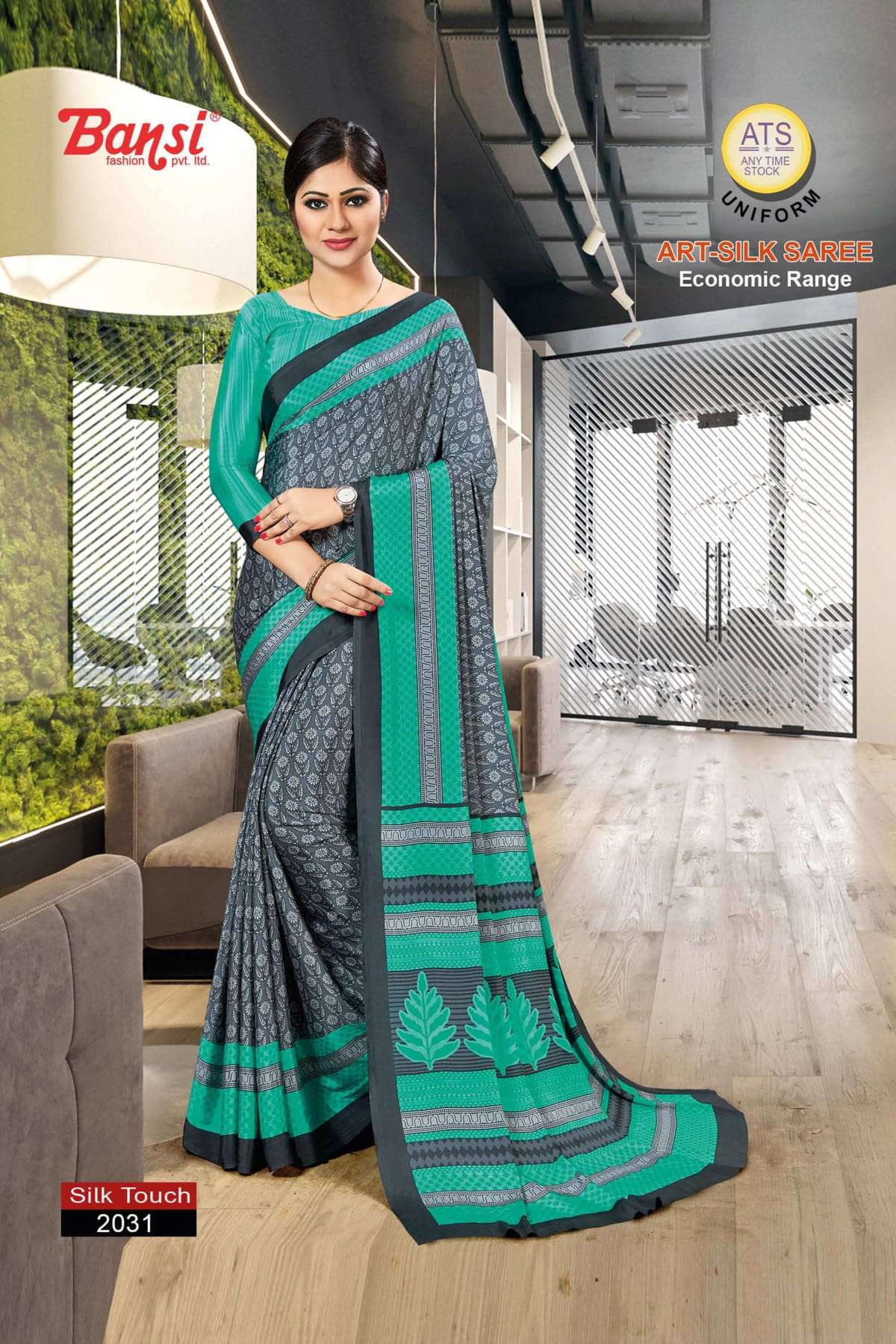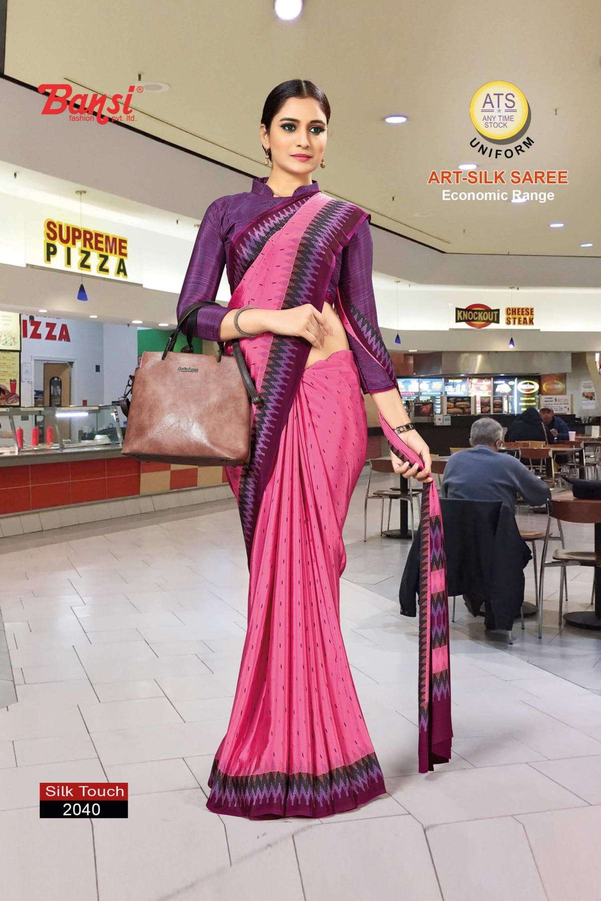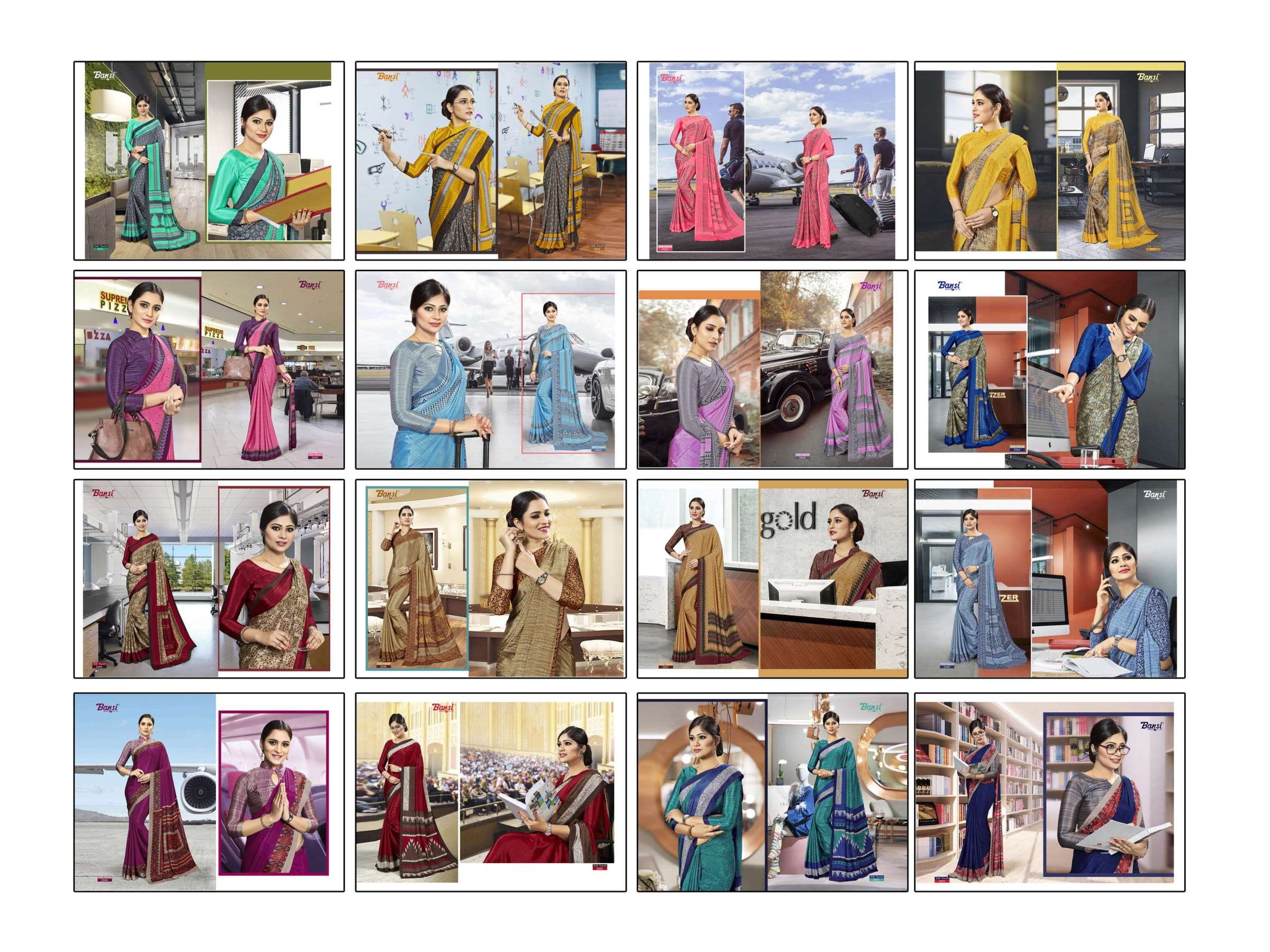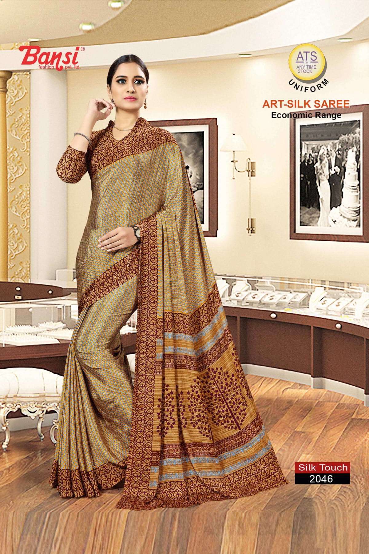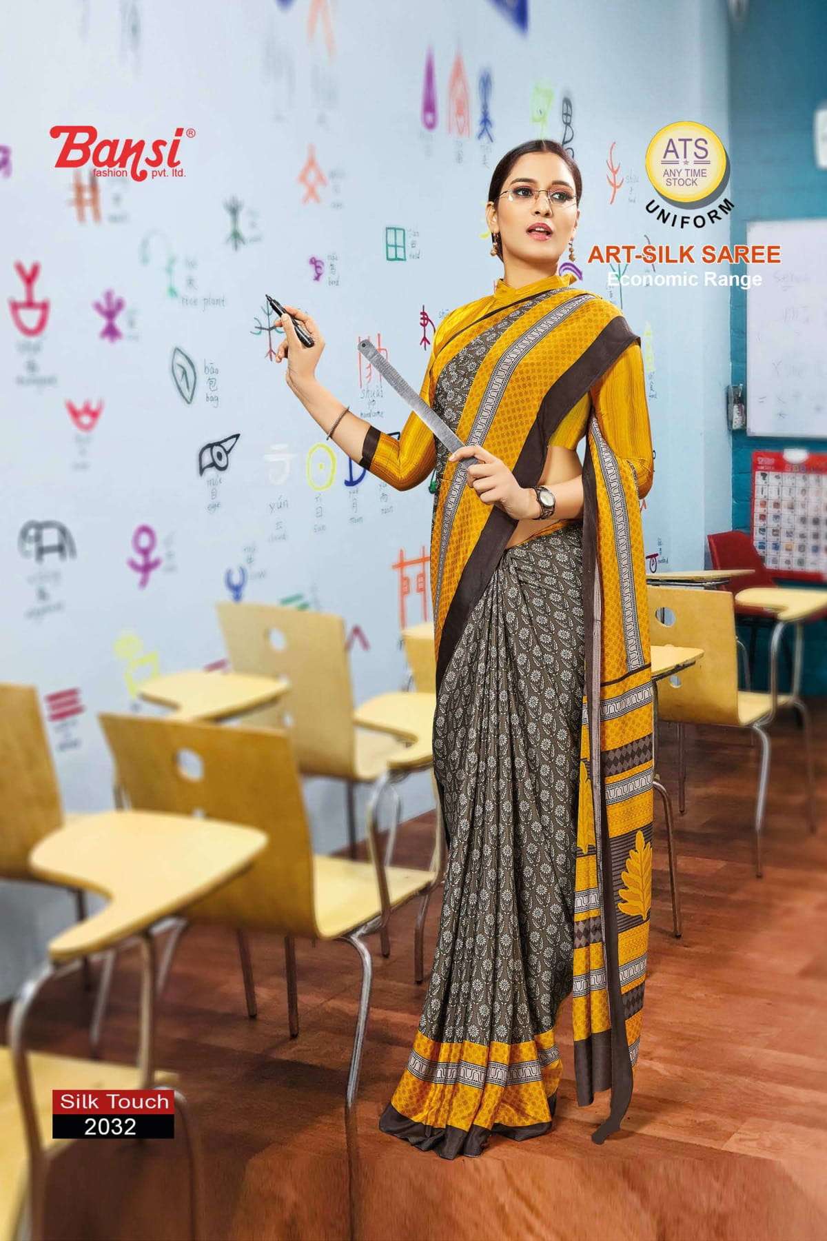 bansi silk touch crepe office uniform saree with blouse wholesaler