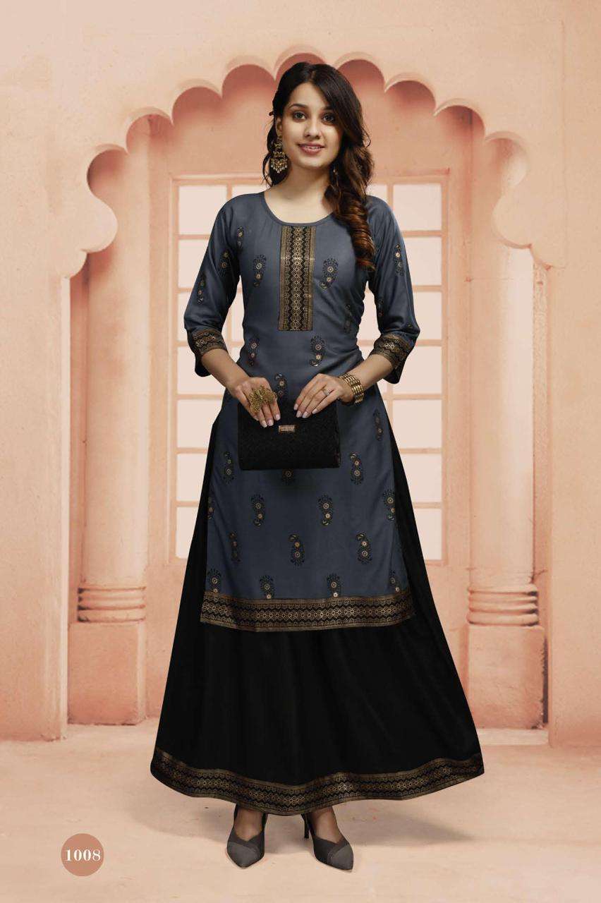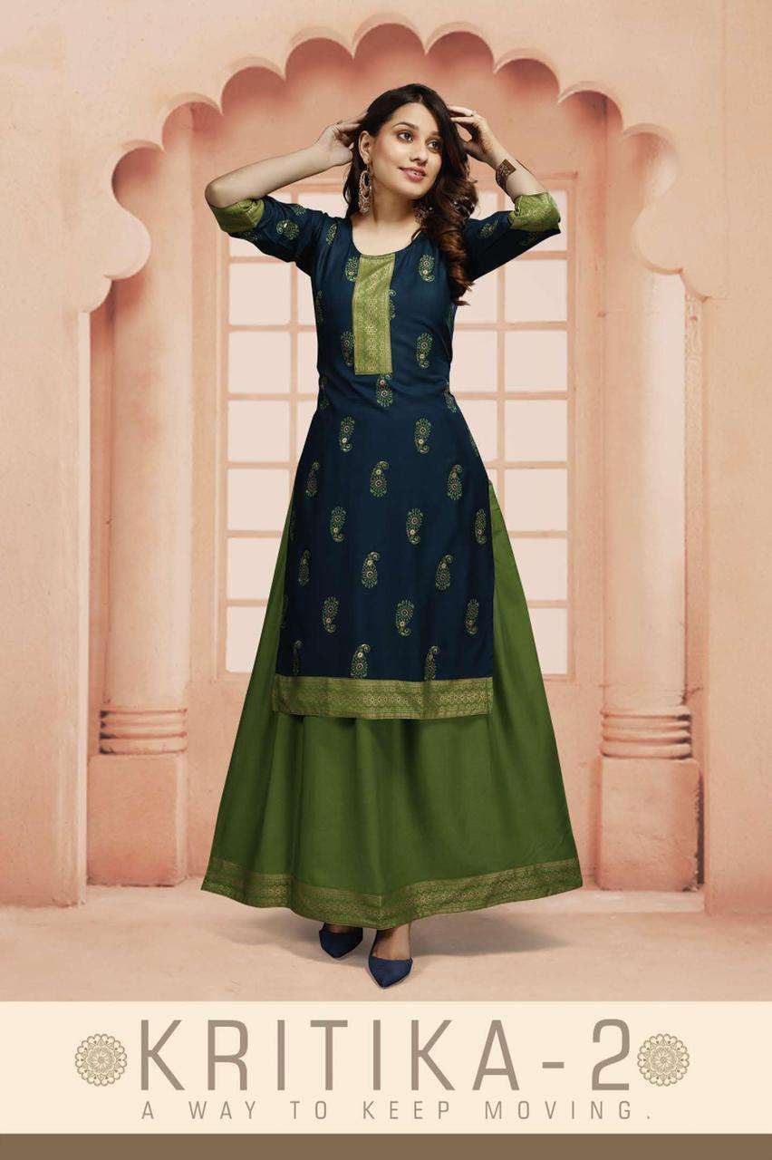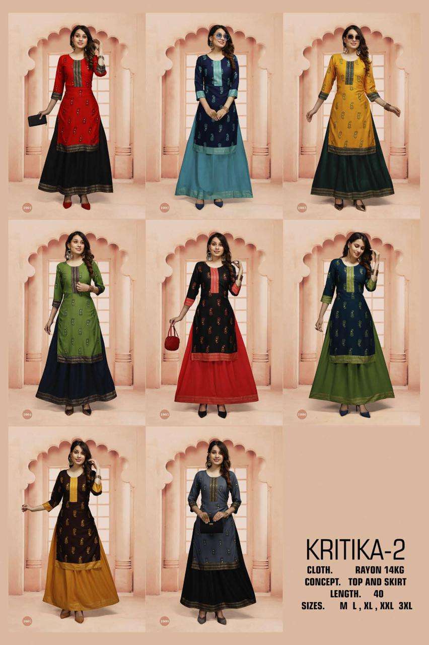 📕Catalogue:- BEAUTY QUEEN KRITIKA VOL.2 👗Cloth :- RAYON ✅Concept :- TOP AND SKIRT Length :- *40”*MINIMUM Size:- M L XL 2XL 3XL AVAILABLE 8 DESIGNS CATALOGUE RATE :- 550/- |