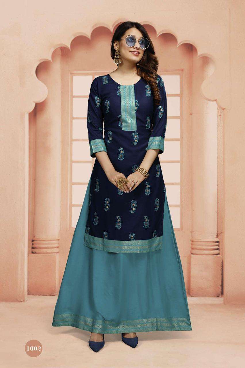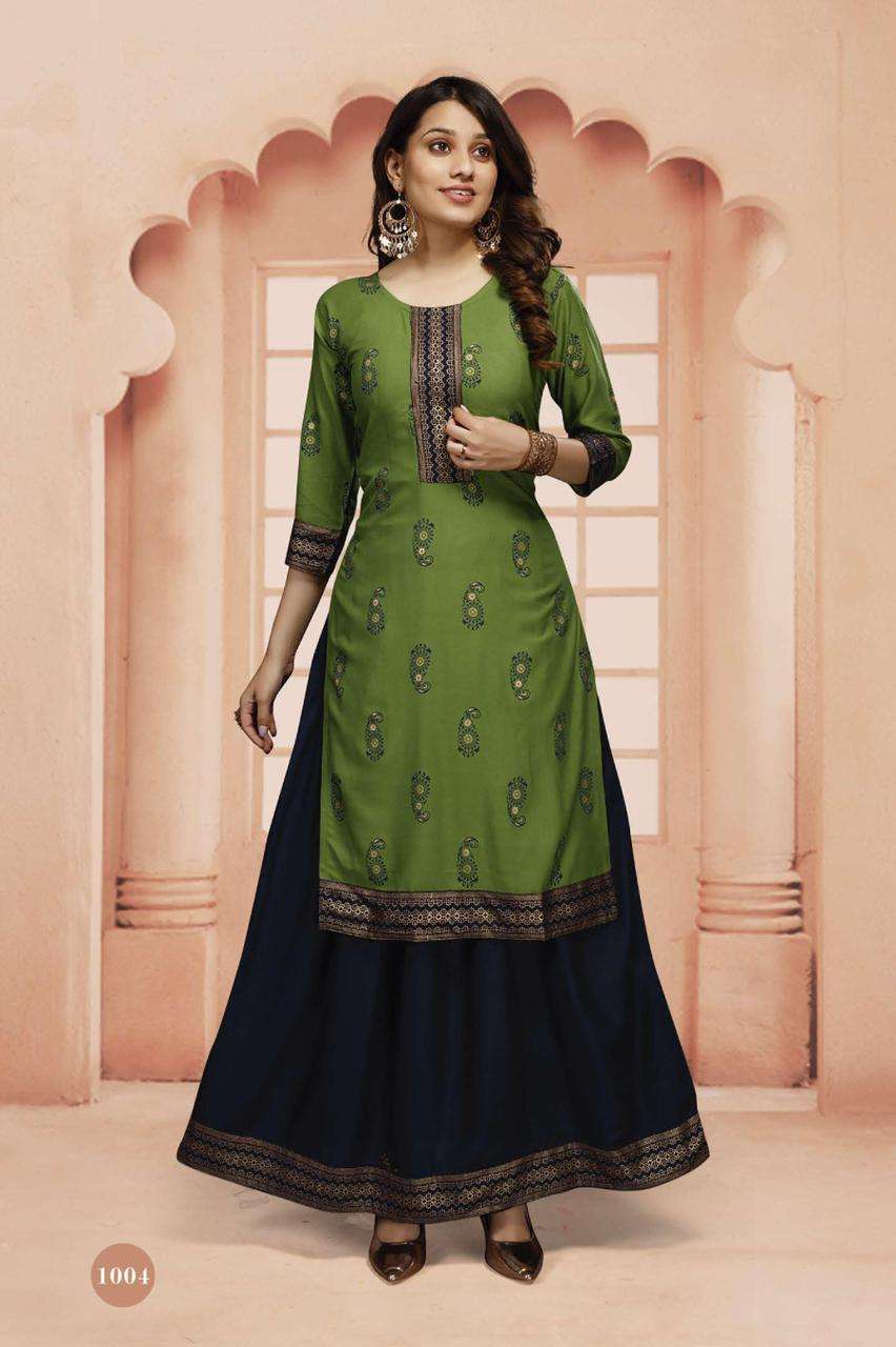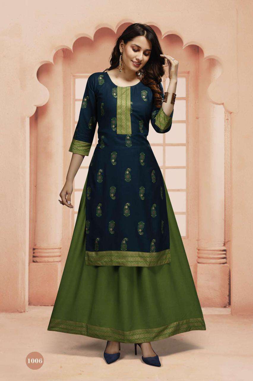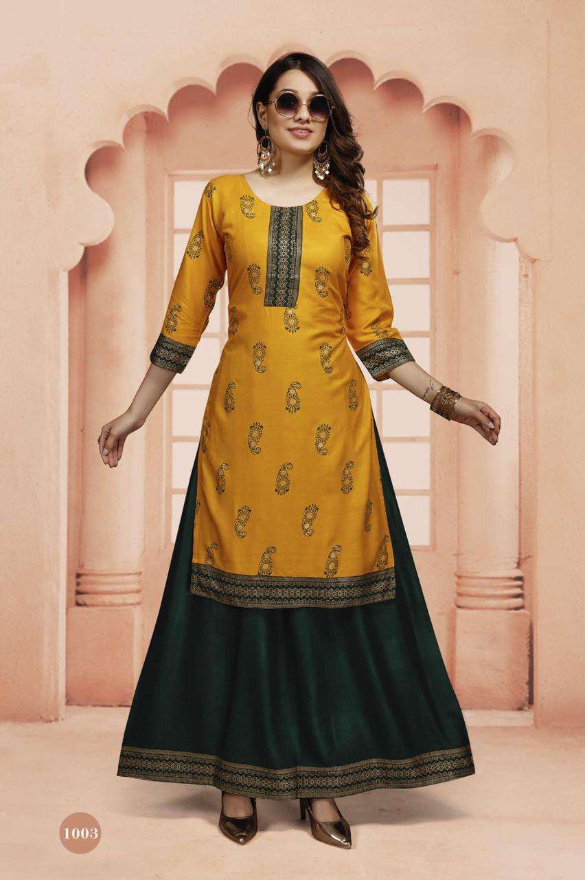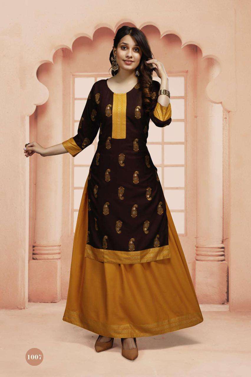 BEAUTY QUEEN KRITIKA VOL.2 HEAVY RAYON TOP WITH SKIRT GOLD CATALOG WWHOLESALER BEST RATE