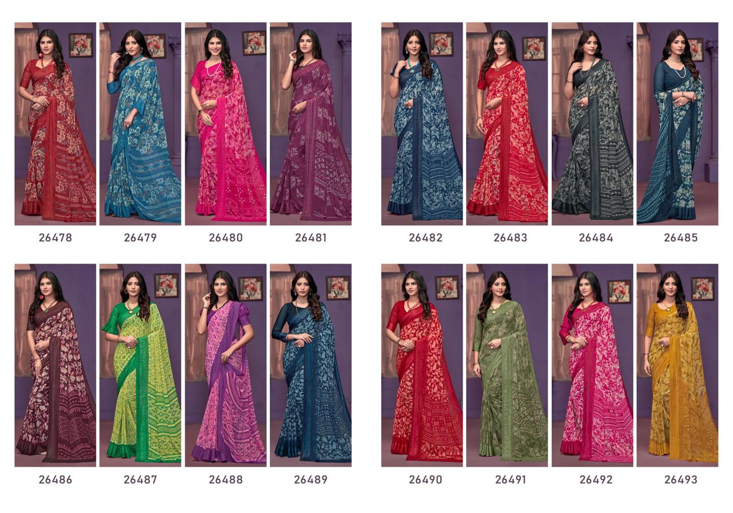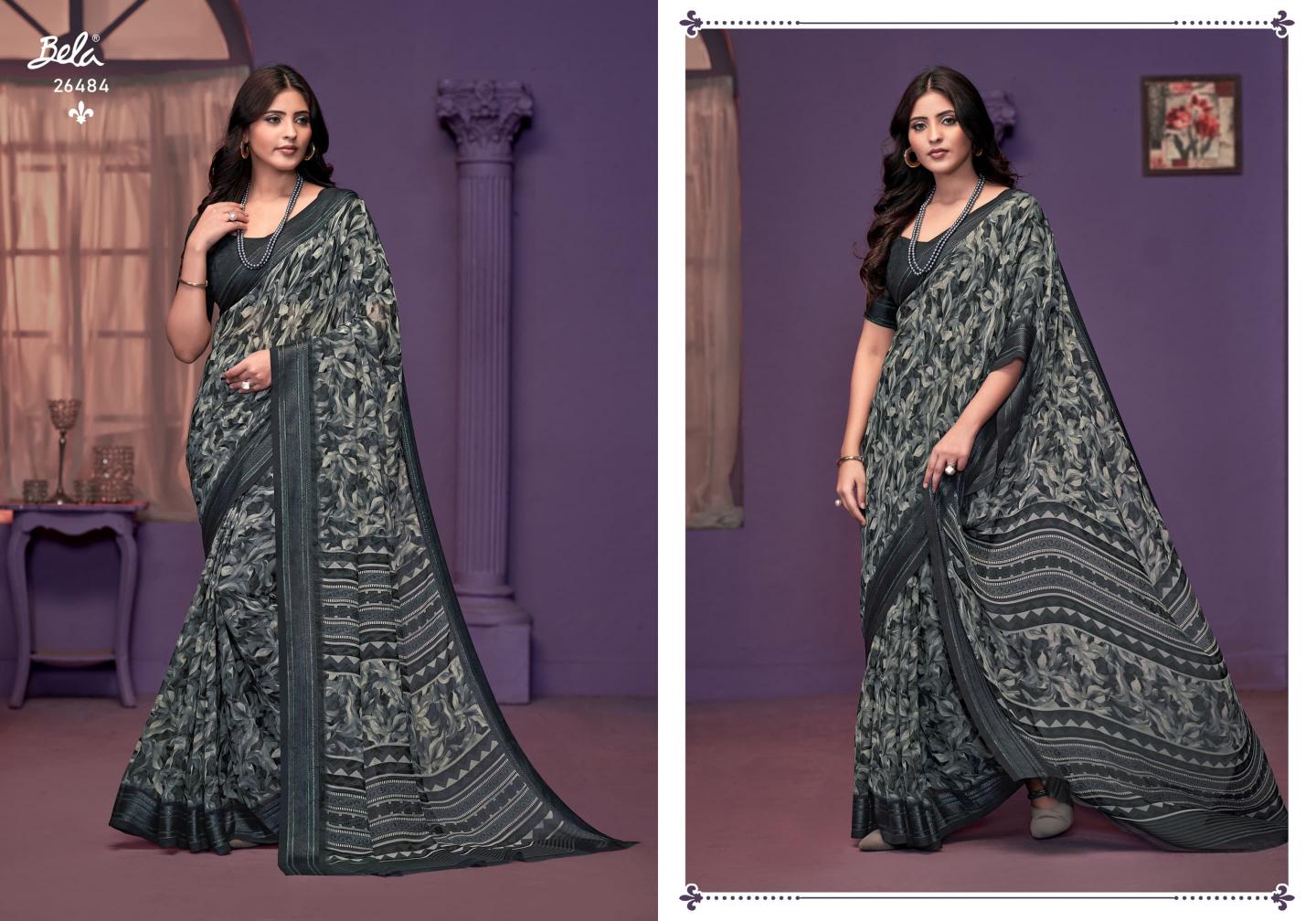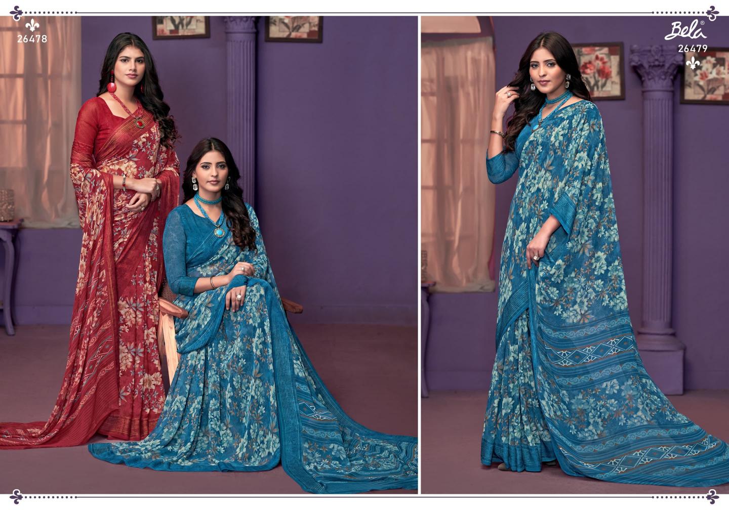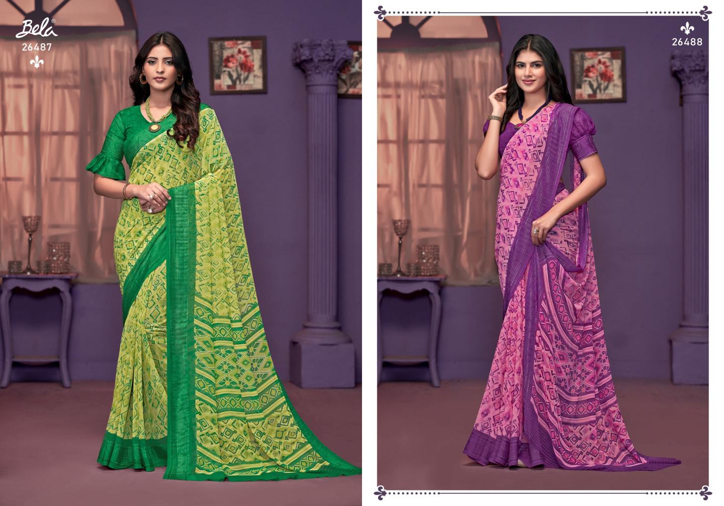 Bela Sarees Skyla - 3 Fabric : wtless and Georjet with weaving border printed sarees Rate :- 665/- Pcs :- 16 Set To Set |